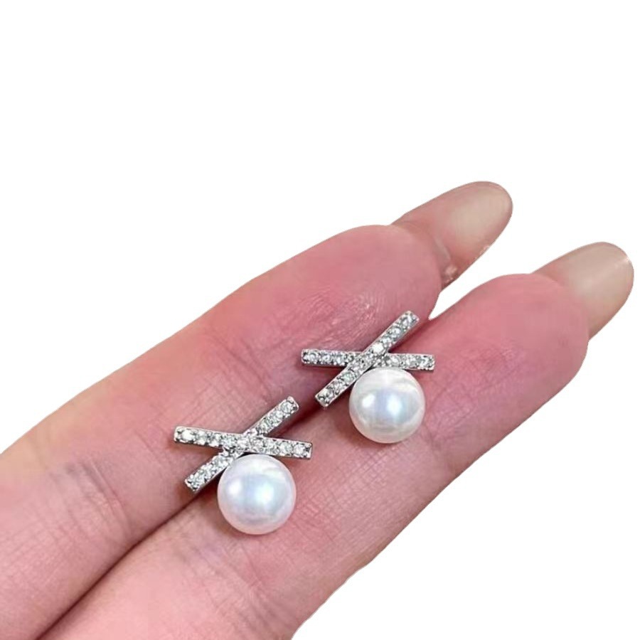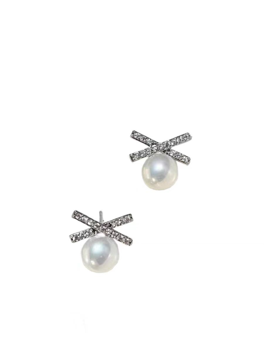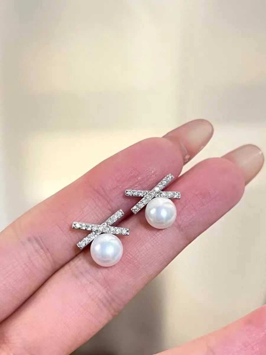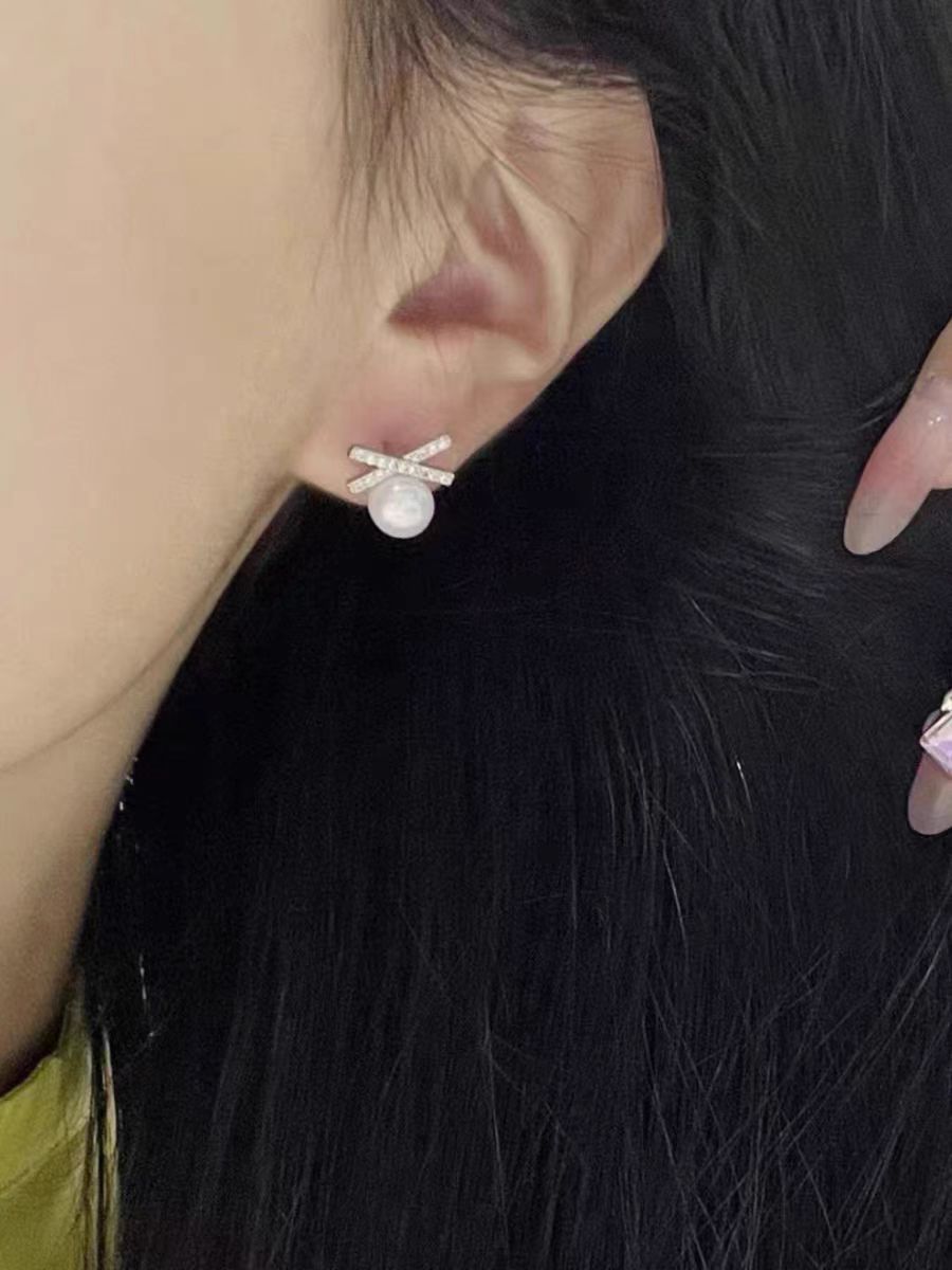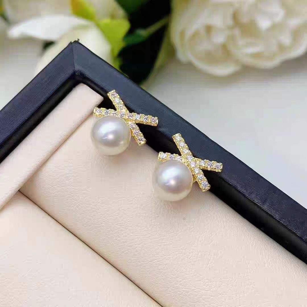 DIY耳钉配件 S925银针赵露思同款高保色珍珠耳钉空托耳饰批发
