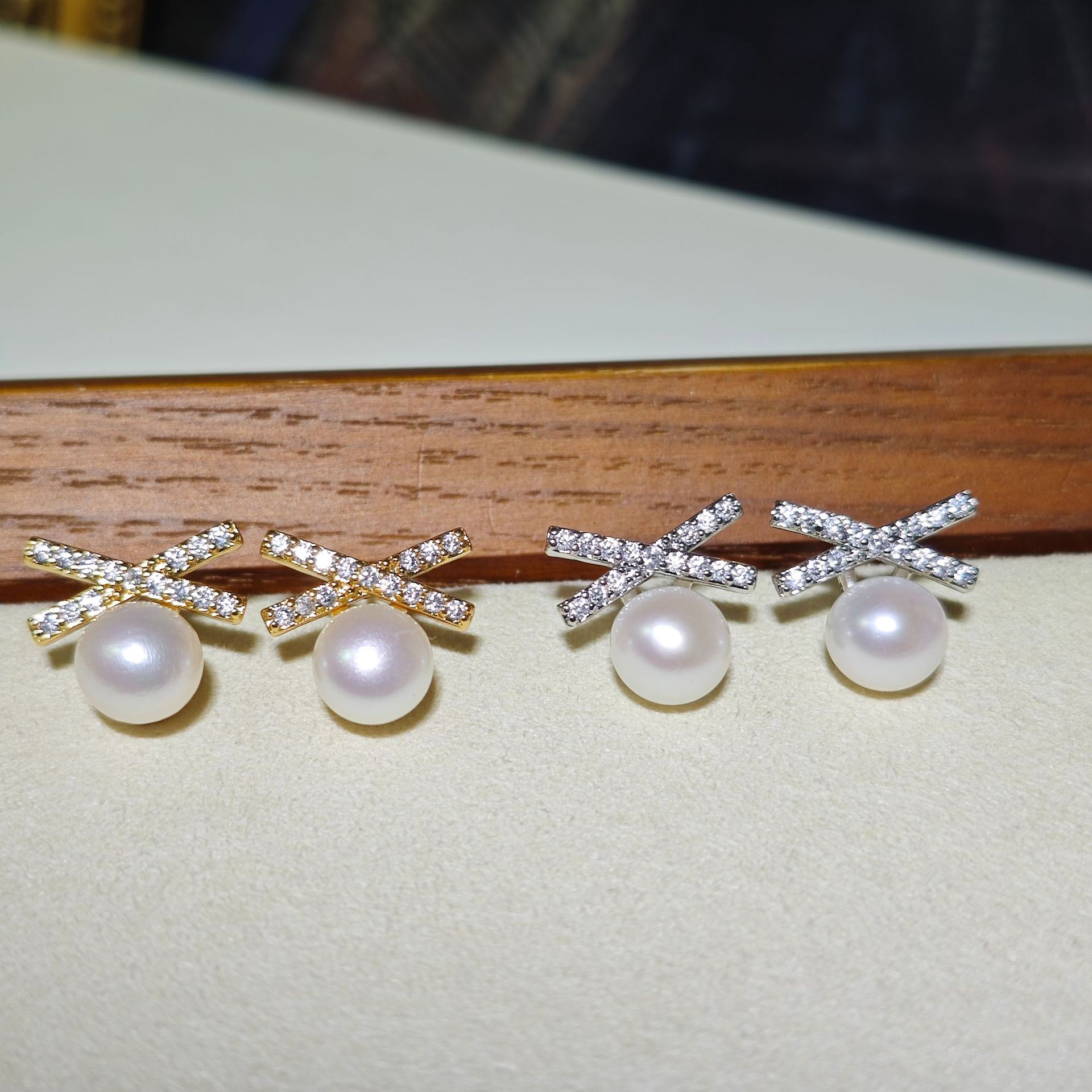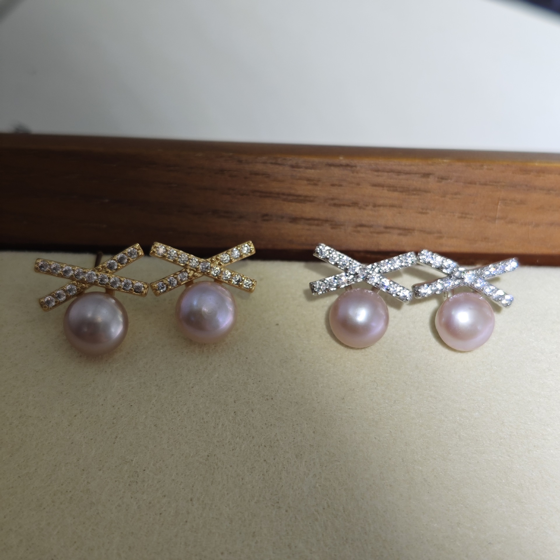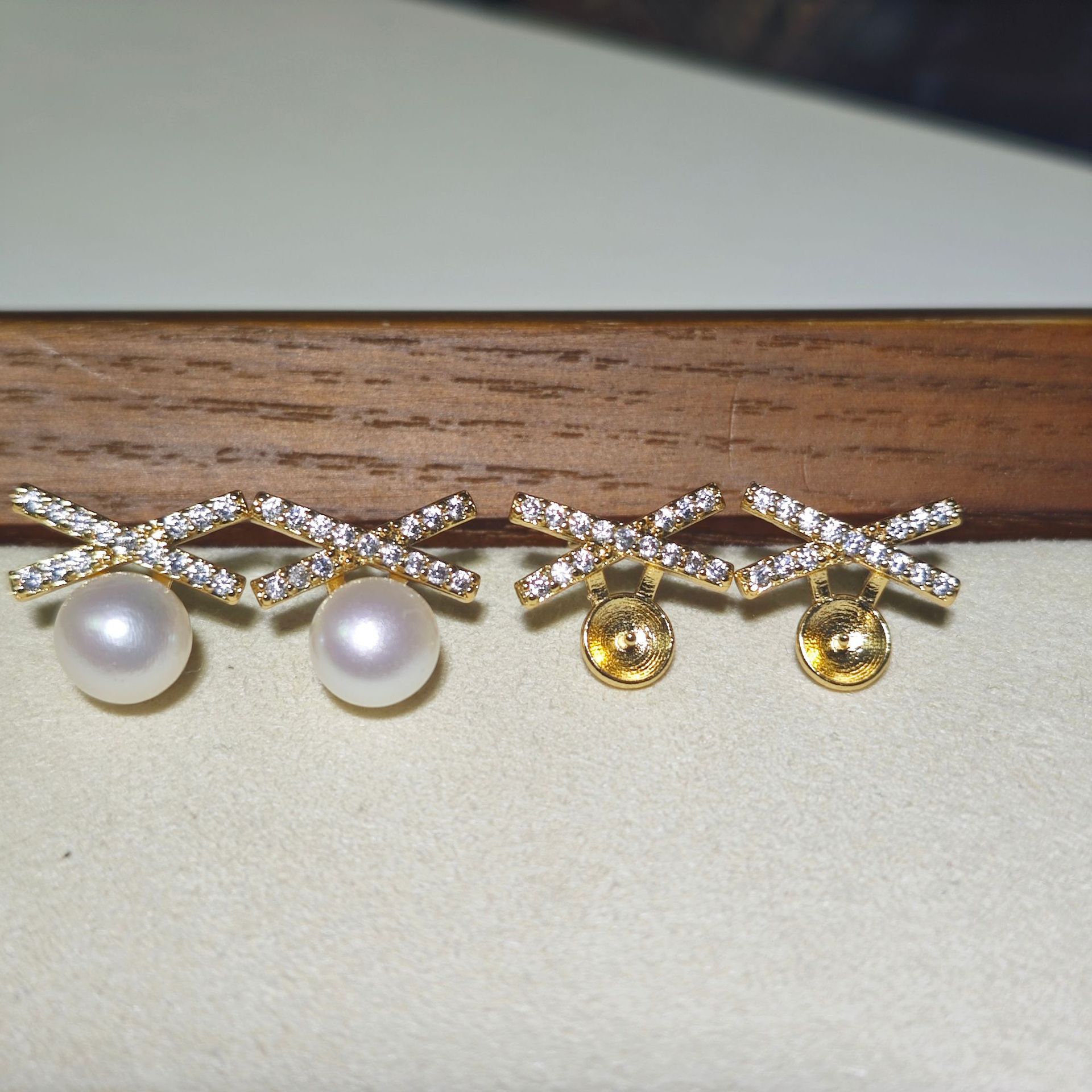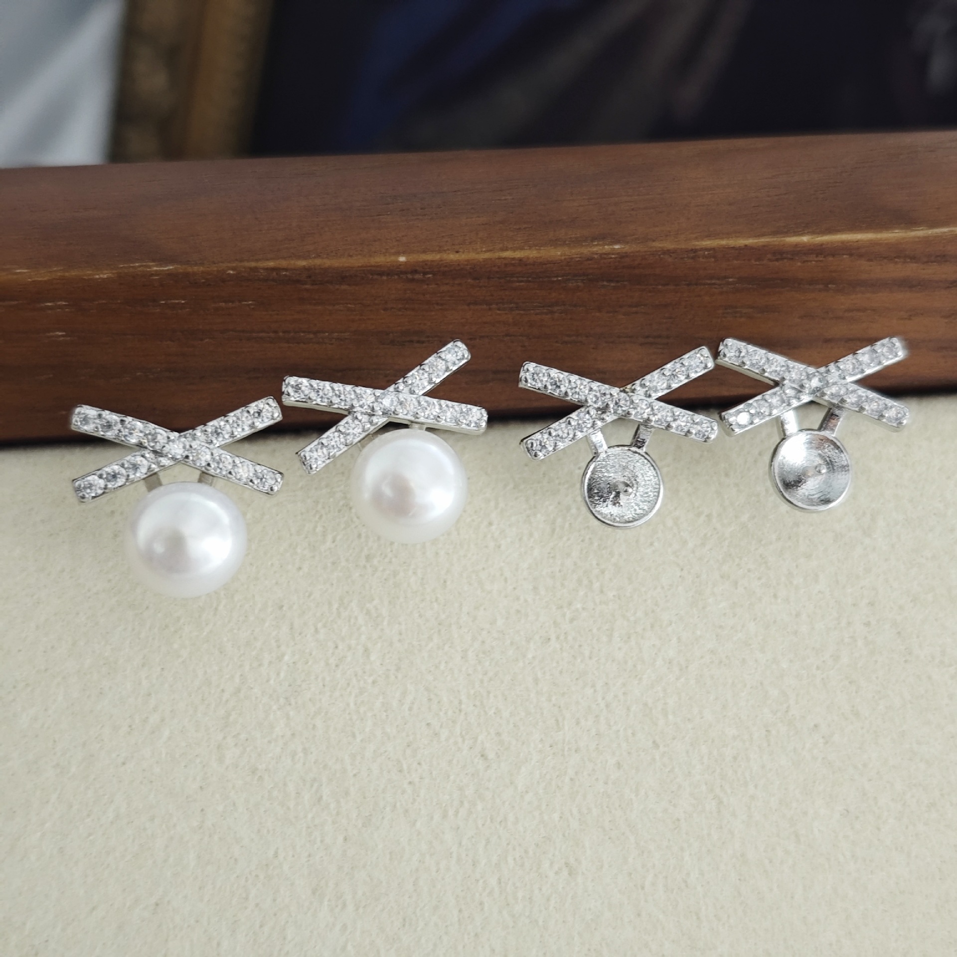 DIY耳钉配件 S925银针赵露思同款高保色珍珠耳钉空托耳饰批发