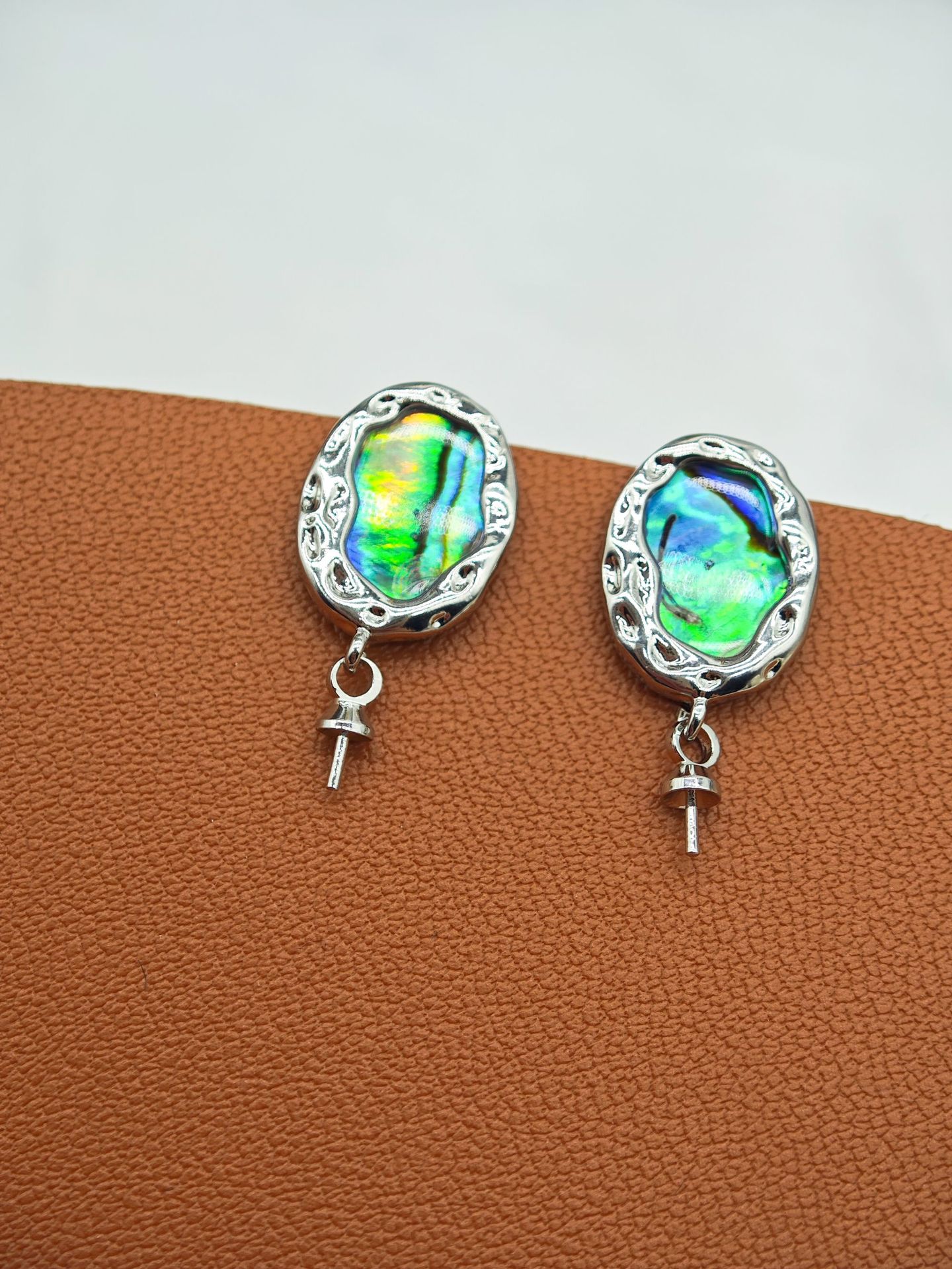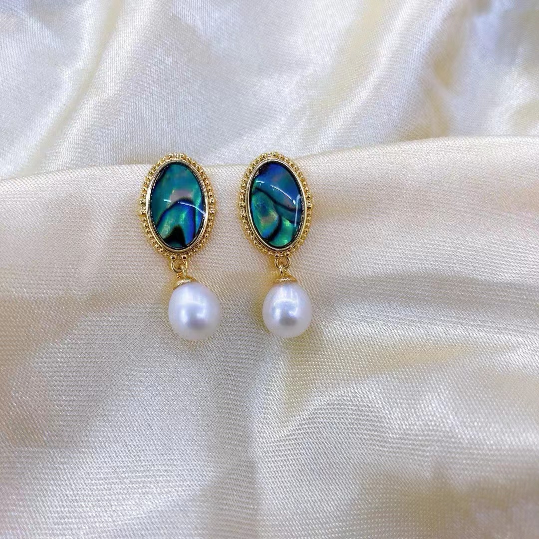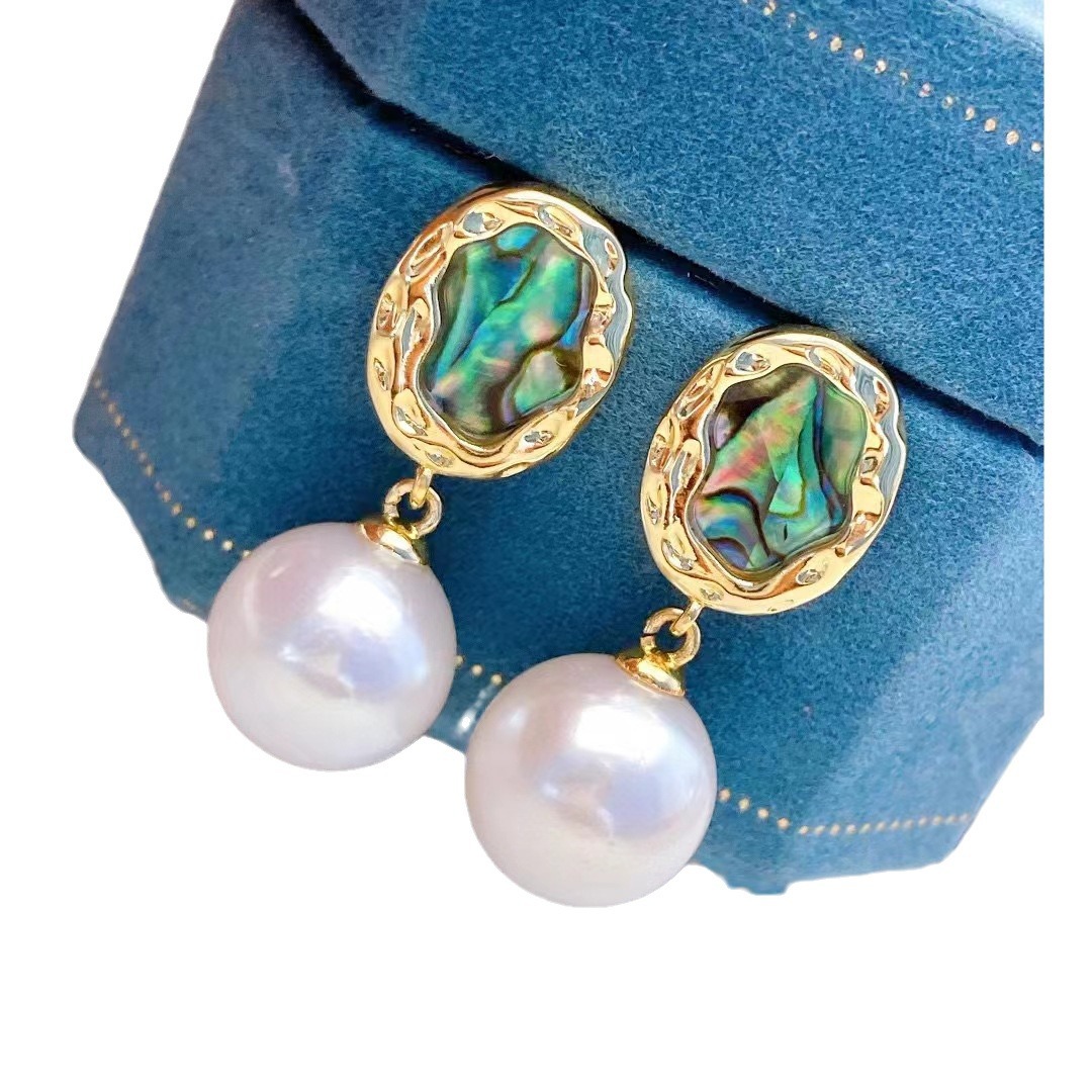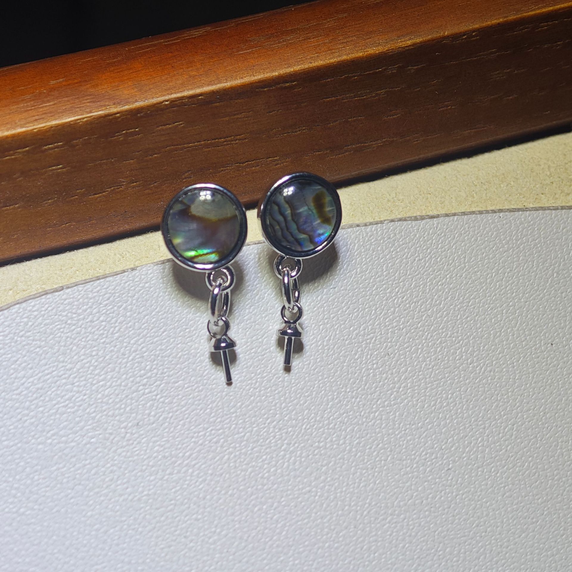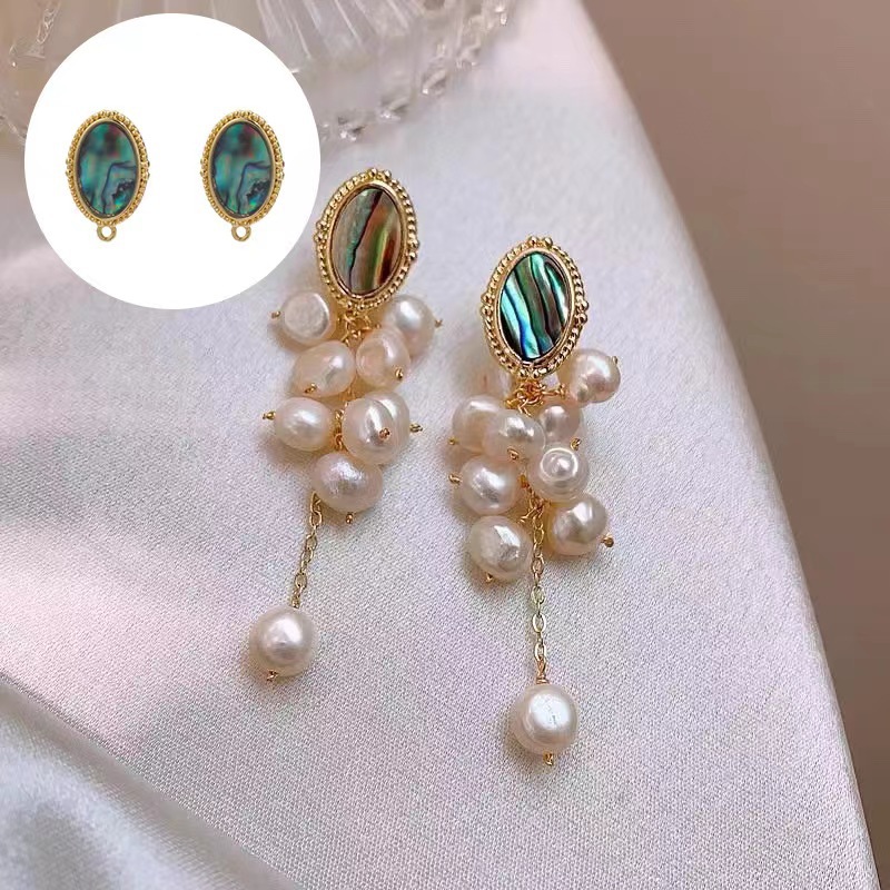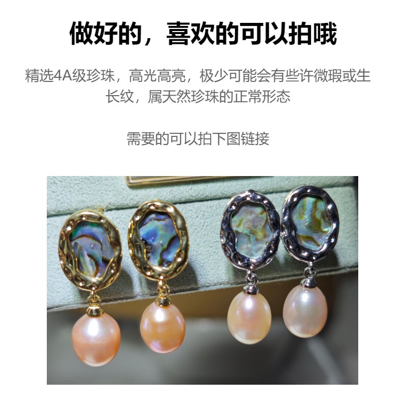 diy珍珠托高品质S925天然鲍鱼贝平底珍珠耳钉配件 耳环饰品珍珠托