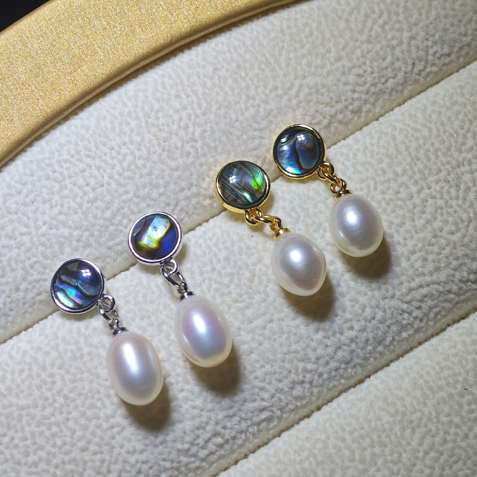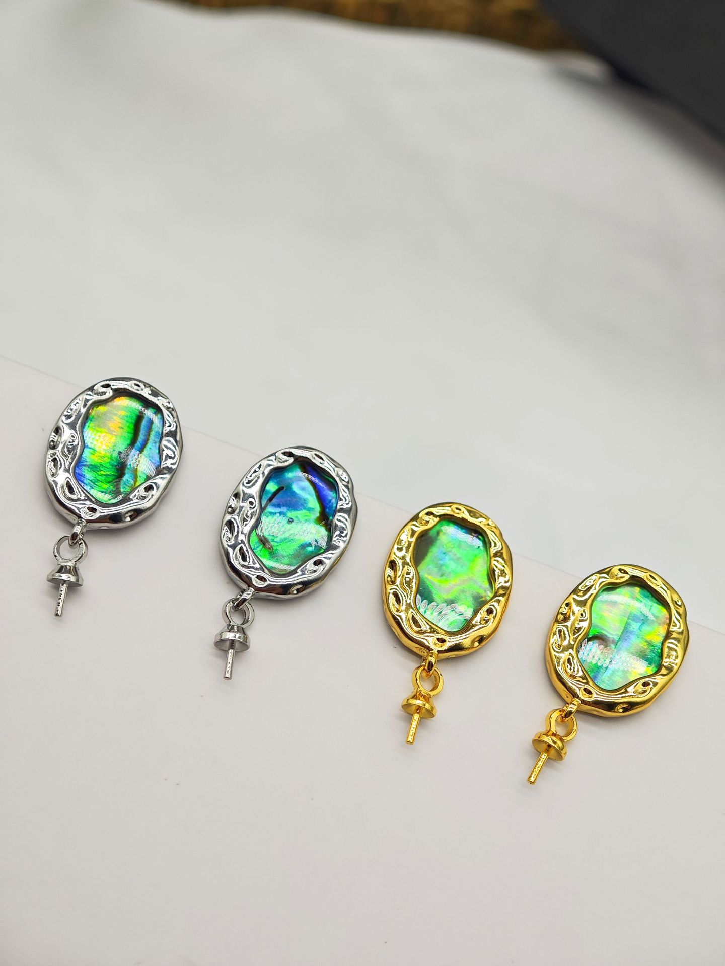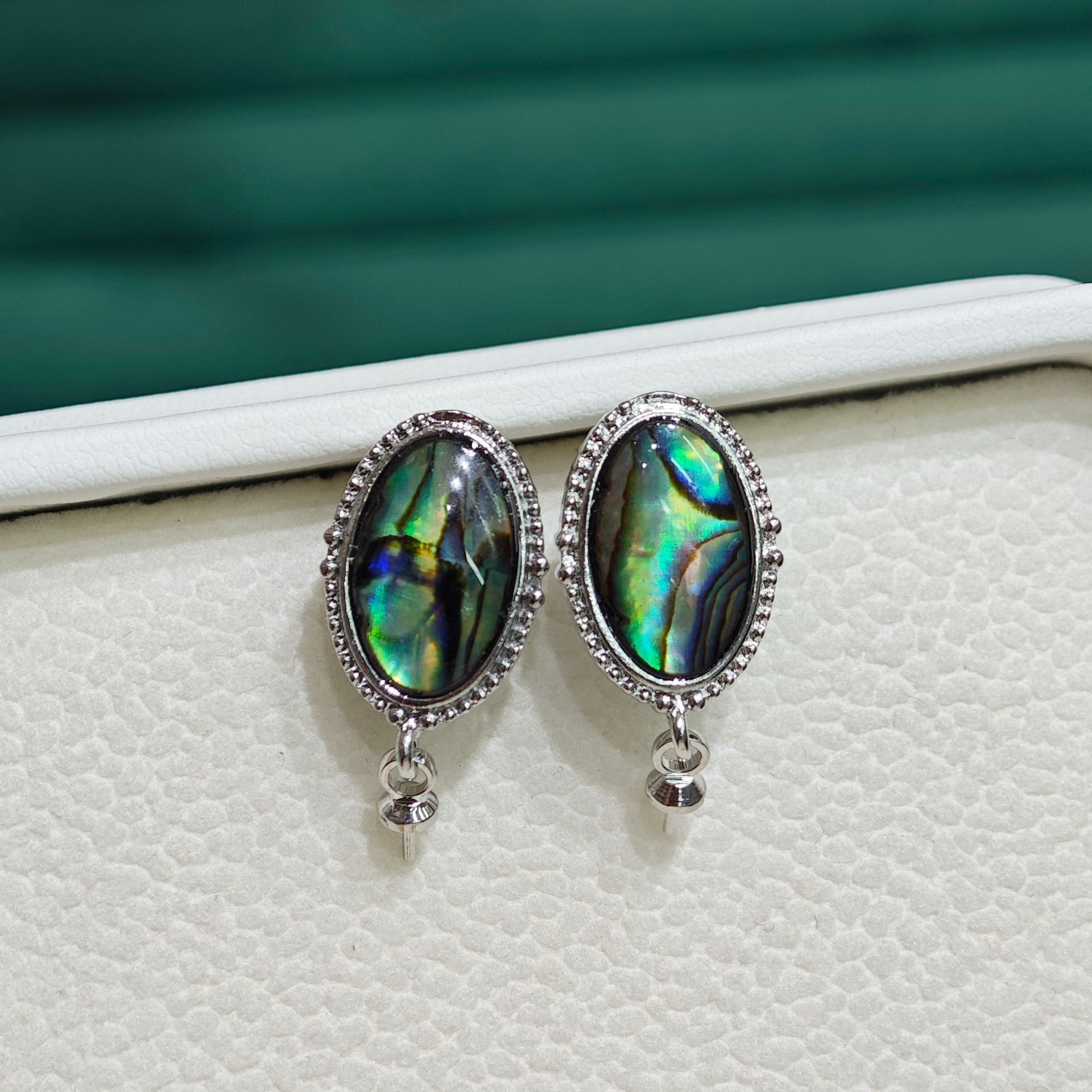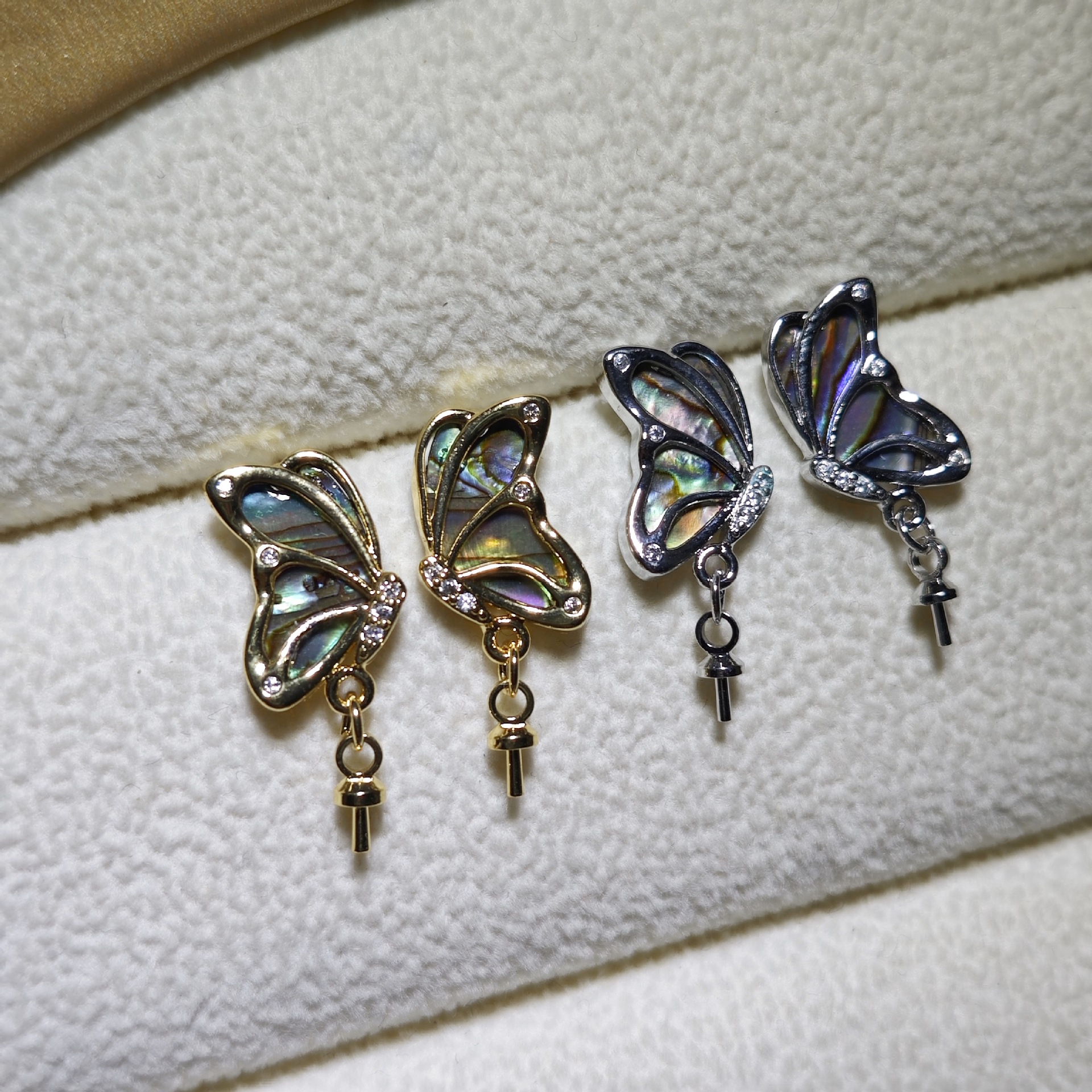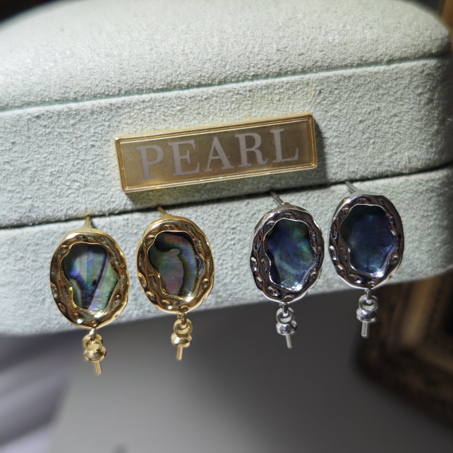 diy珍珠托高品质S925天然鲍鱼贝平底珍珠耳钉配件 耳环饰品珍珠托
