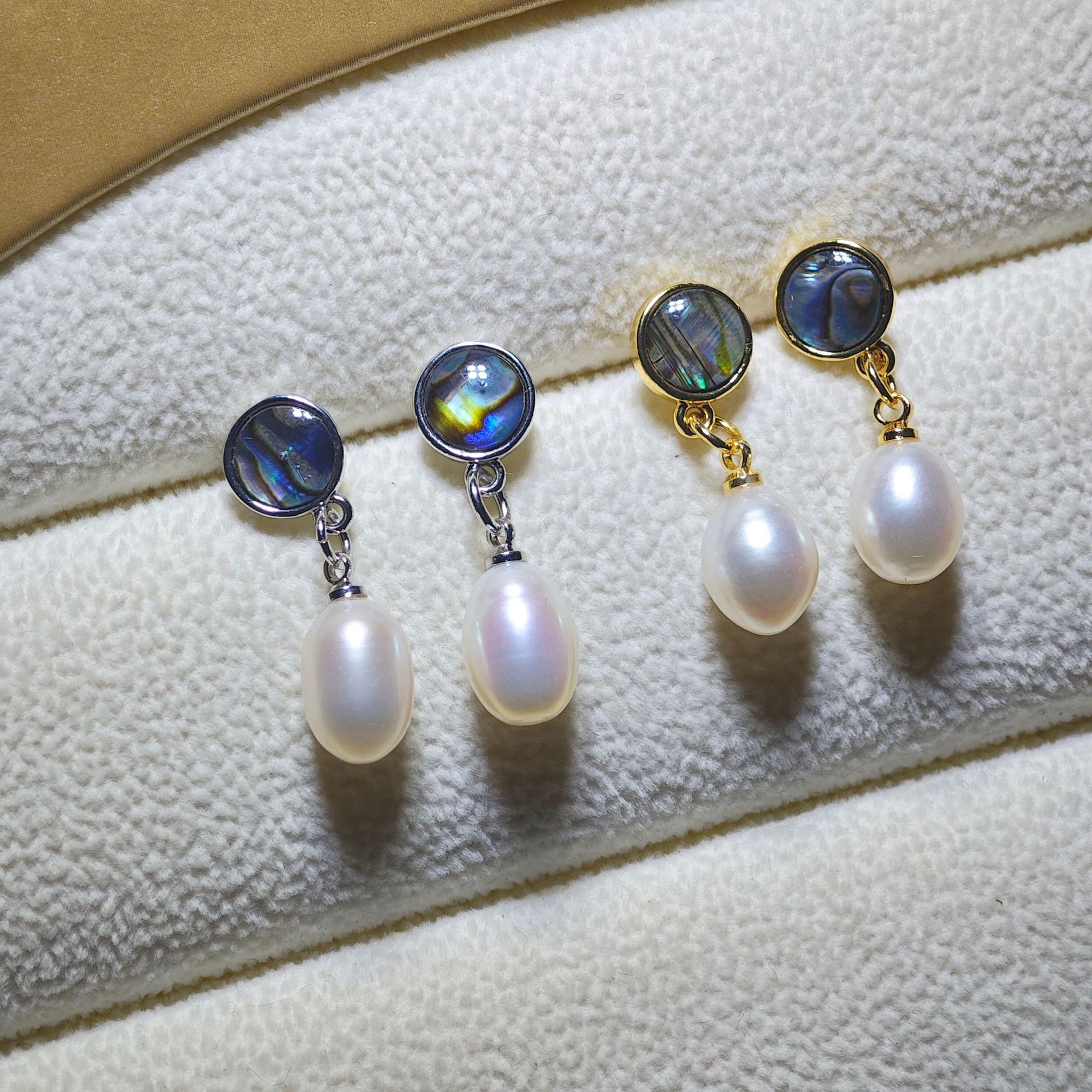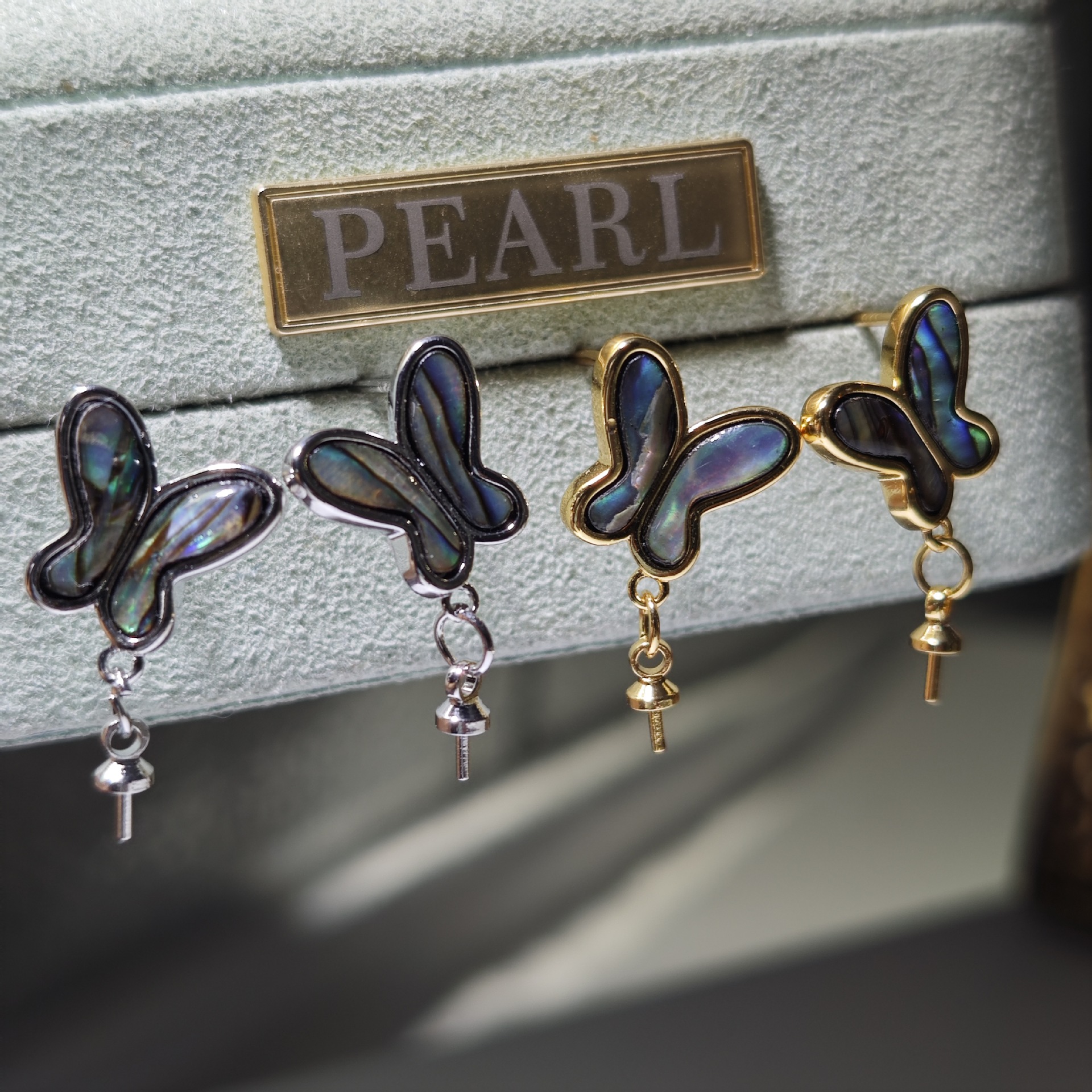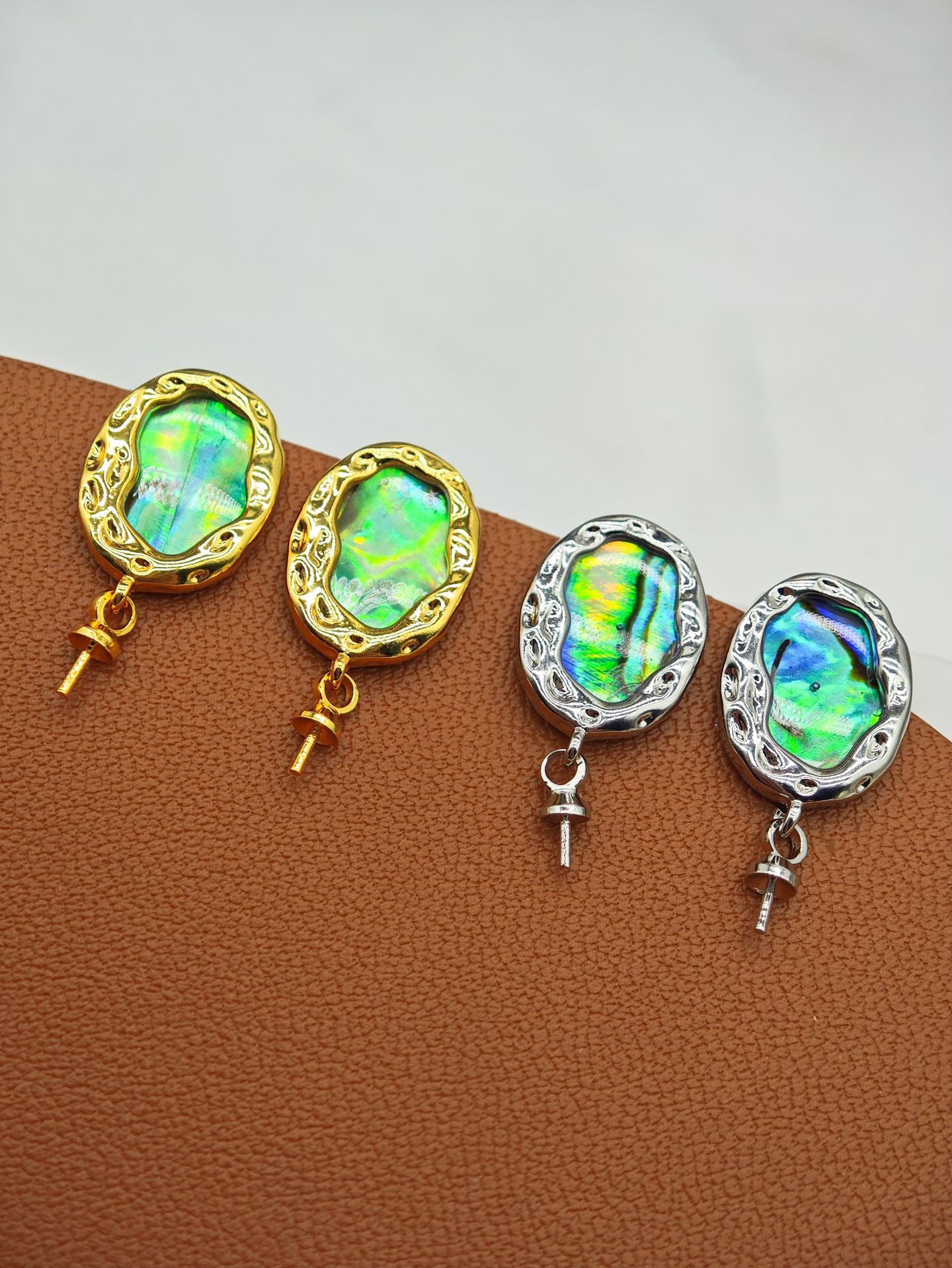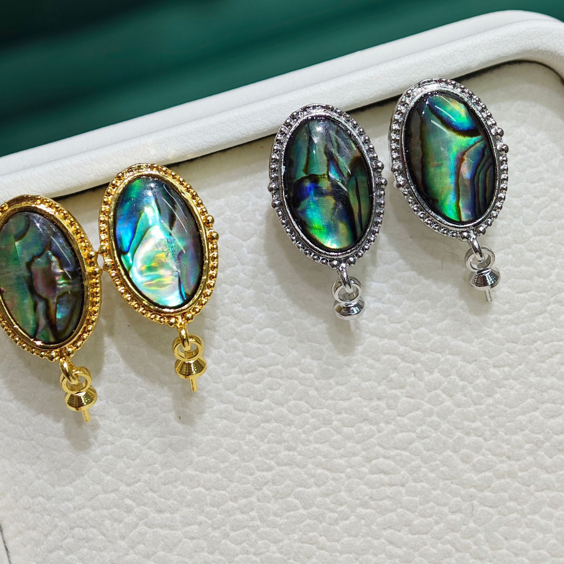 diy珍珠托高品质S925天然鲍鱼贝平底珍珠耳钉配件 耳环饰品珍珠托