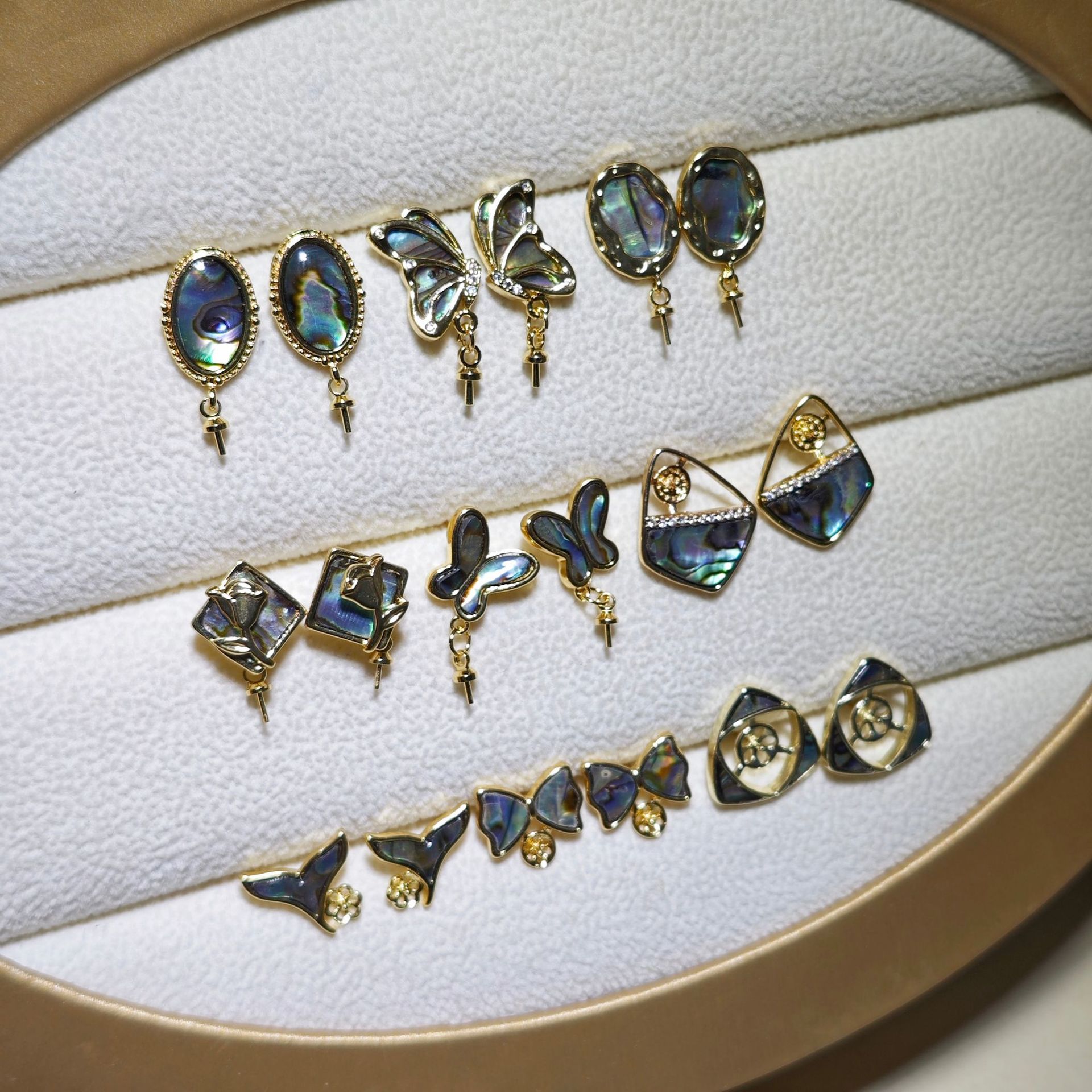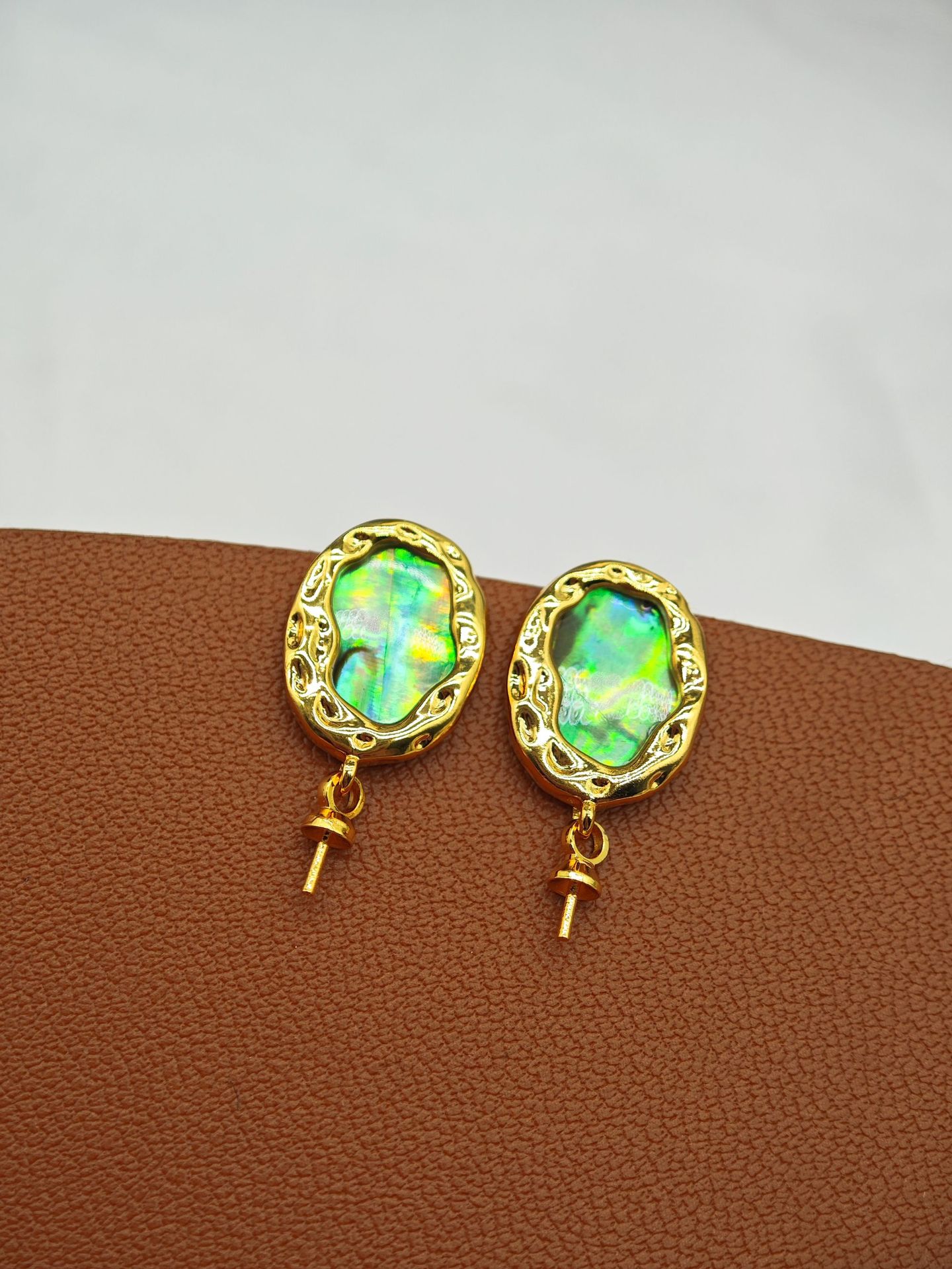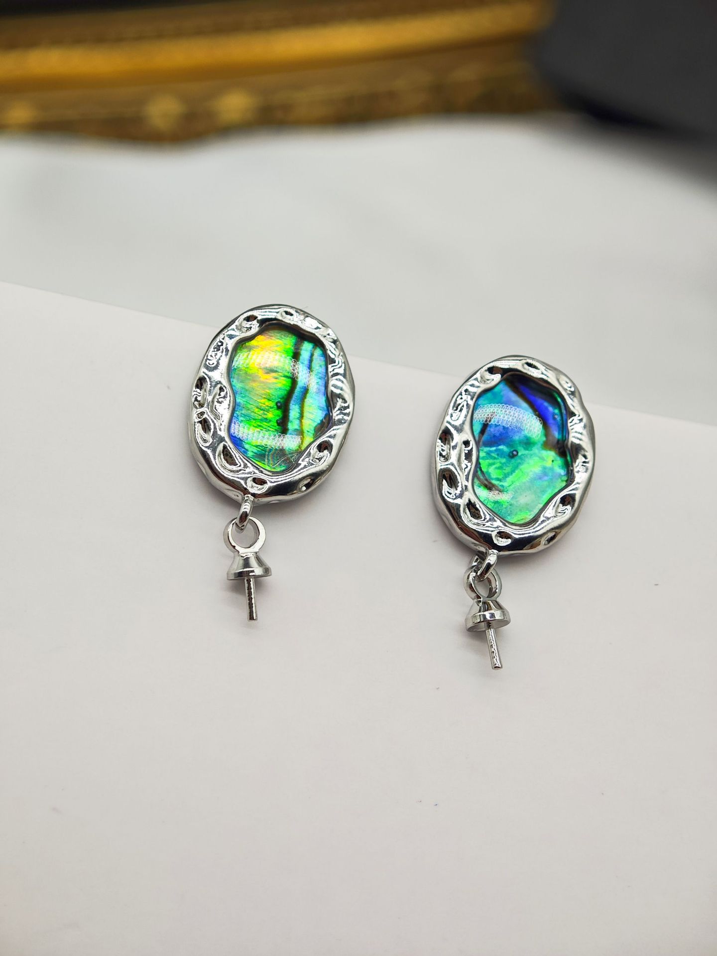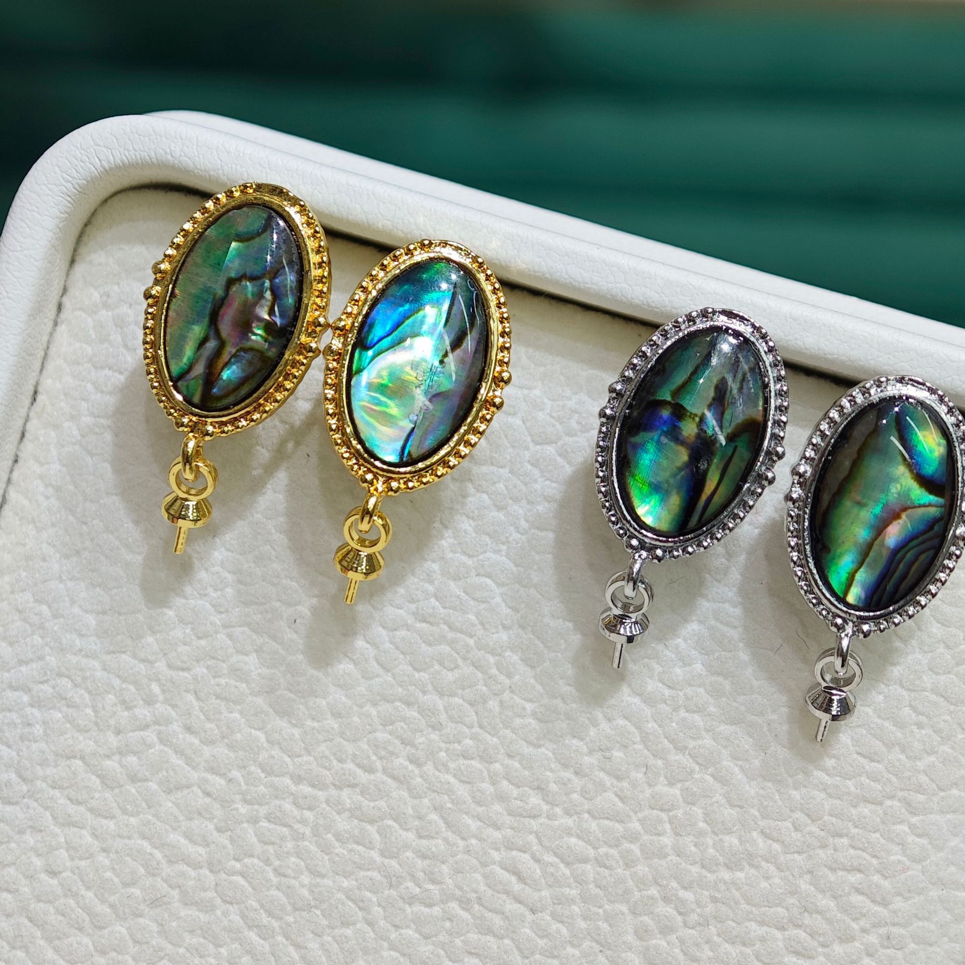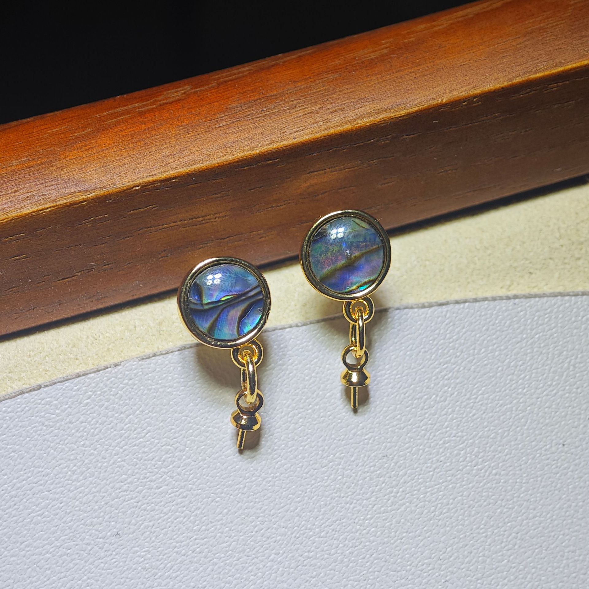 diy珍珠托高品质S925天然鲍鱼贝平底珍珠耳钉配件 耳环饰品珍珠托