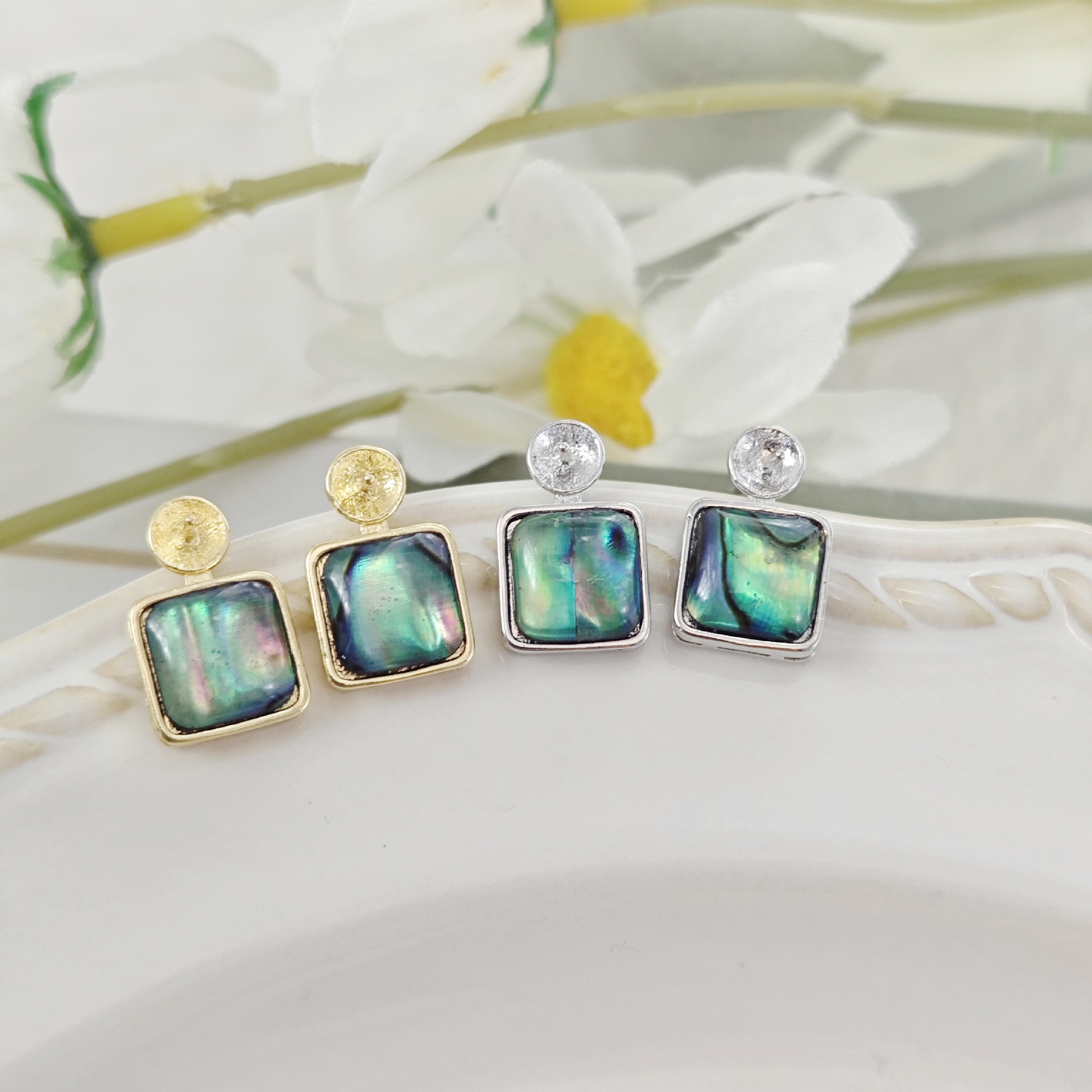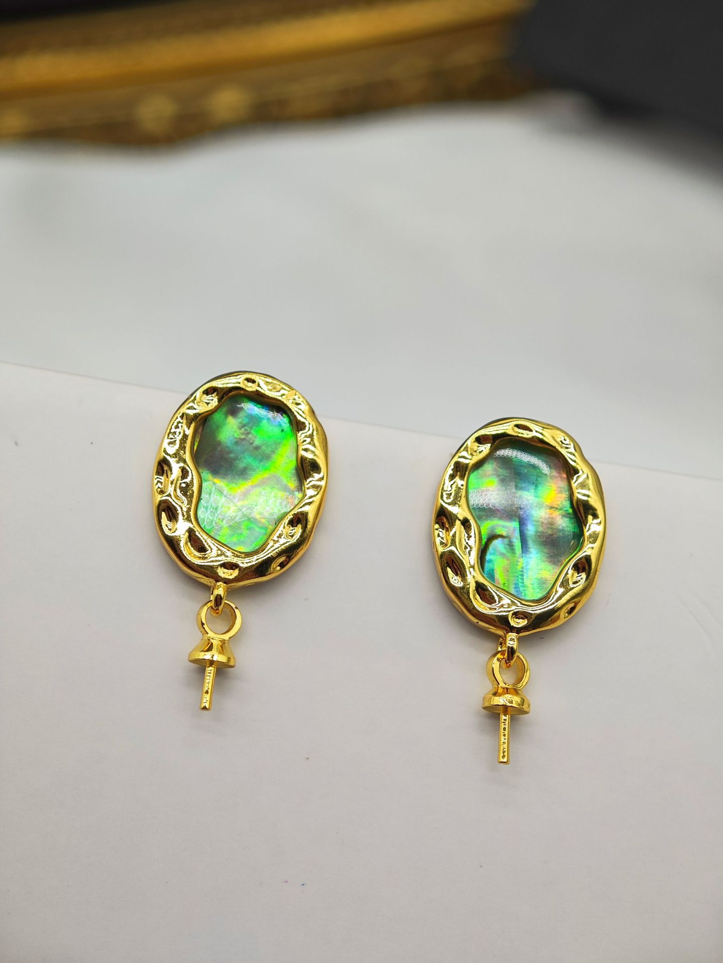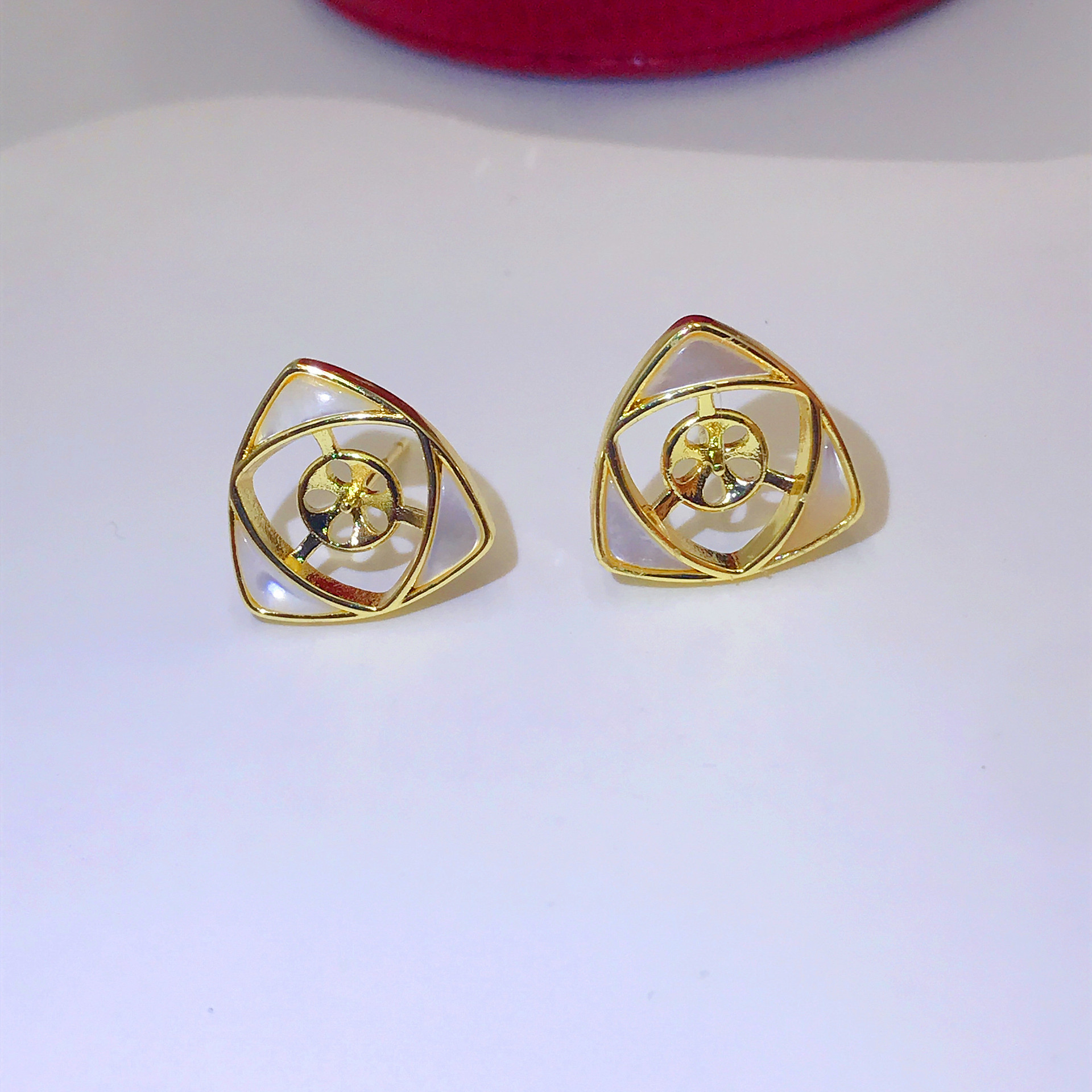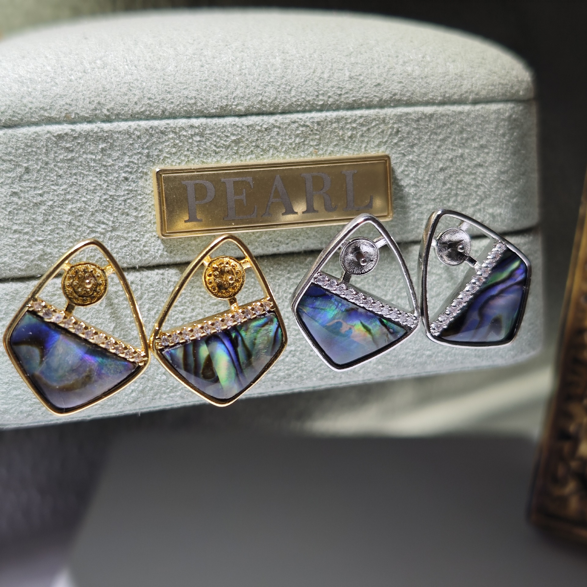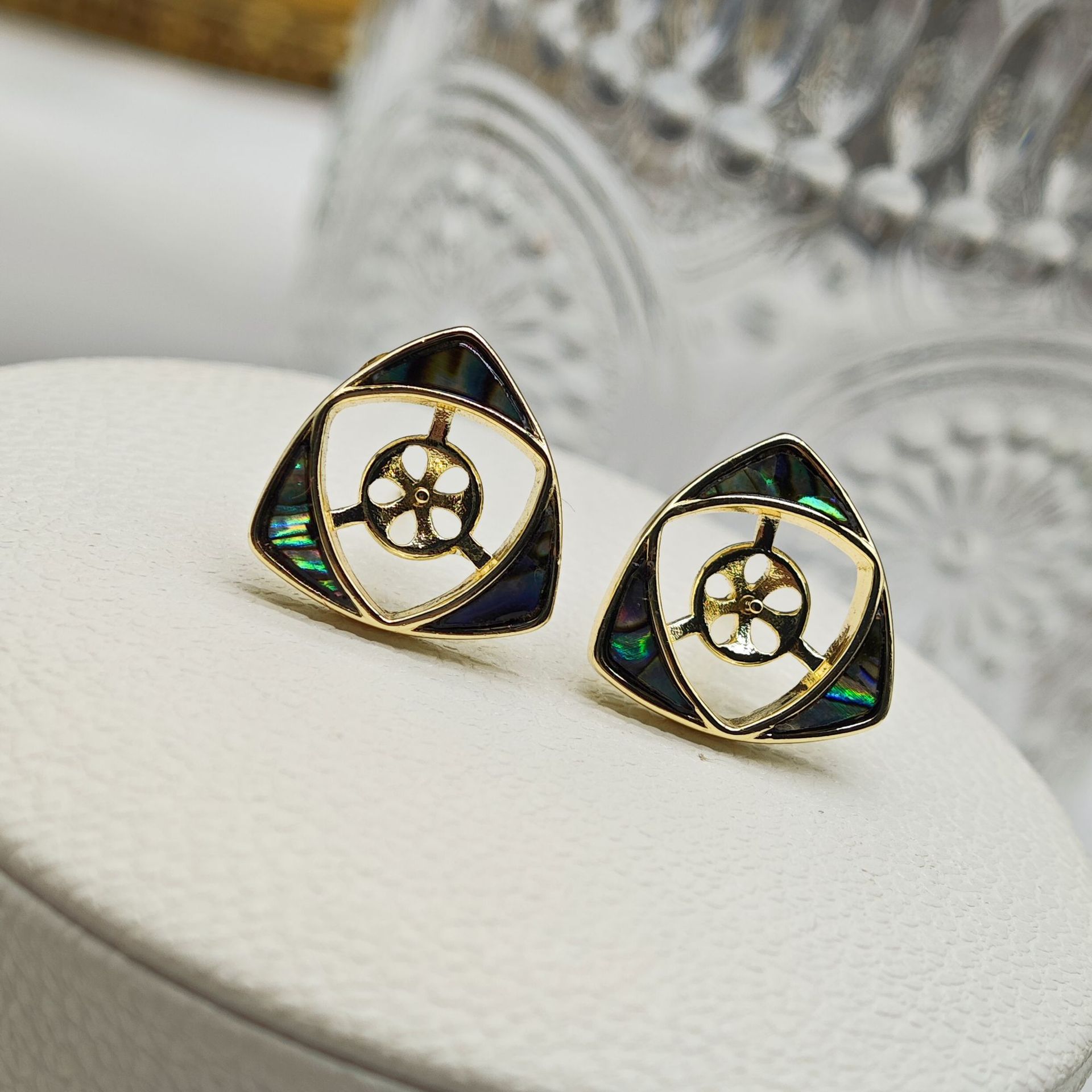 diy珍珠托高品质S925天然鲍鱼贝平底珍珠耳钉配件 耳环饰品珍珠托