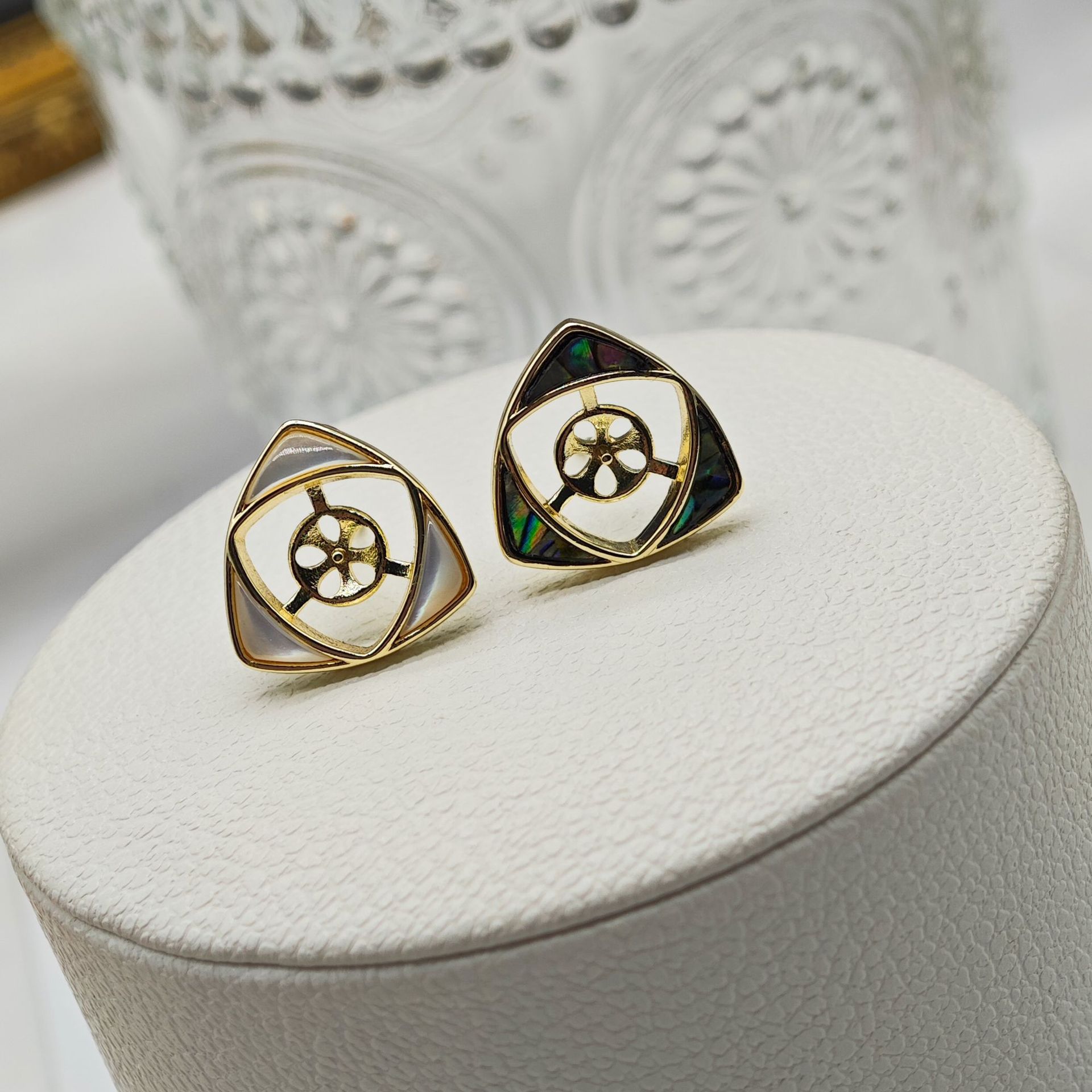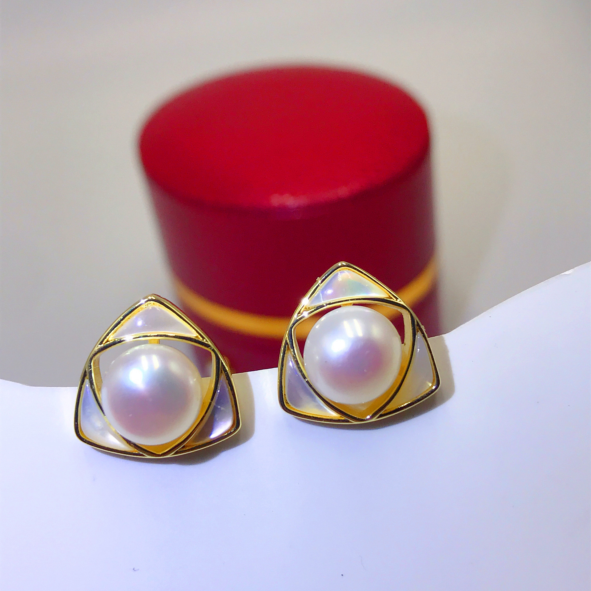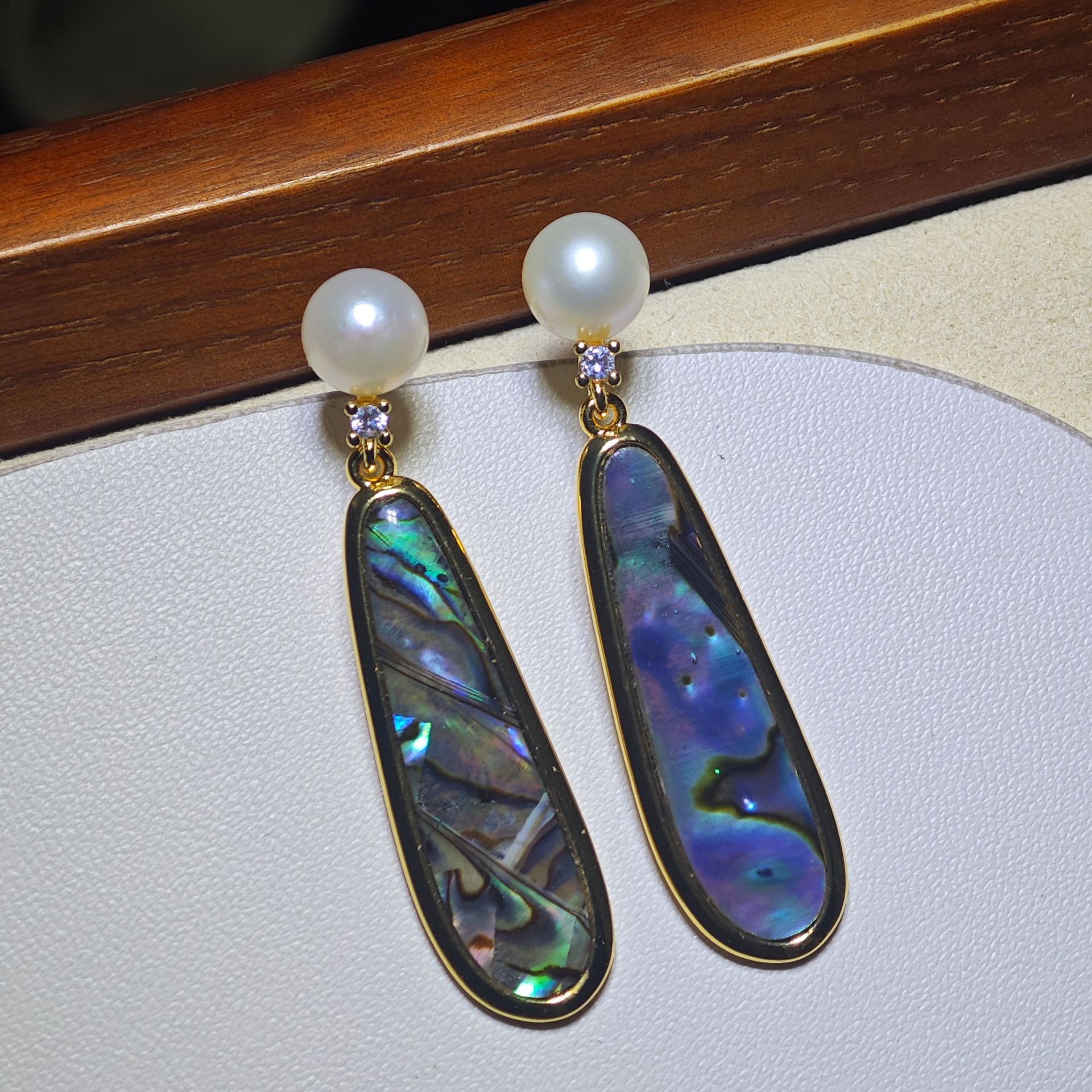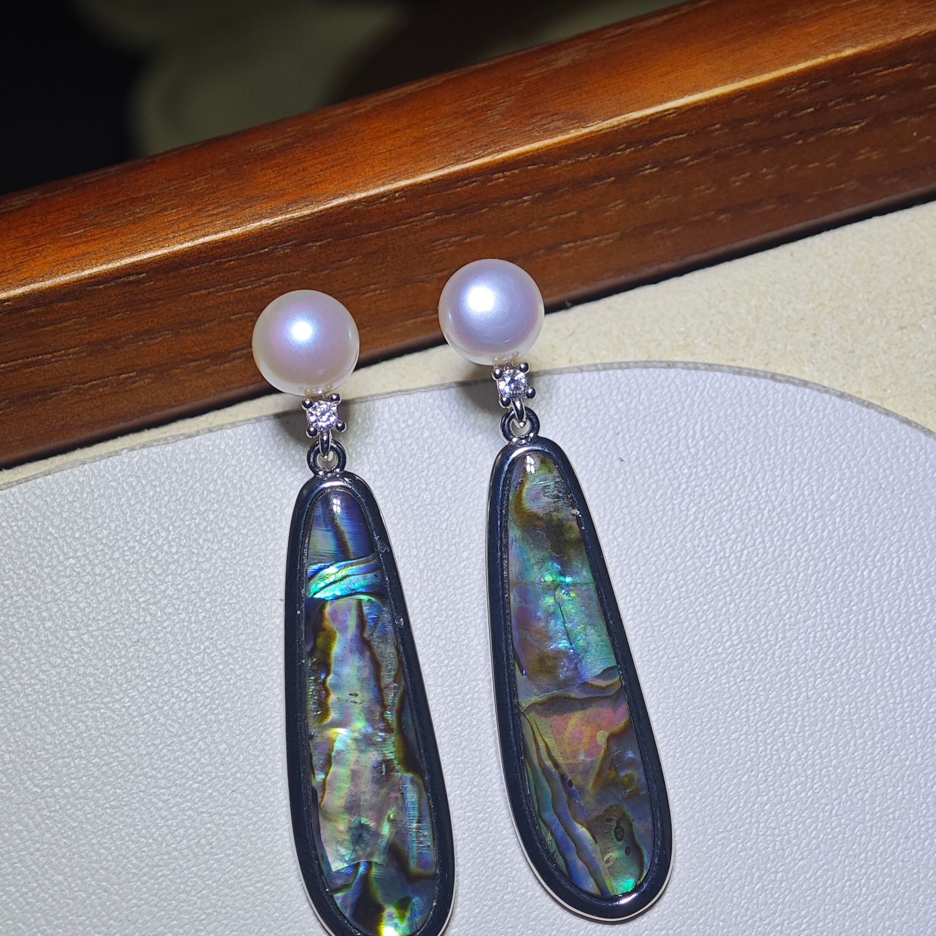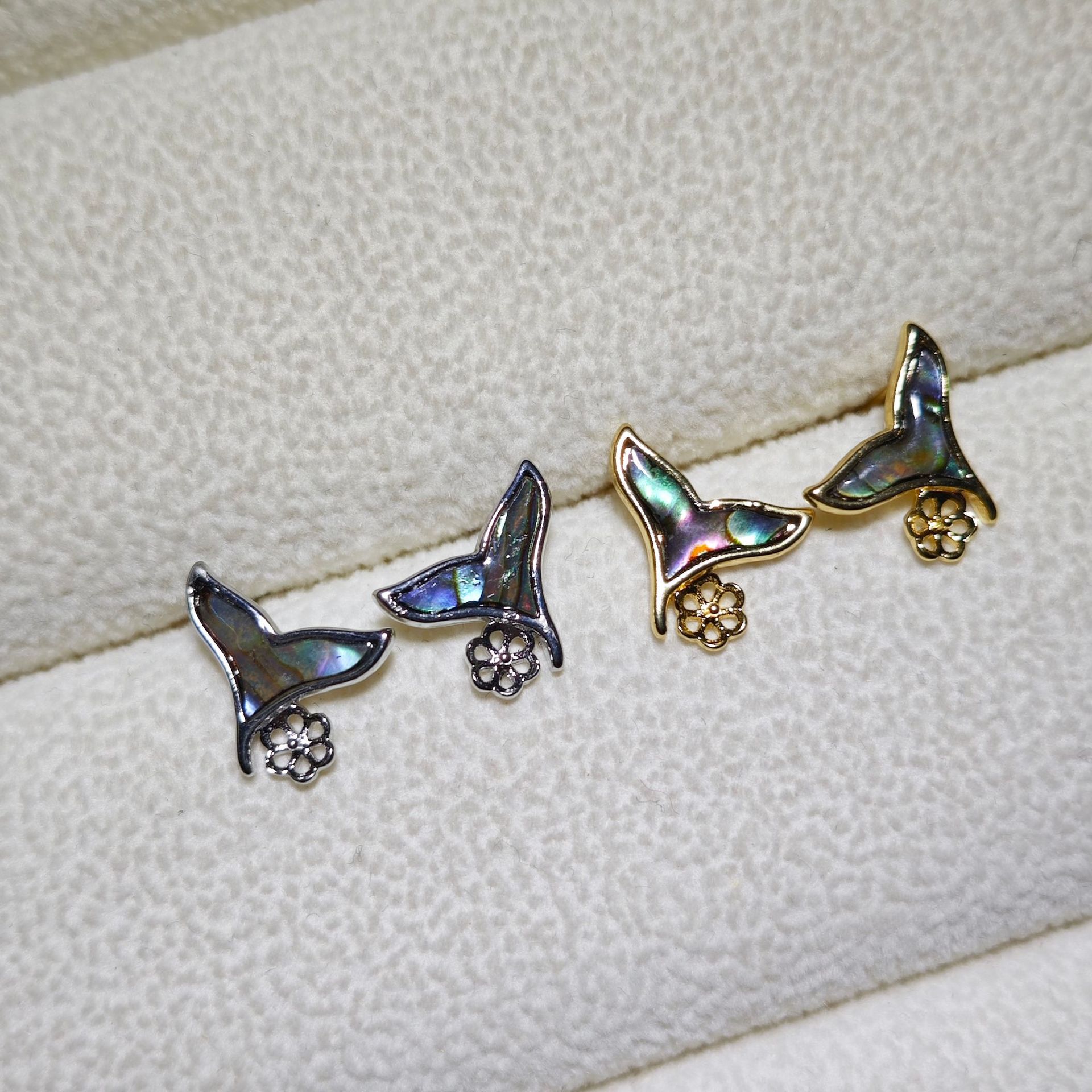 diy珍珠托高品质S925天然鲍鱼贝平底珍珠耳钉配件 耳环饰品珍珠托