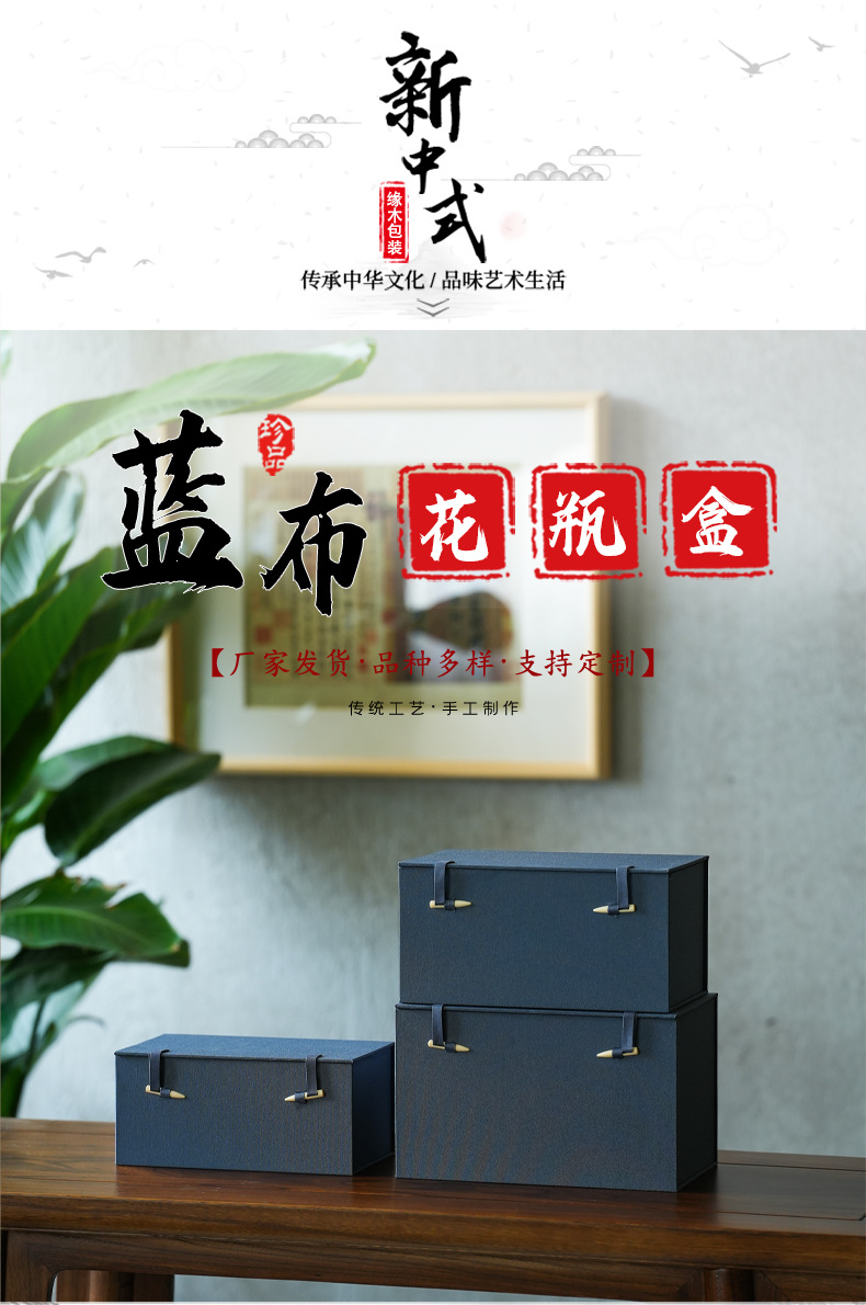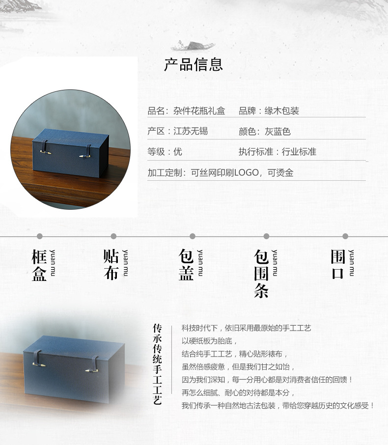 象牙针花瓶盒棉麻布铜扣紫砂壶瓷器礼品盒亚麻布杂件包装盒锦盒