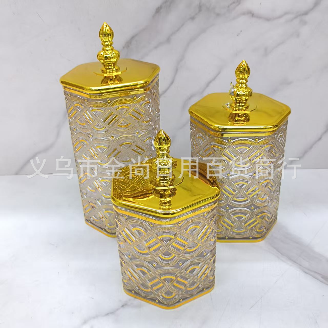 糖果整理小罐子桌面零食储物盒子塑料透明奶白六角如意结密封罐