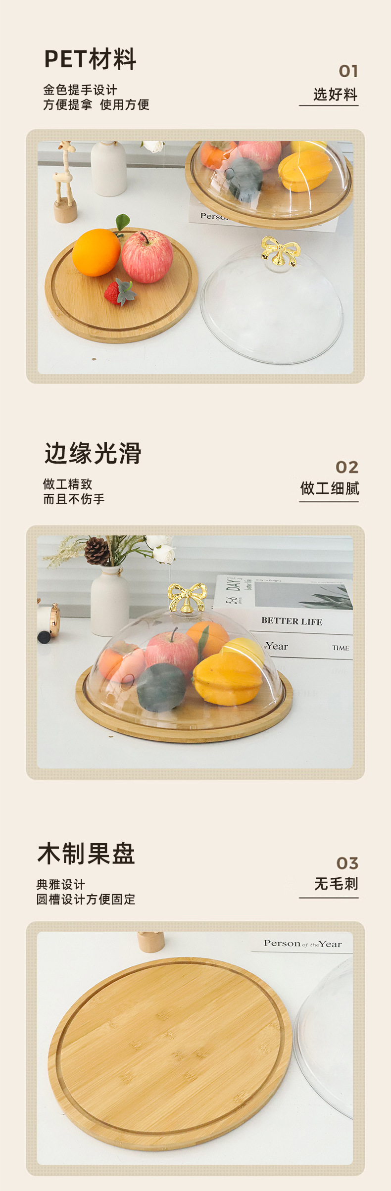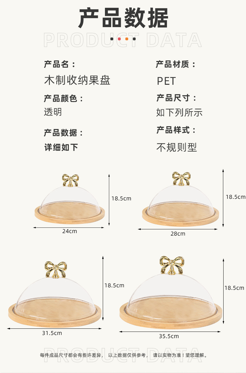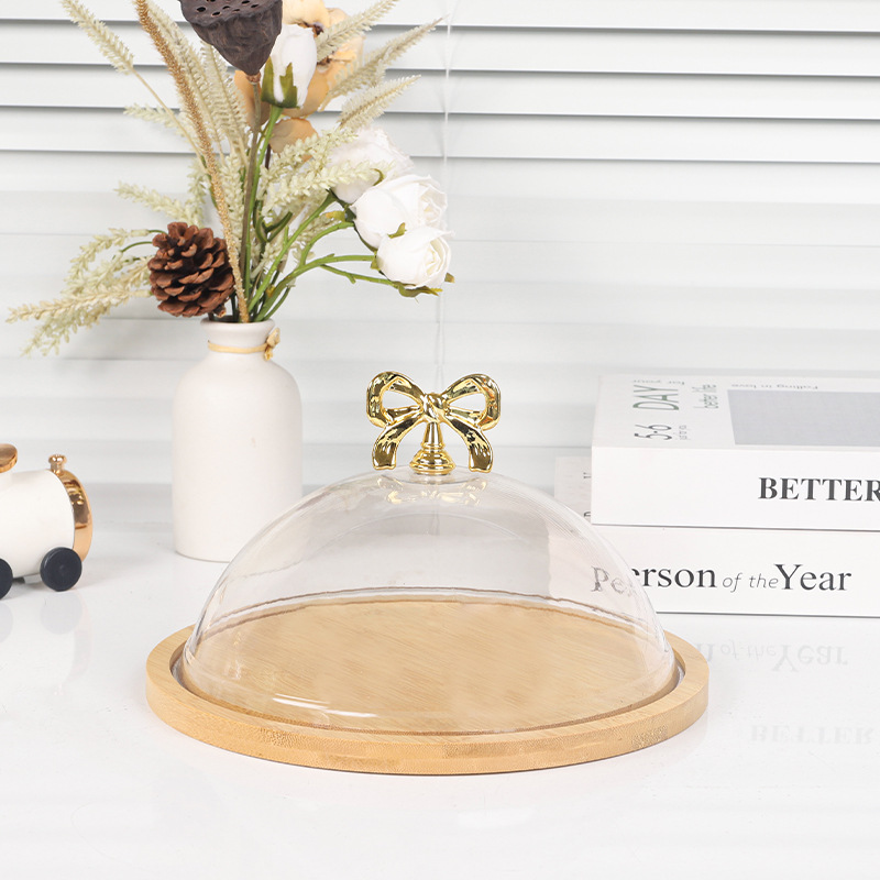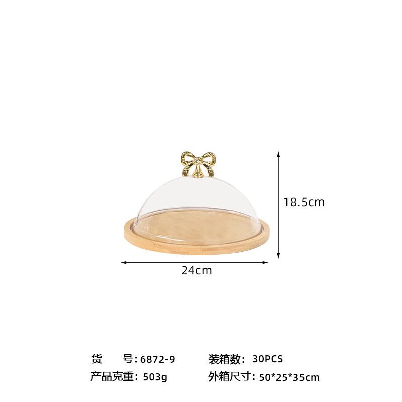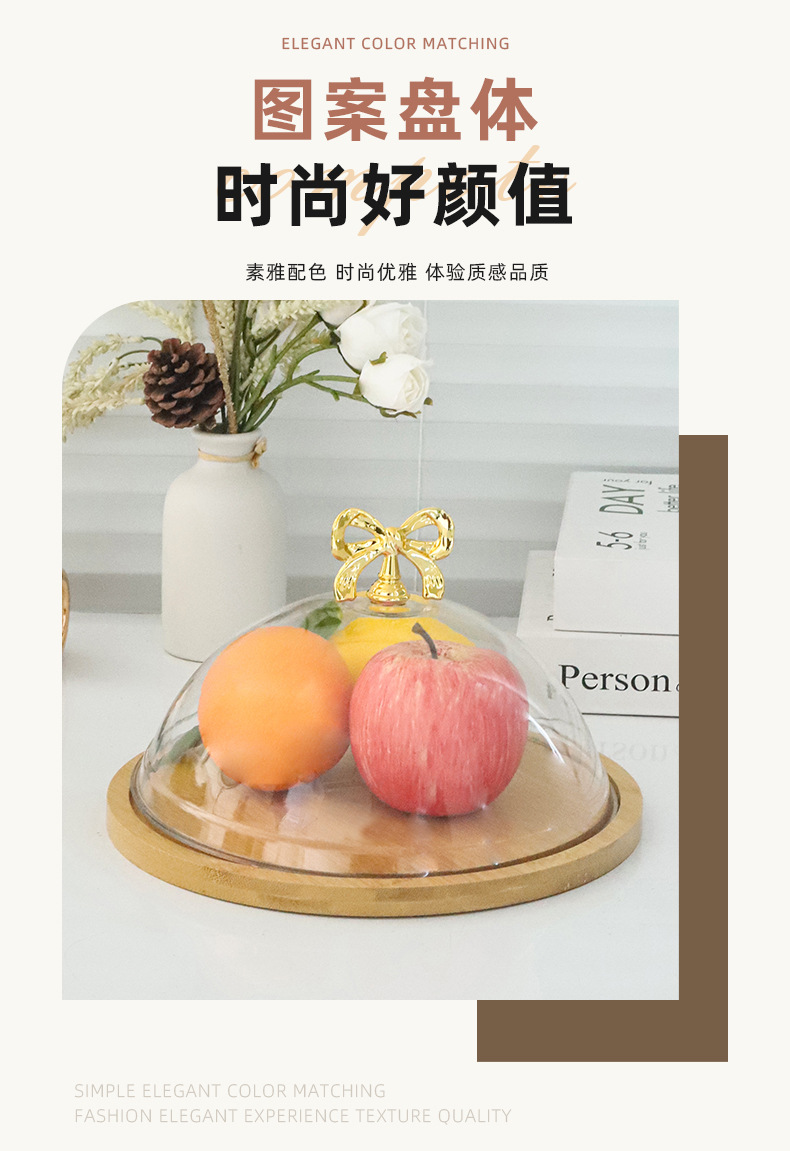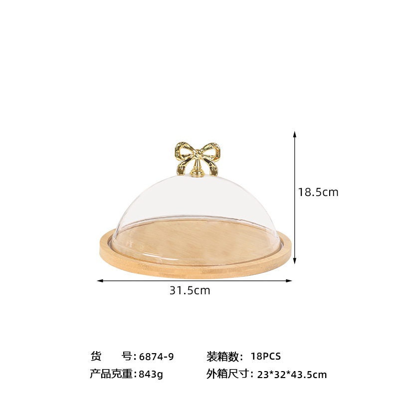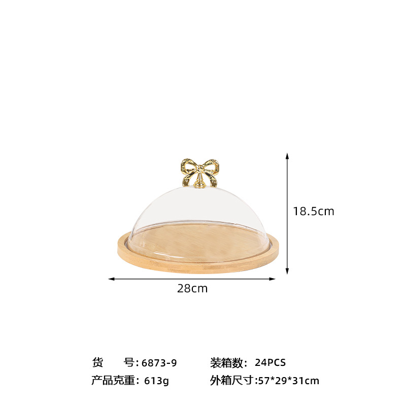 带盖竹木盘透明罩甜品水果试吃盒子西点面包糕点品尝盘蛋糕托盘