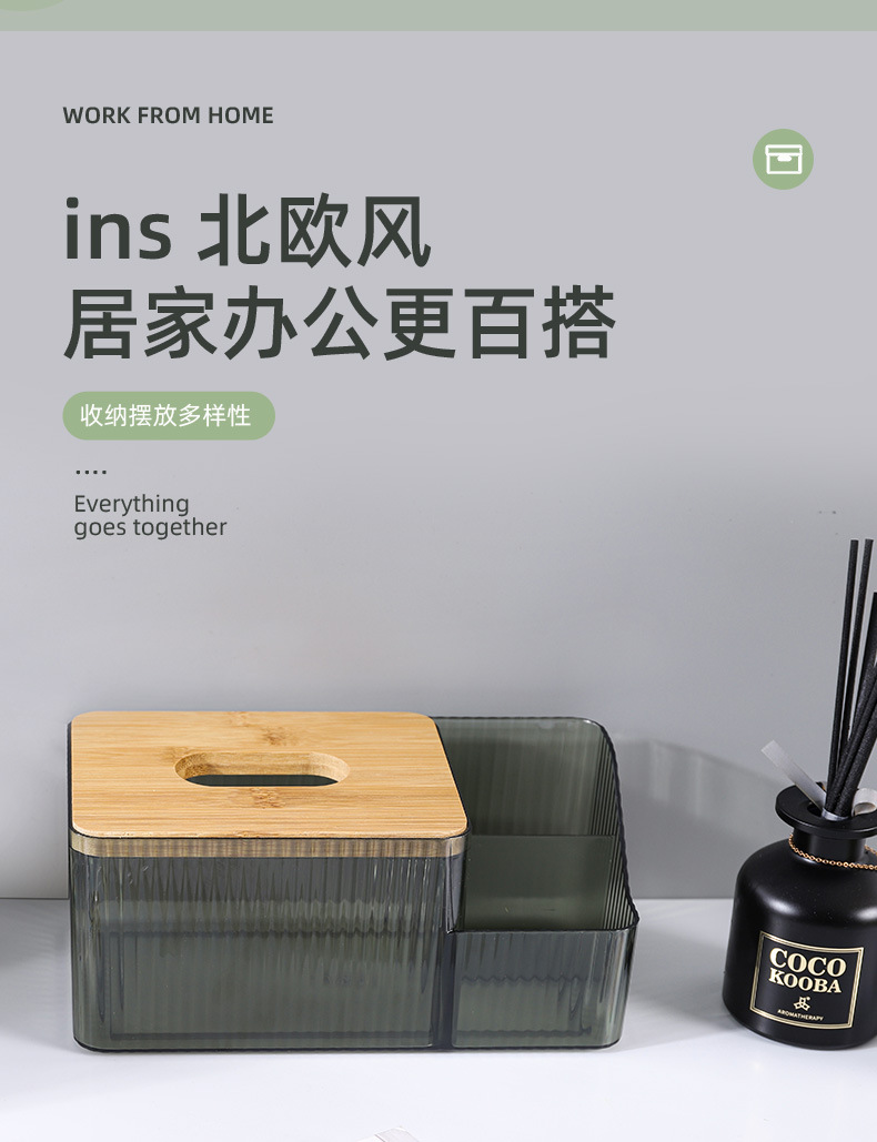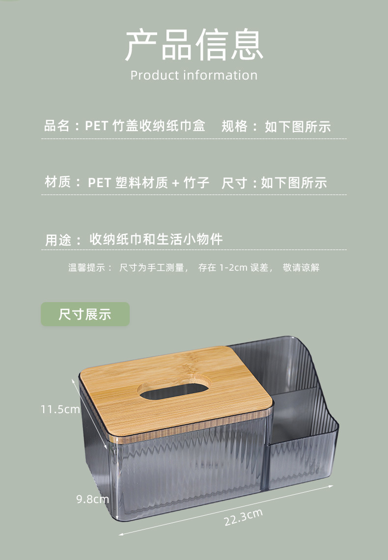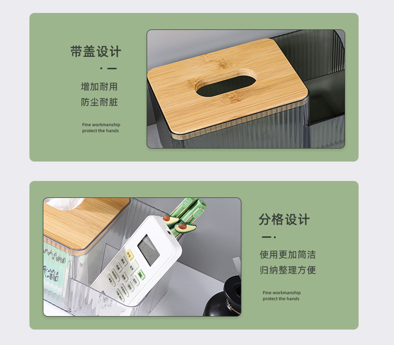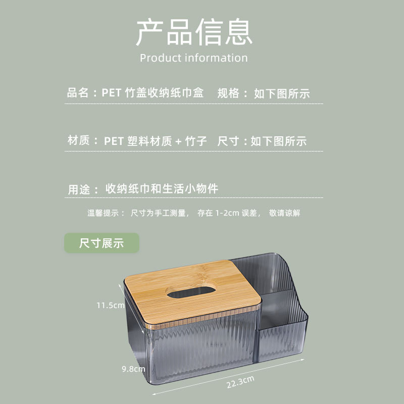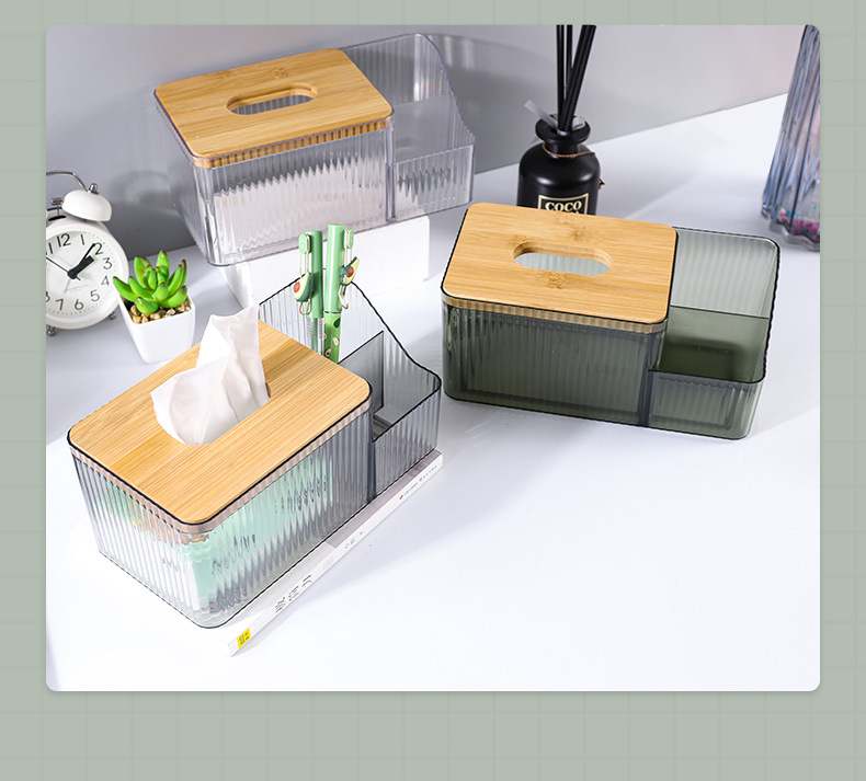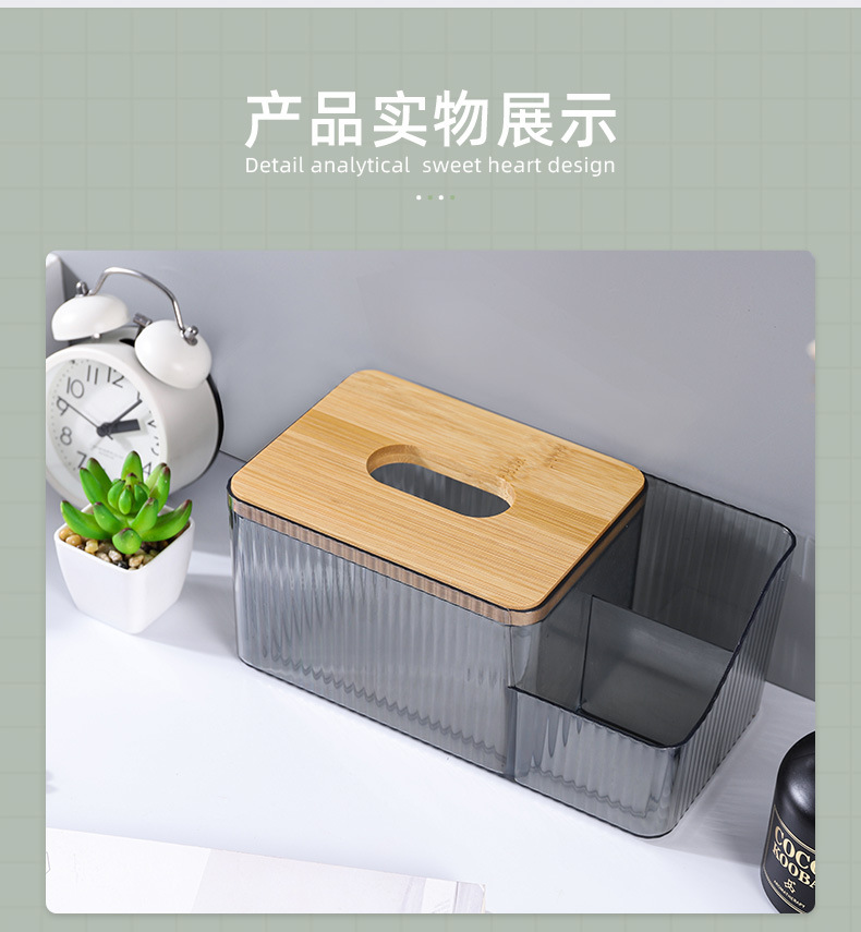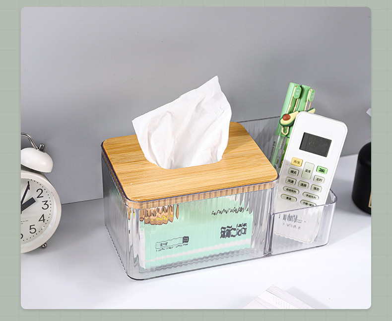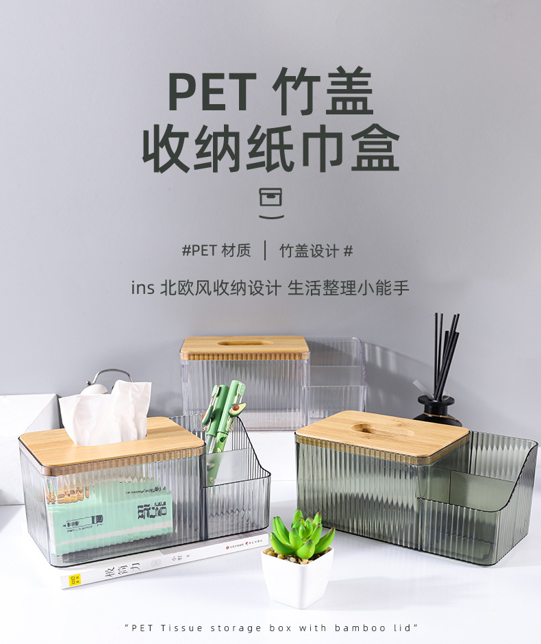 厂家直供北欧桌面创意化妆收纳盒 PET透明网红竹木纸巾盒可印LOGO