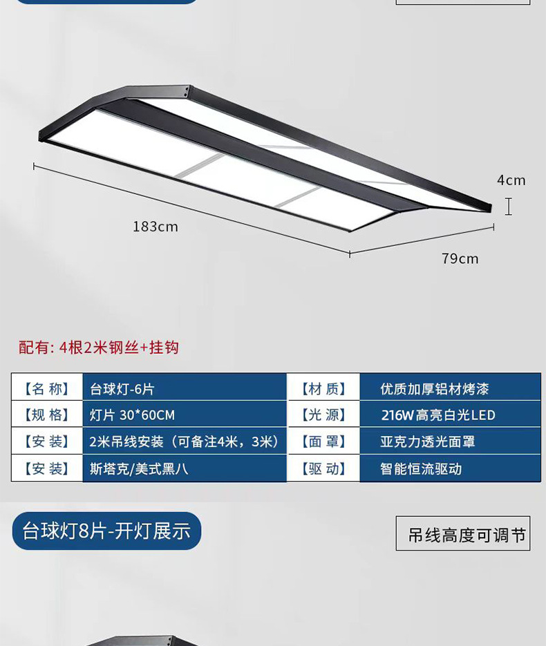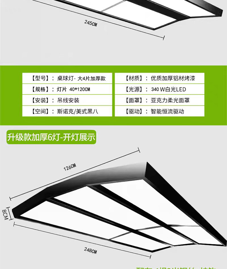 无影灯健身房led桌球专用吊灯防眩目大功率无频闪铝材耐用台球灯
