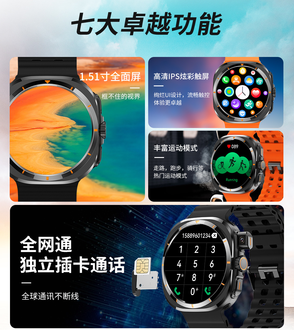 跨境新款BW8智能手表1.51寸圆屏高清蓝牙通话多功能运动智能手表