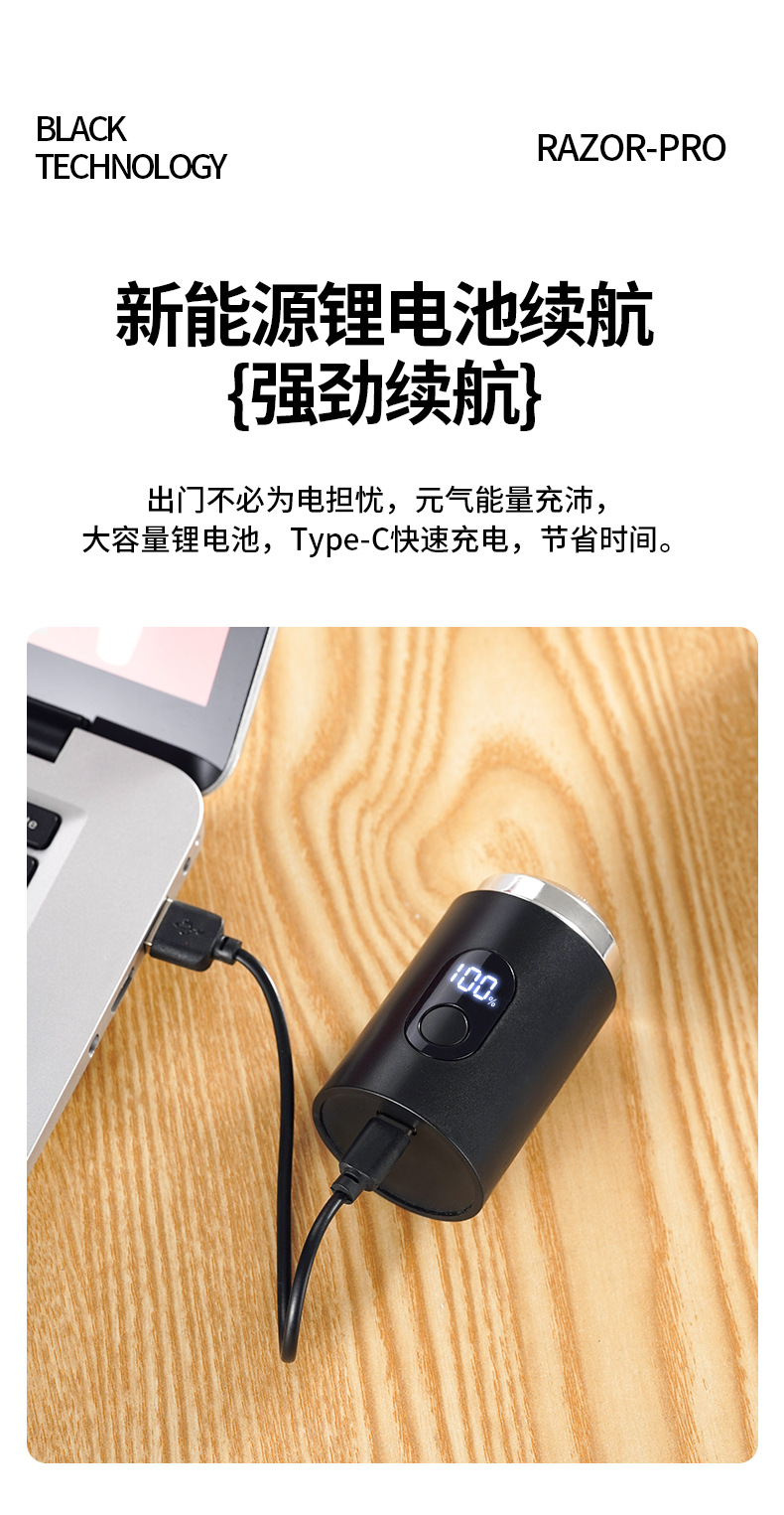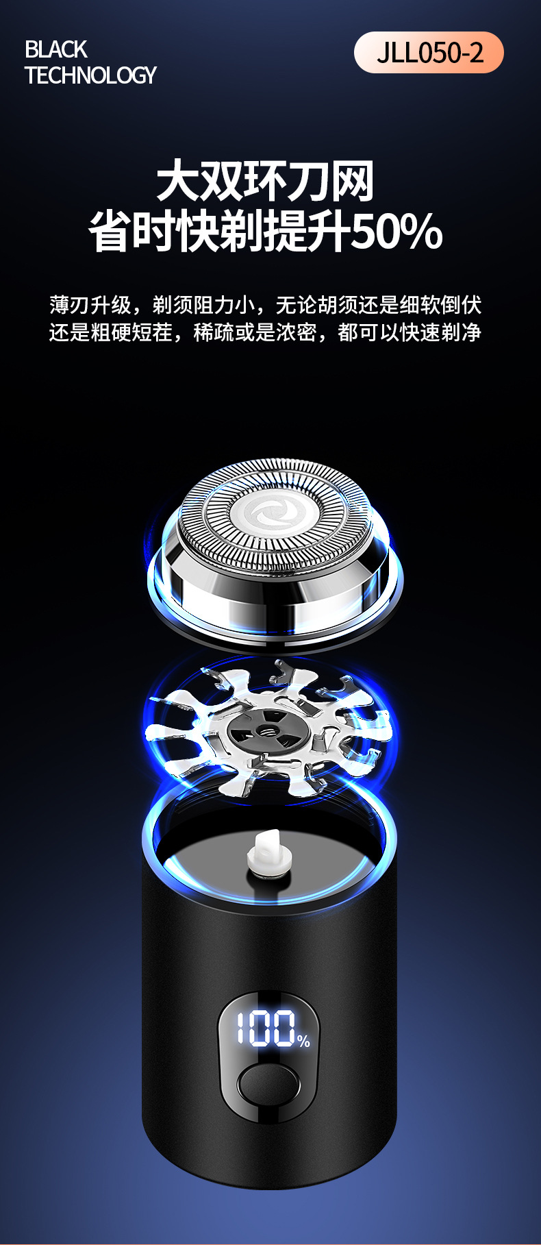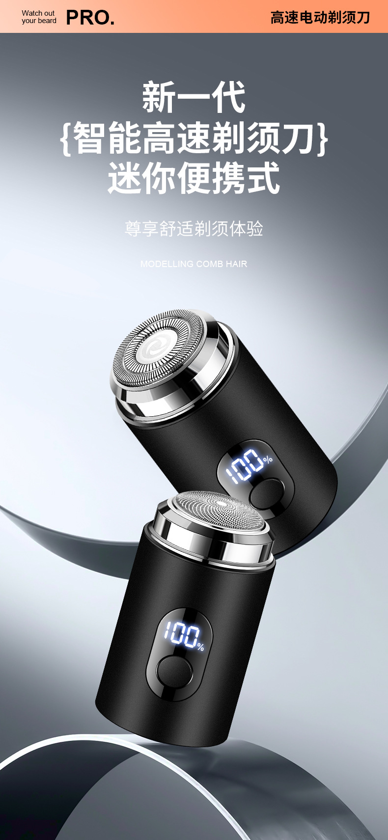 JLL050小钢炮迷你电动剃须刀type-c带电量显示刮胡刀便携剃须神器