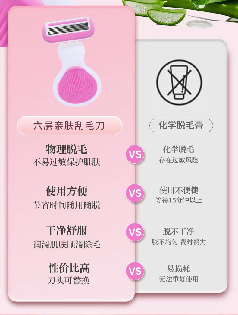 时尚新款贝壳6层女用刮毛刀手动剃毛刀脱毛器刮腋腿毛刮体毛现货