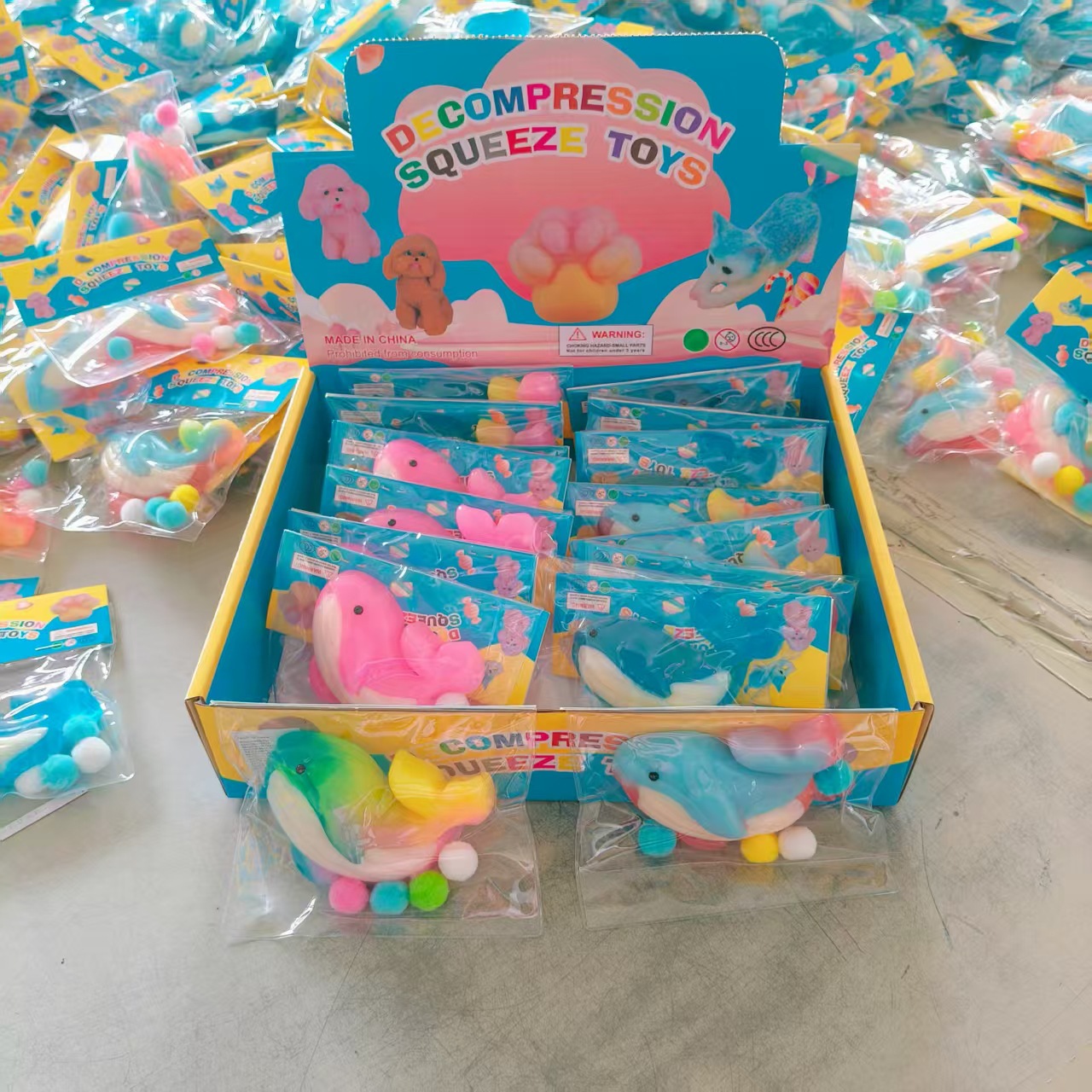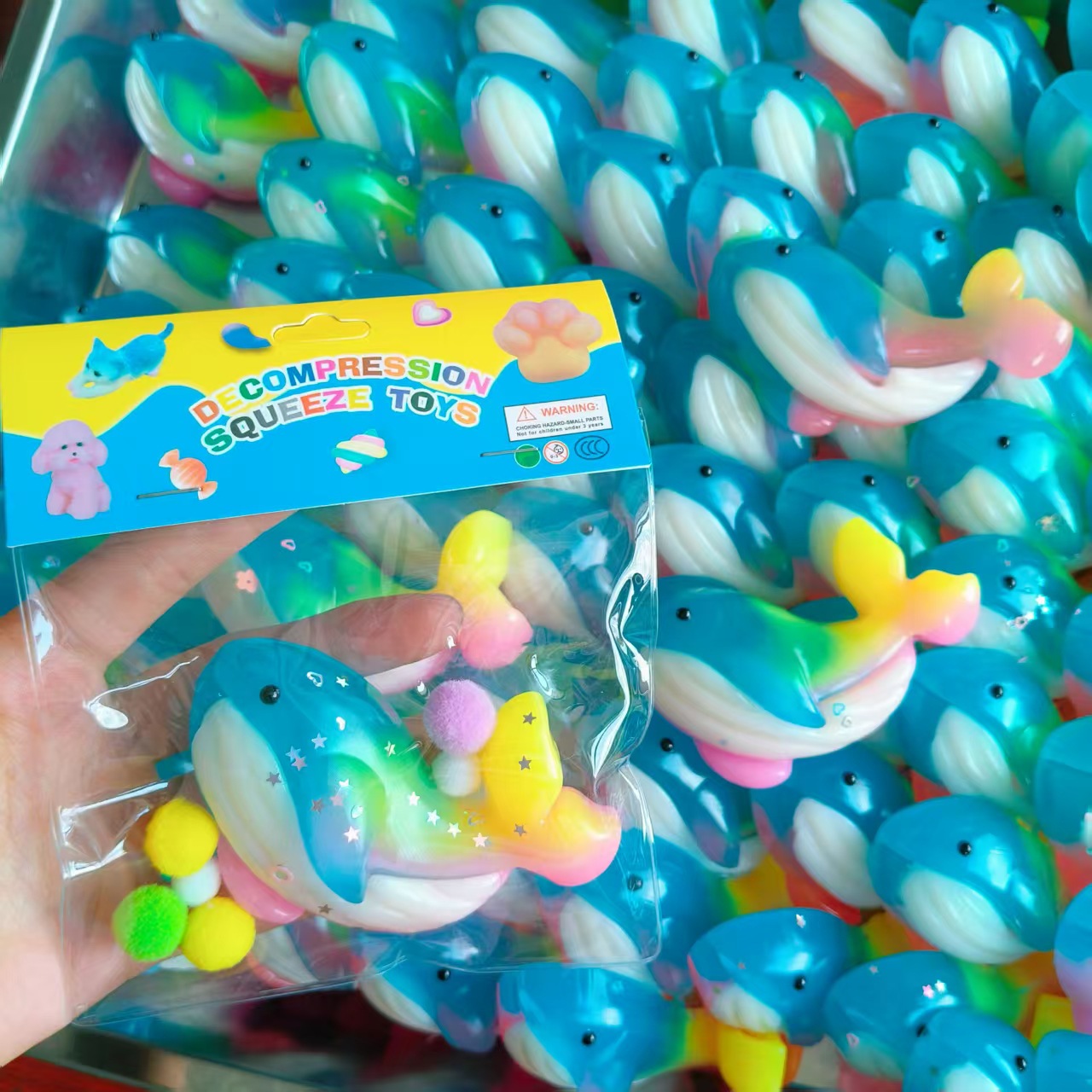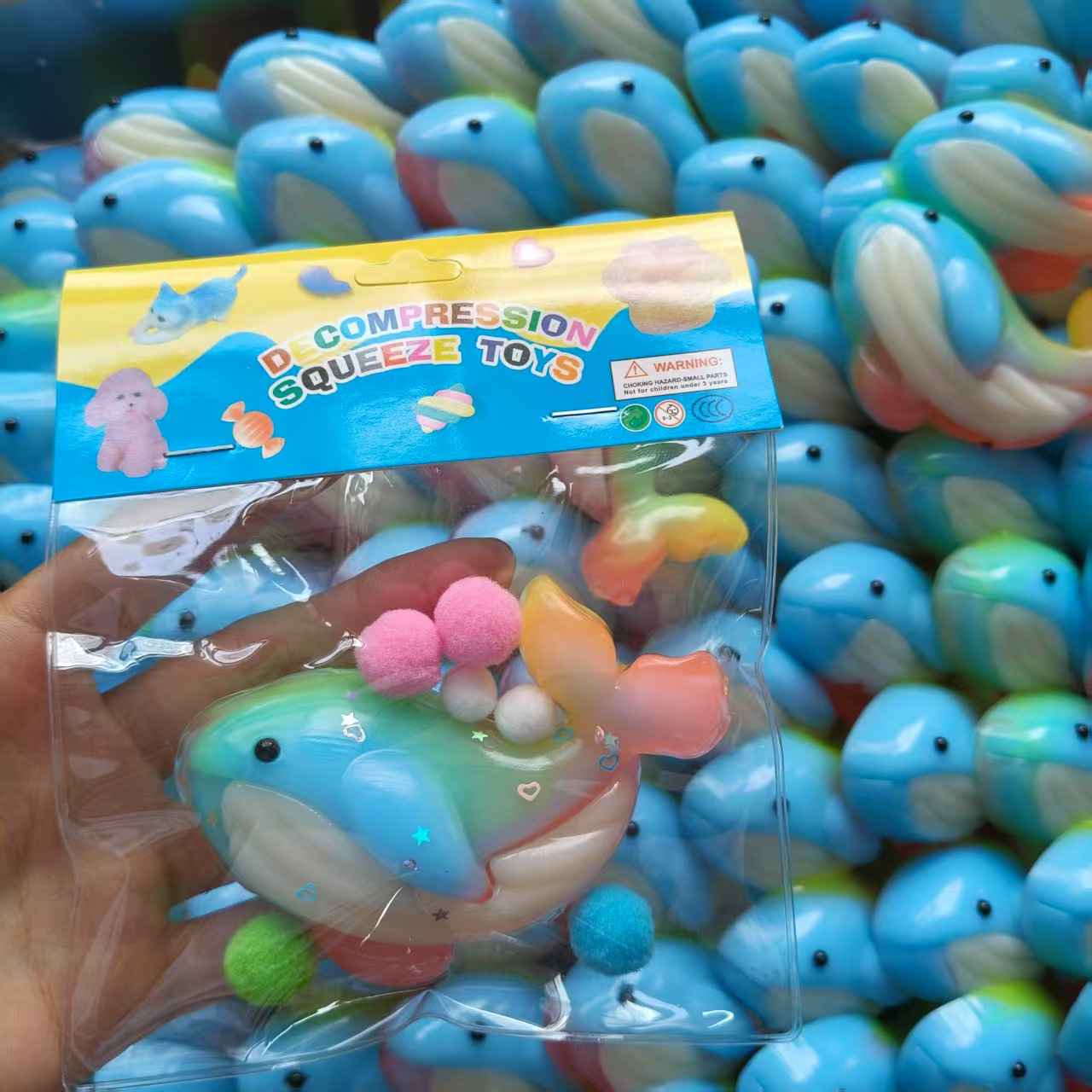 跨境新款仿真海洋动物鲸鱼小海豚彩色透色爆款减压发泄捏捏乐玩具