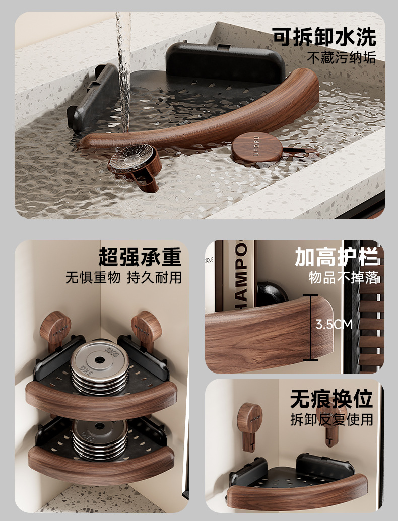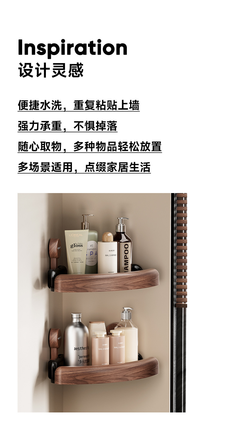 三角置物架壁挂式吸盘免打孔大容量可沥水浴室沐浴露洗手液收纳架