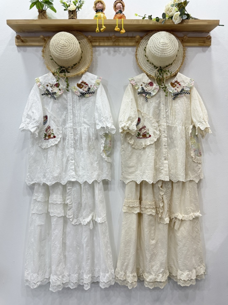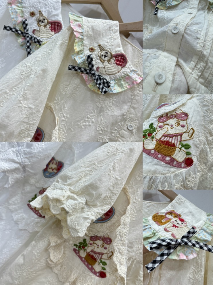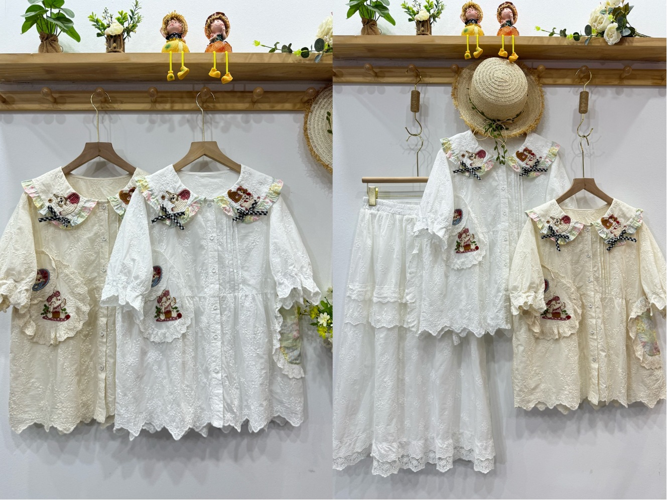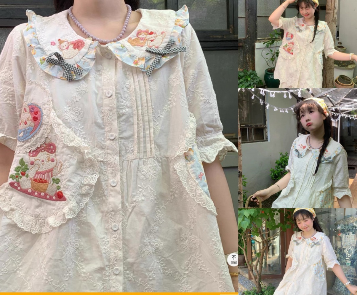 2025新款刺绣蕾丝娃娃领衬衫森女系胸前拼接蕾丝花边衬衫上衣