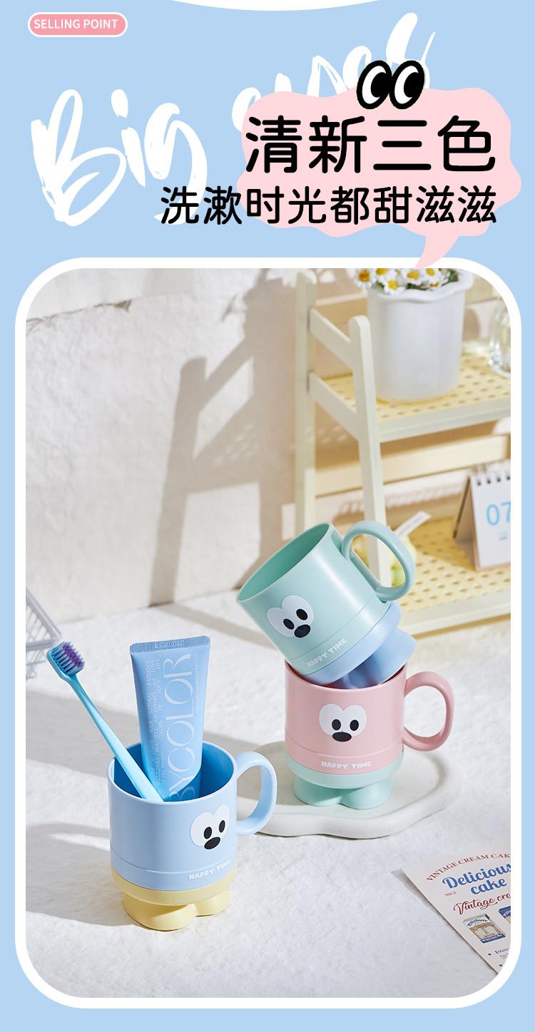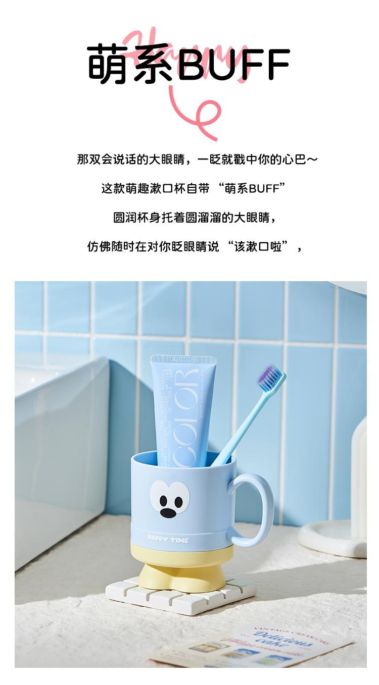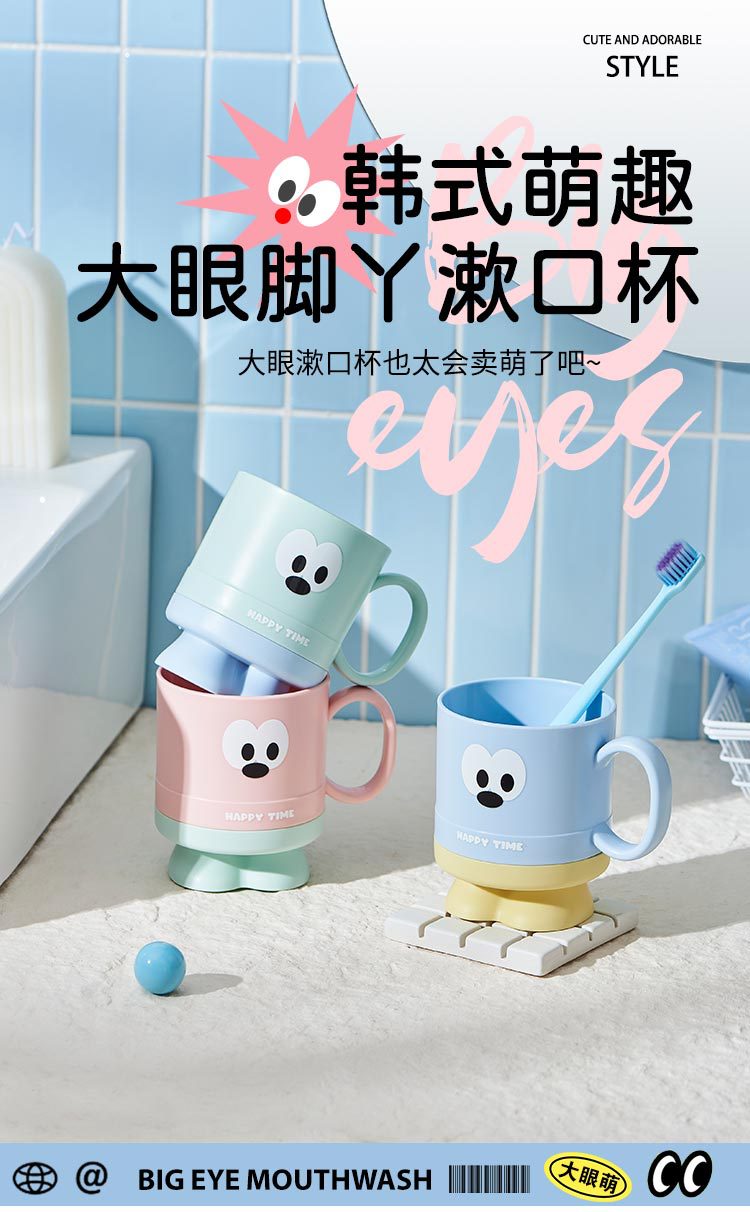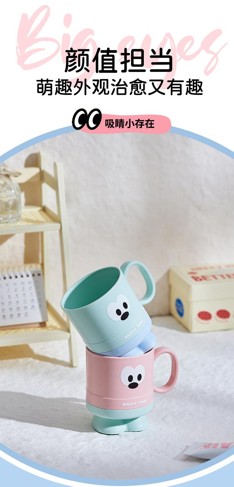 大眼仔高脚杯可爱学生刷牙杯子j家用儿童漱口杯洗漱情侣杯