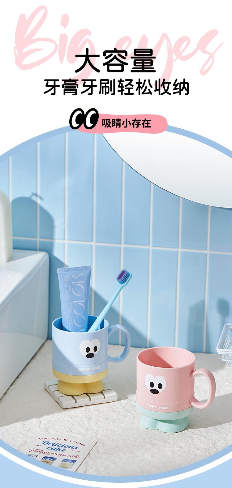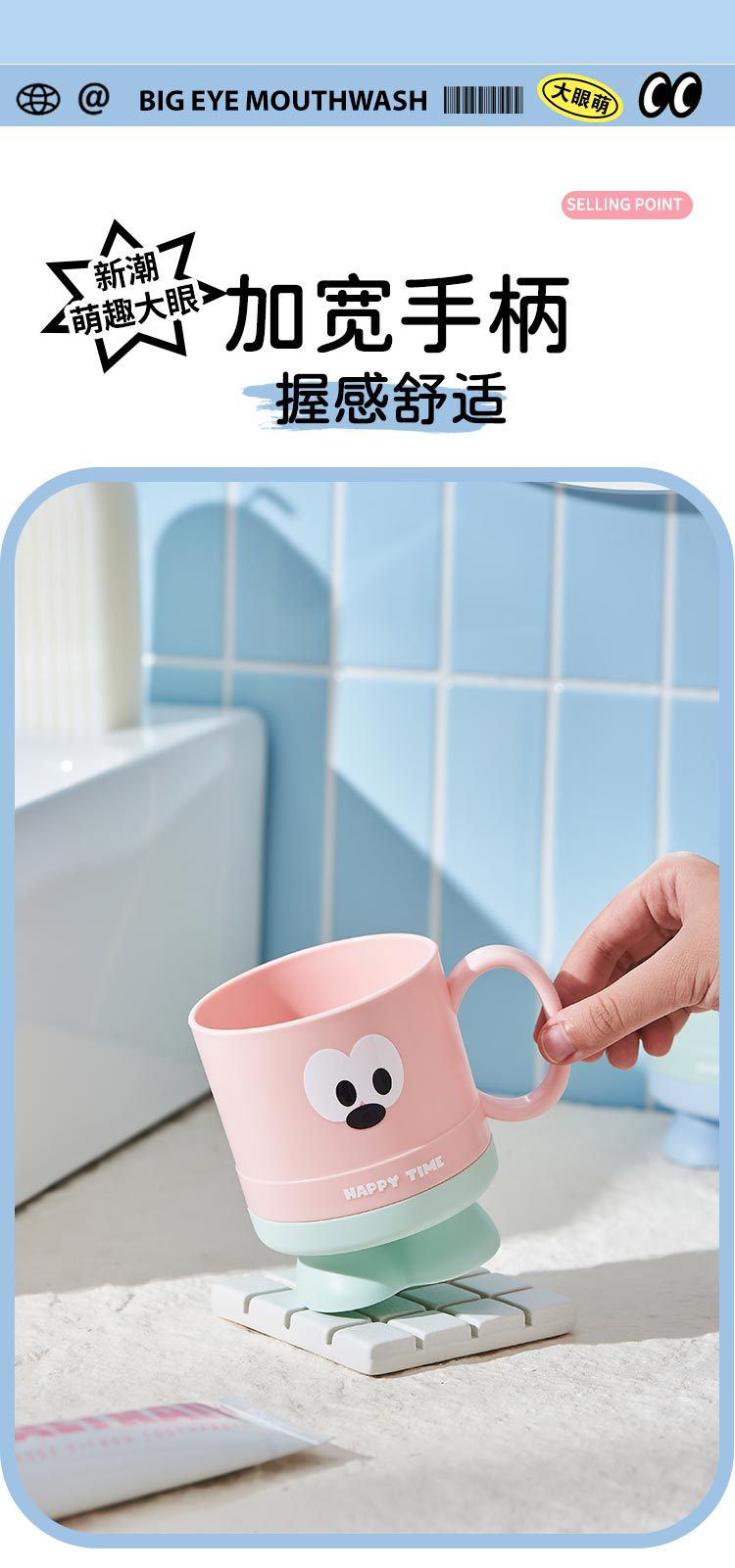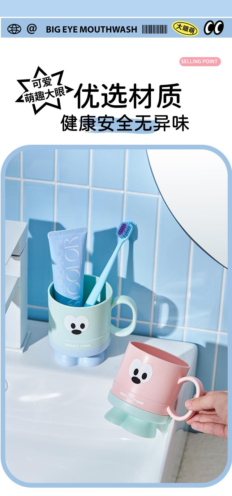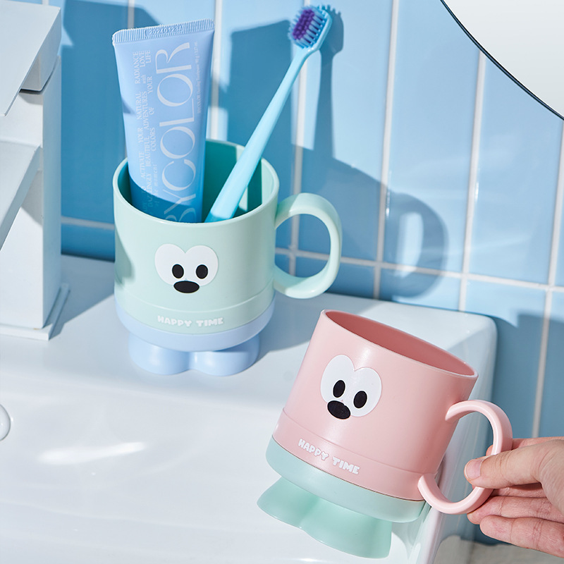 大眼仔高脚杯可爱学生刷牙杯子j家用儿童漱口杯洗漱情侣杯