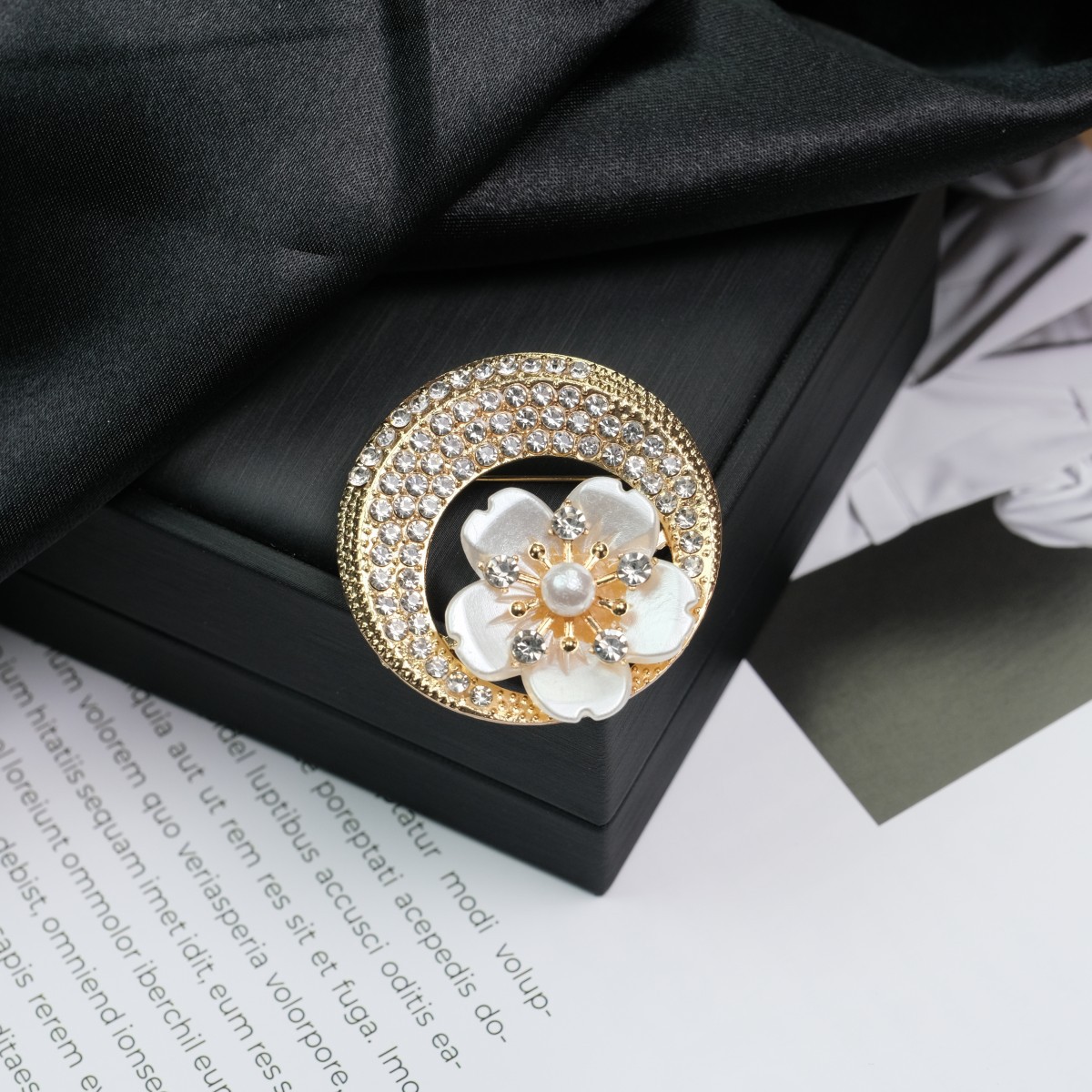 时尚复古花朵珍珠镶钻胸针百搭款高档天然彩色合金胸花衣饰别针扣