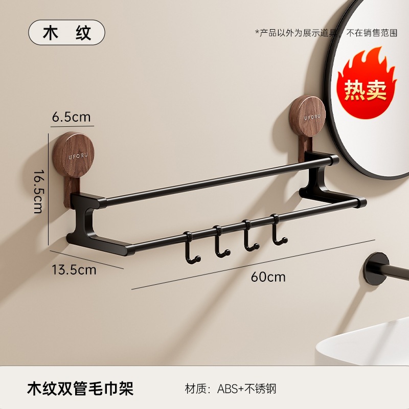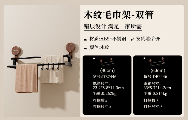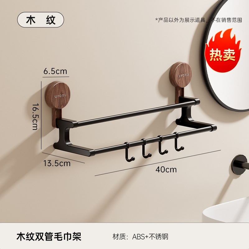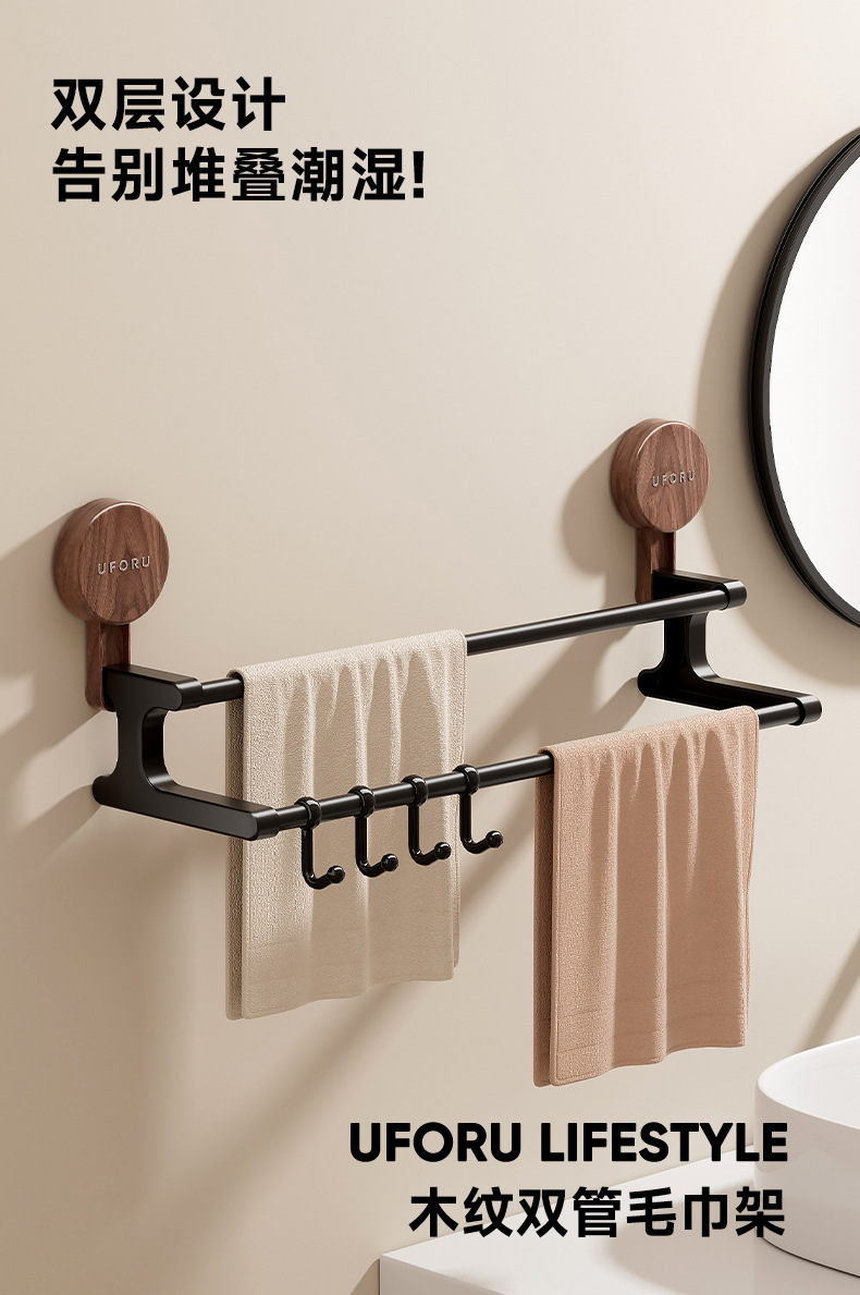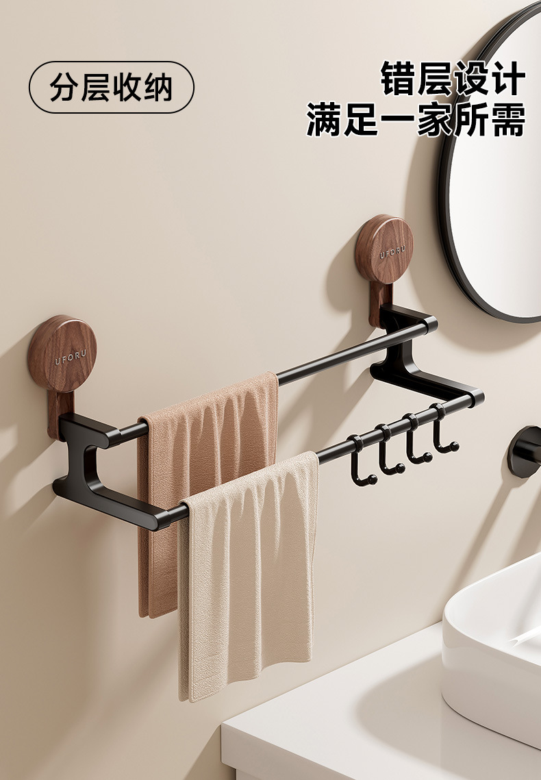 毛巾置物架家用卫生间免打孔挂毛巾杆浴室厕所墙上双层无痕毛巾架