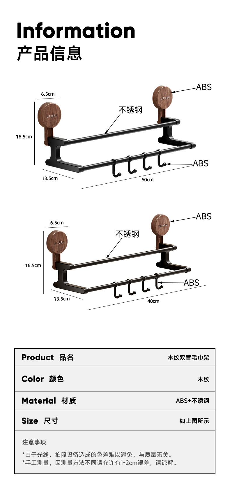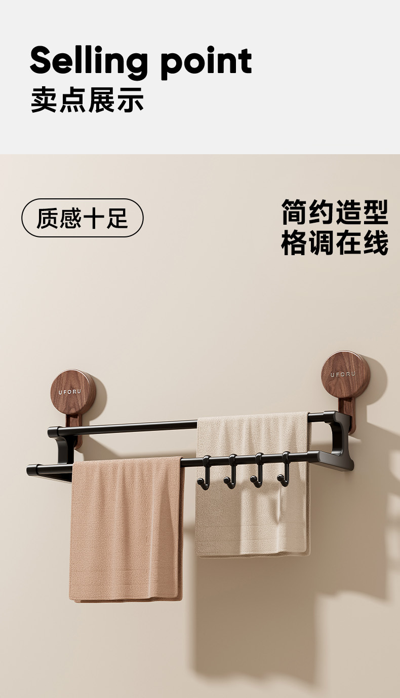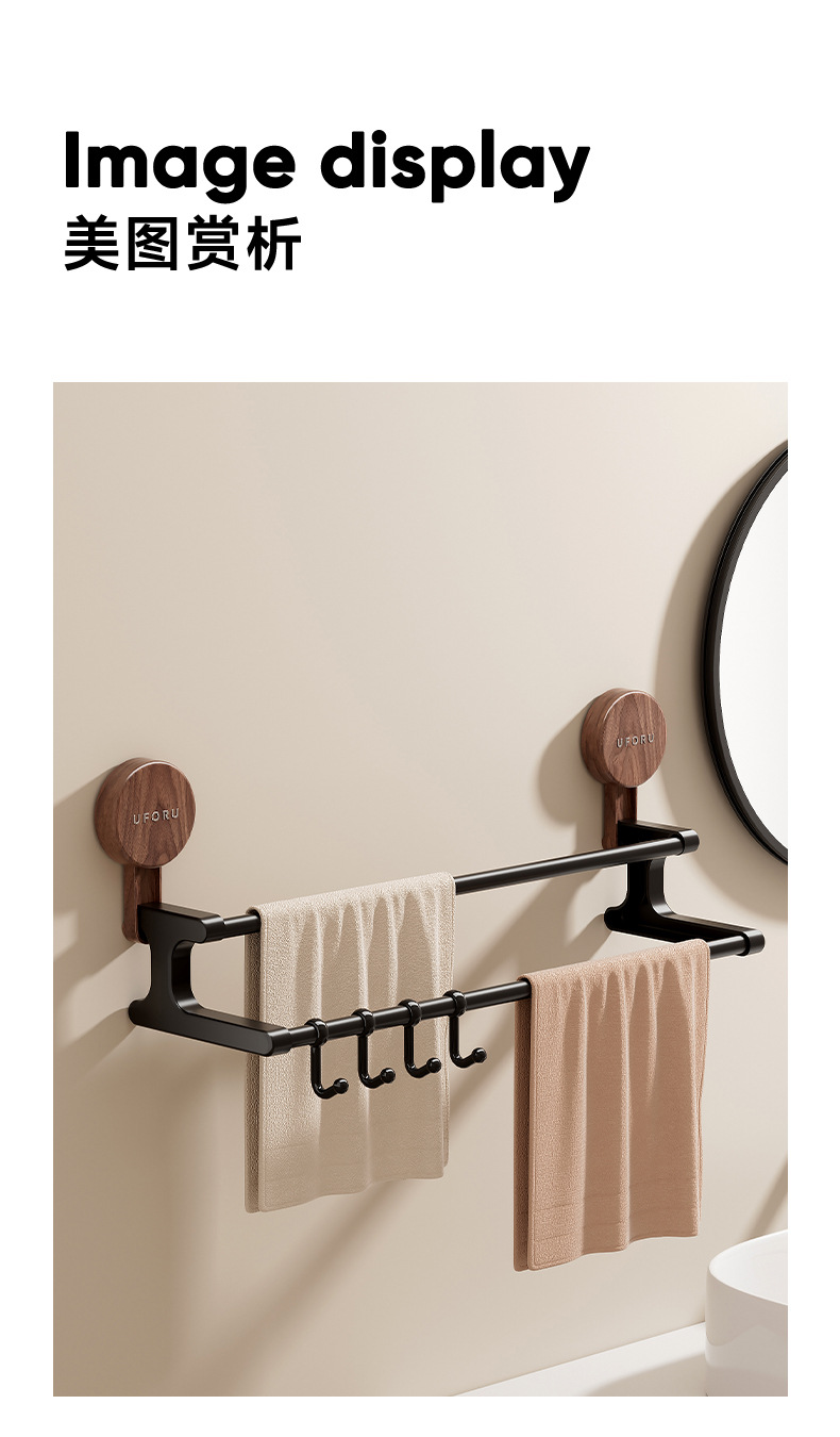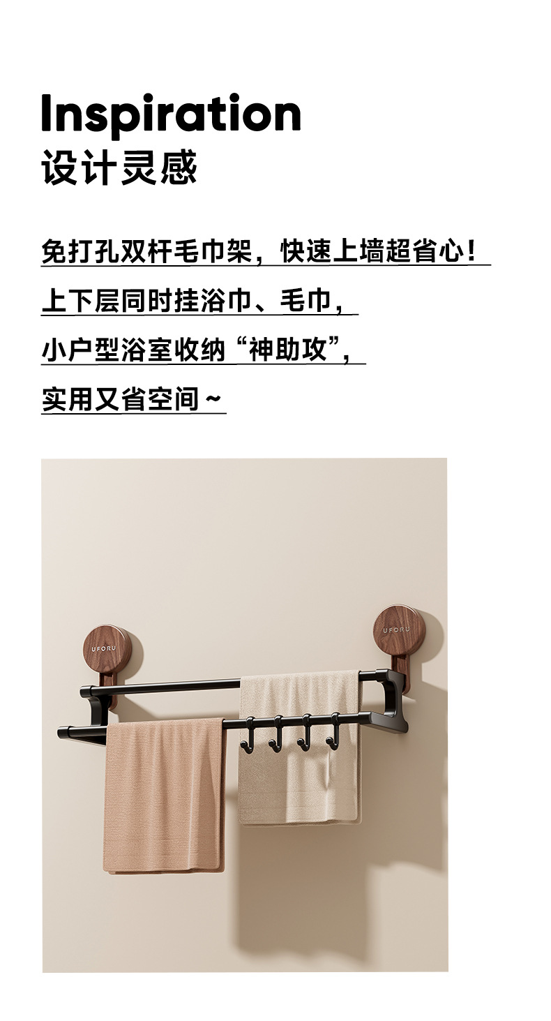 毛巾置物架家用卫生间免打孔挂毛巾杆浴室厕所墙上双层无痕毛巾架