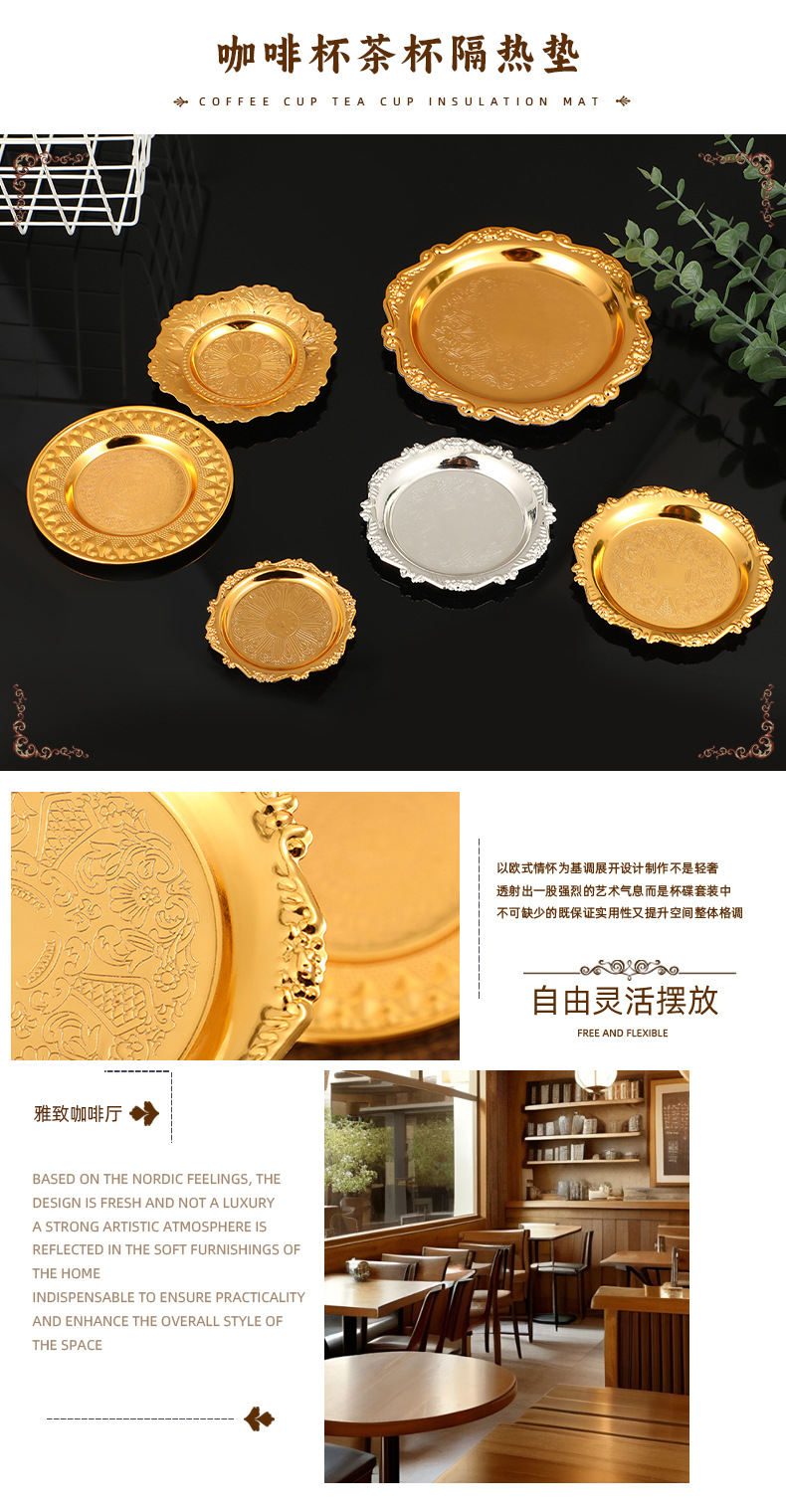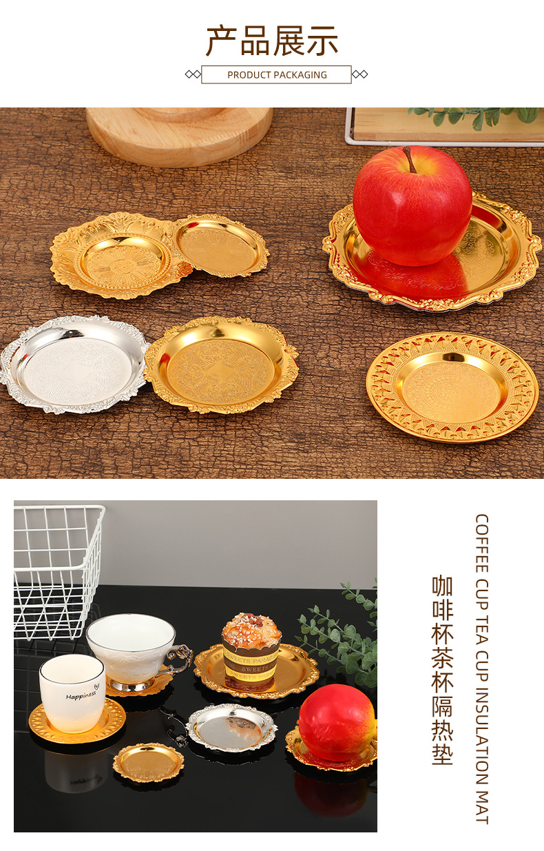 轻奢复古浮雕小托盘咖啡杯茶杯隔热垫家用零食果盘蛋糕甜点收纳盘