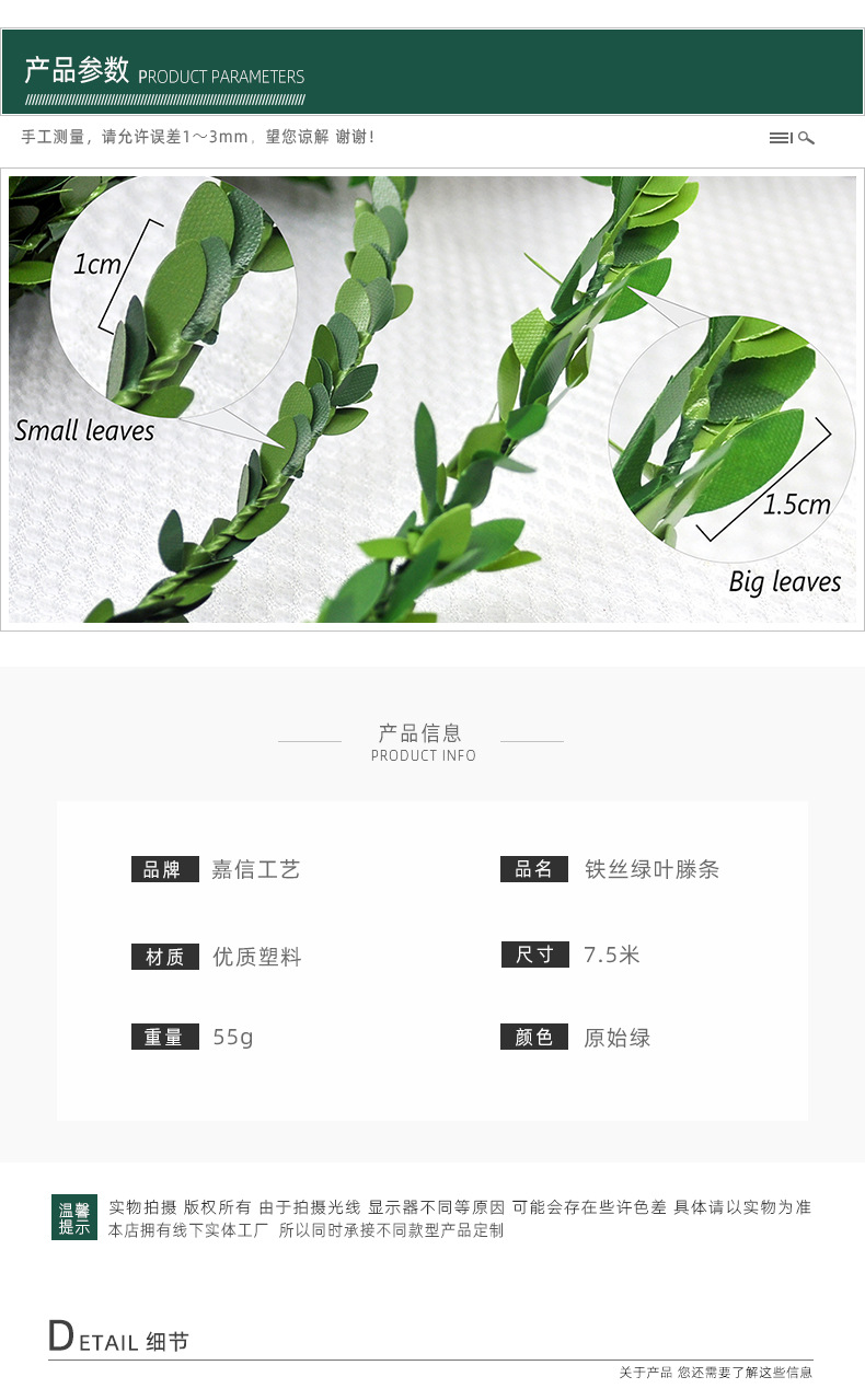 仿真人造常春藤假常春藤假藤青藤叶条吊顶悬挂花环植物墙壁装饰