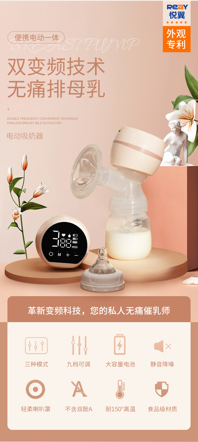 Reay一体式吸奶器单边电动按摩全自动大吸力集乳器无痛新款集奶器