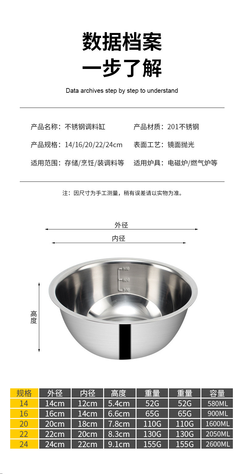 厂家批发外贸非洲东南亚不锈钢调料缸加厚多功能大盆刻度不锈钢盆