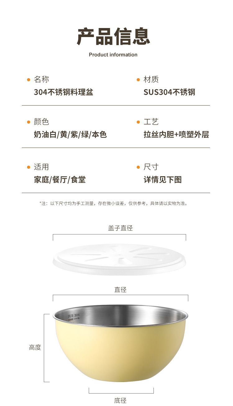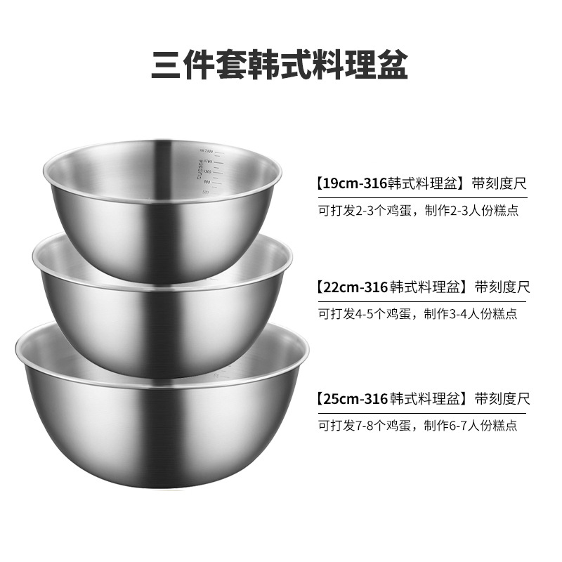 316不锈钢沙拉盆家用厨房料理盆带刻度和面揉面盆打蛋搅拌烘焙盆