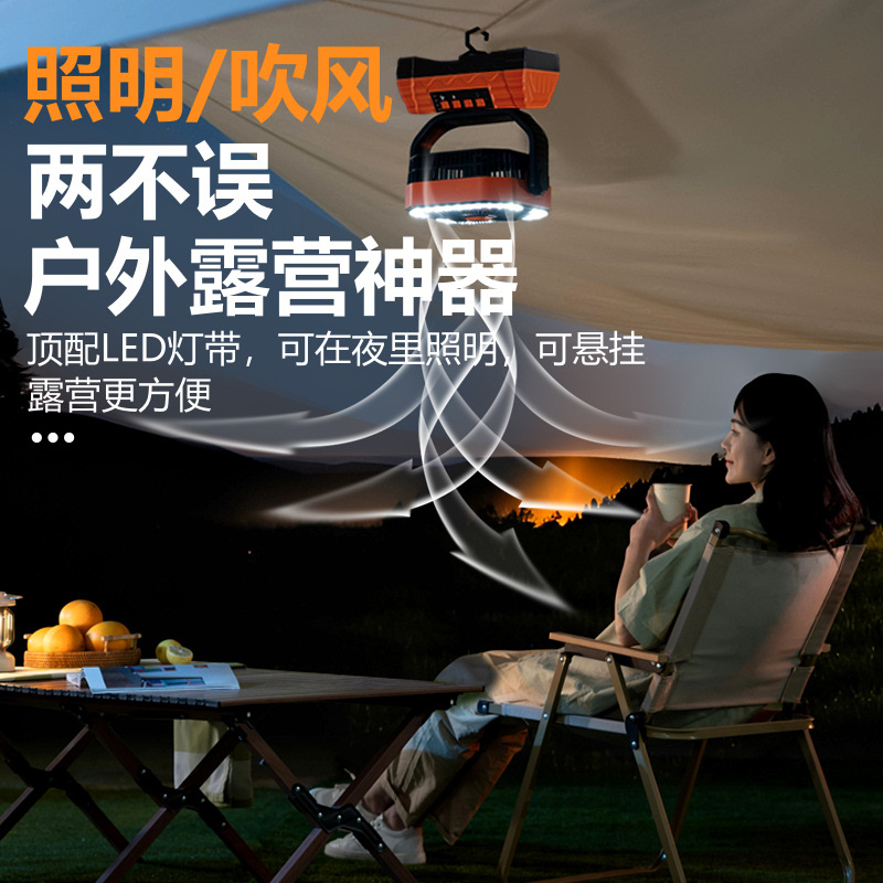 跨境新品户外风扇野营帐篷usb风扇便携式大风力充电露营风扇照明
