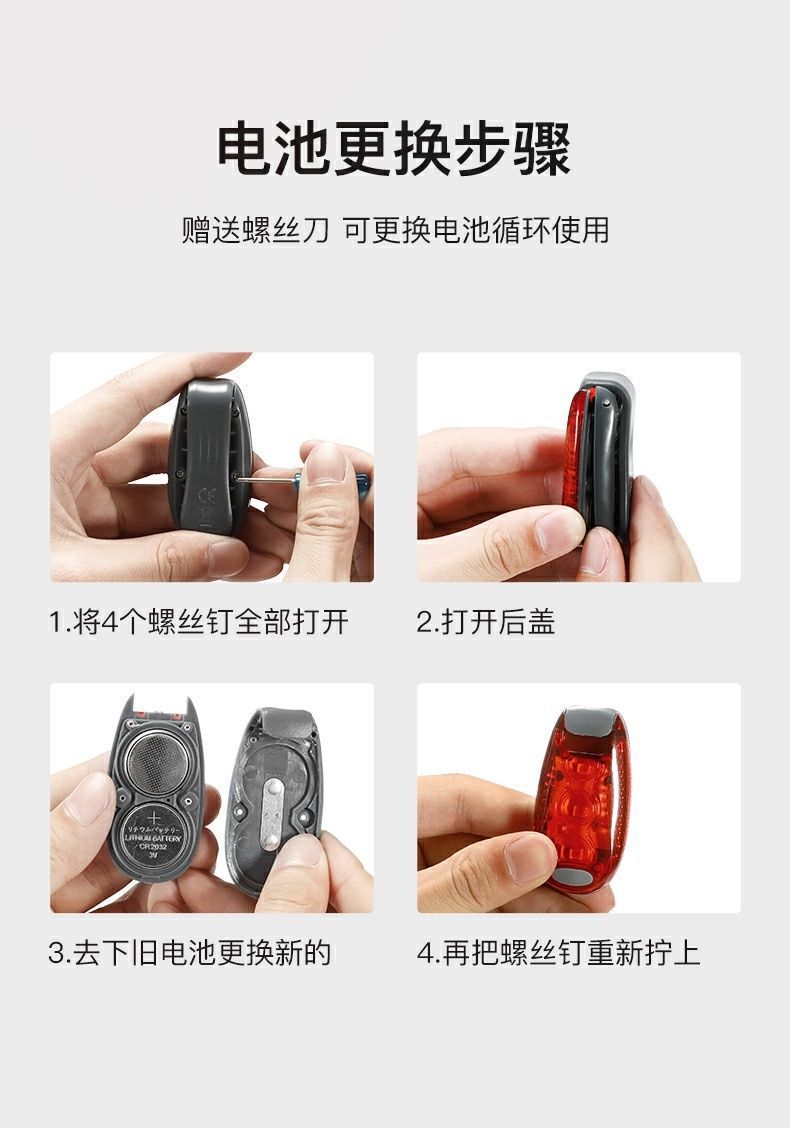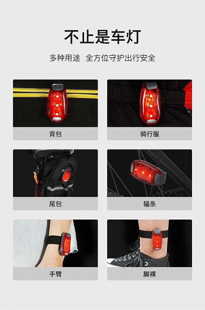 自行车迷你尾灯LED户外夜跑防水臂灯背夹式头盔灯夜间警示背包灯