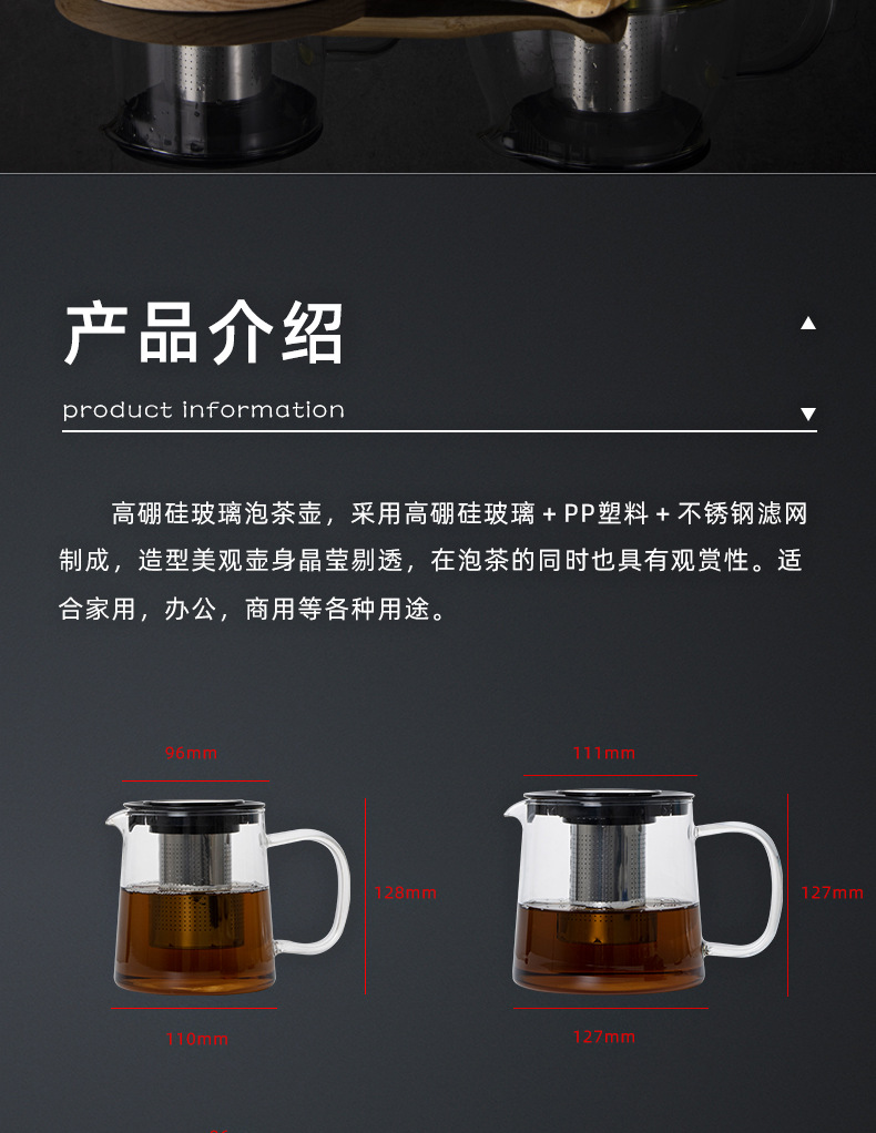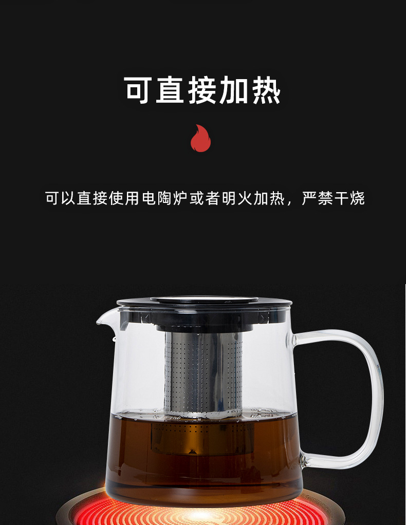 不锈钢过滤网泡茶壶家用直火加热耐高温煮茶壶中式风加厚玻璃茶具