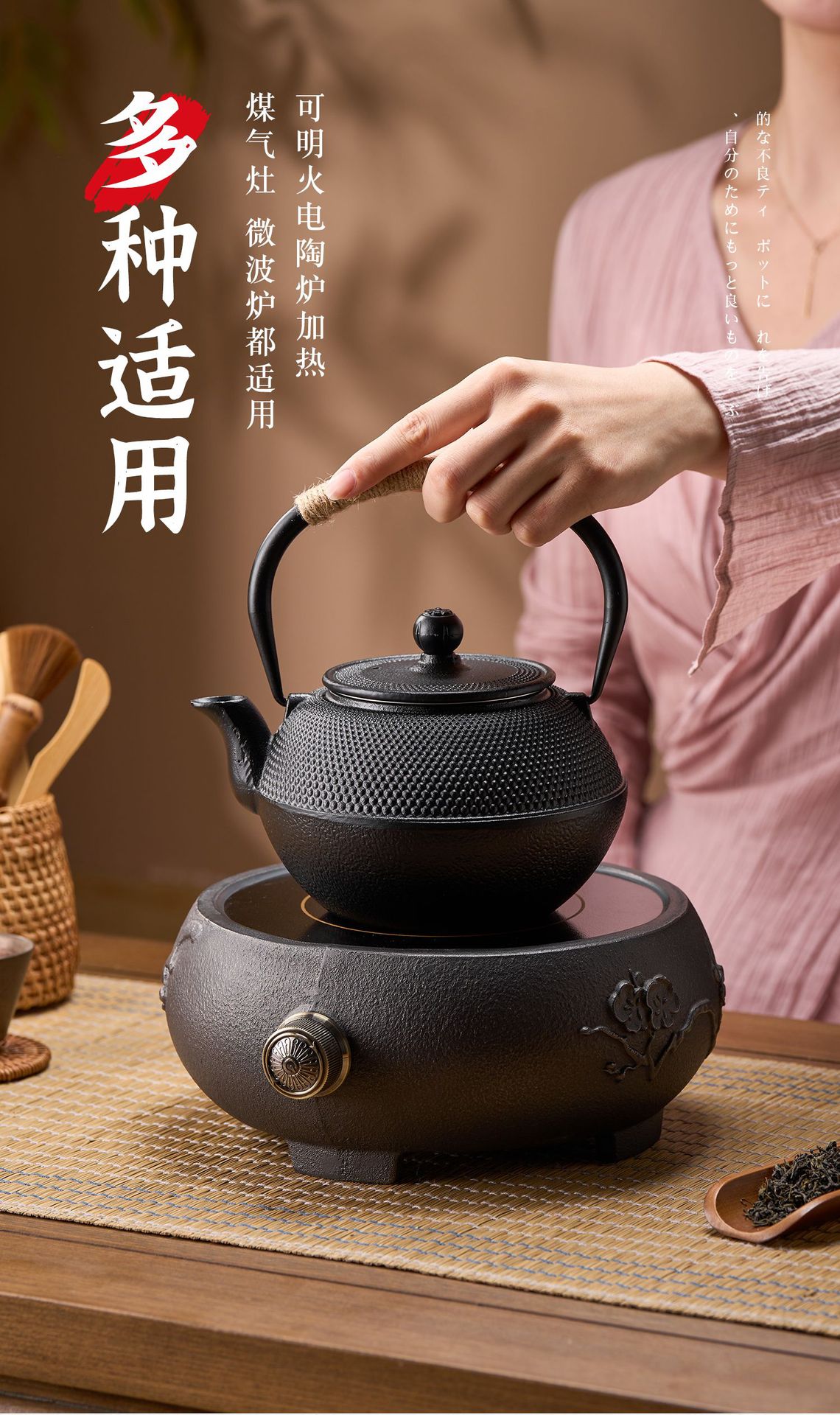 铸铁壶烧水壶日式老铁壶家用养生壶泡茶壶户外壶铁壶围炉煮茶的炉