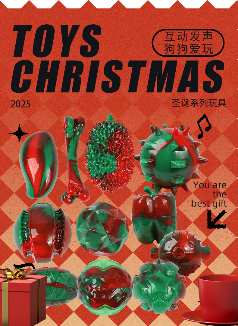 圣诞新款狗狗玩具自嗨耐咬磨牙宠物发声玩具用品圣诞礼品跨境爆款