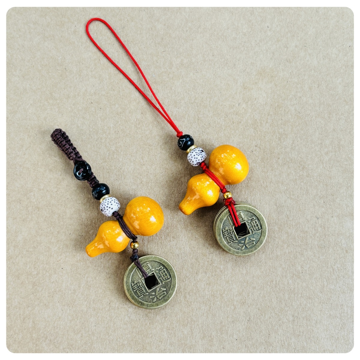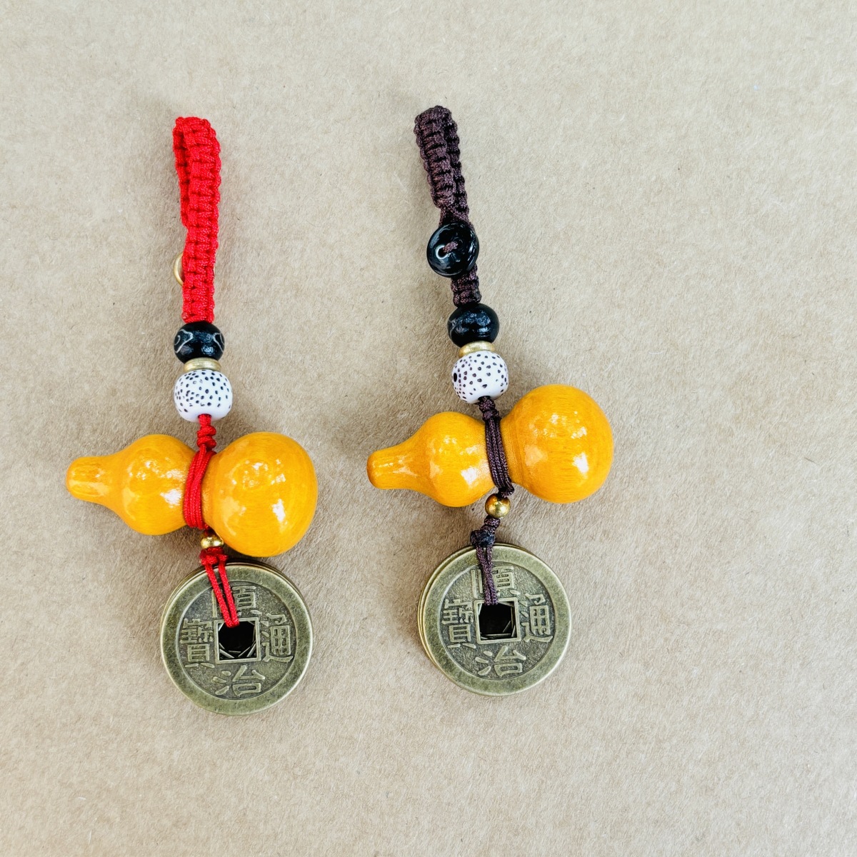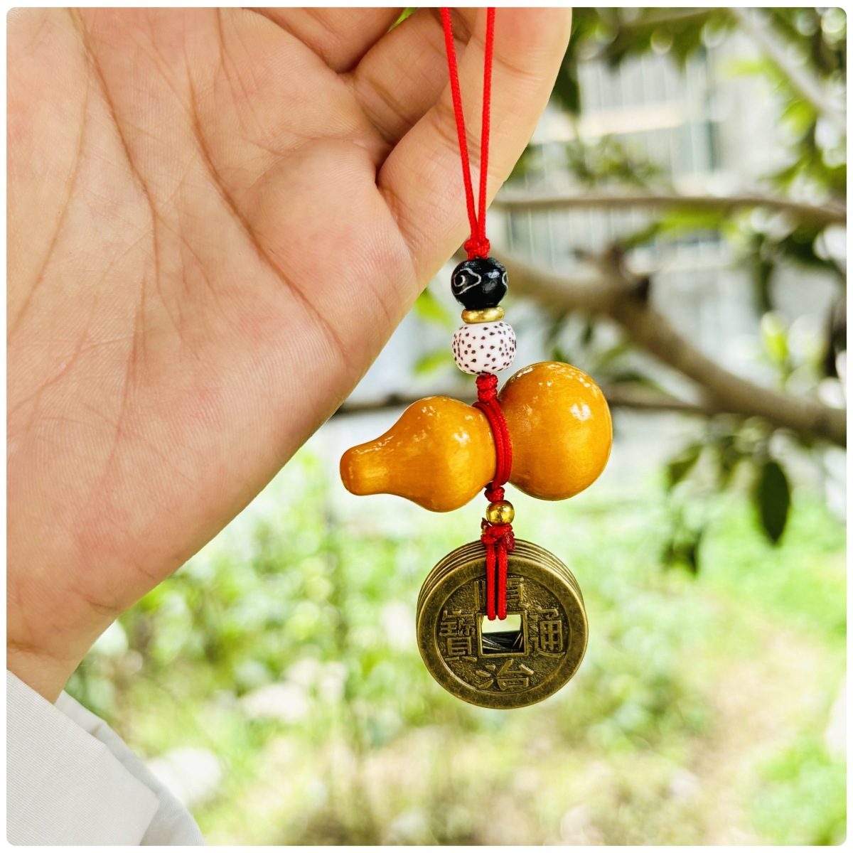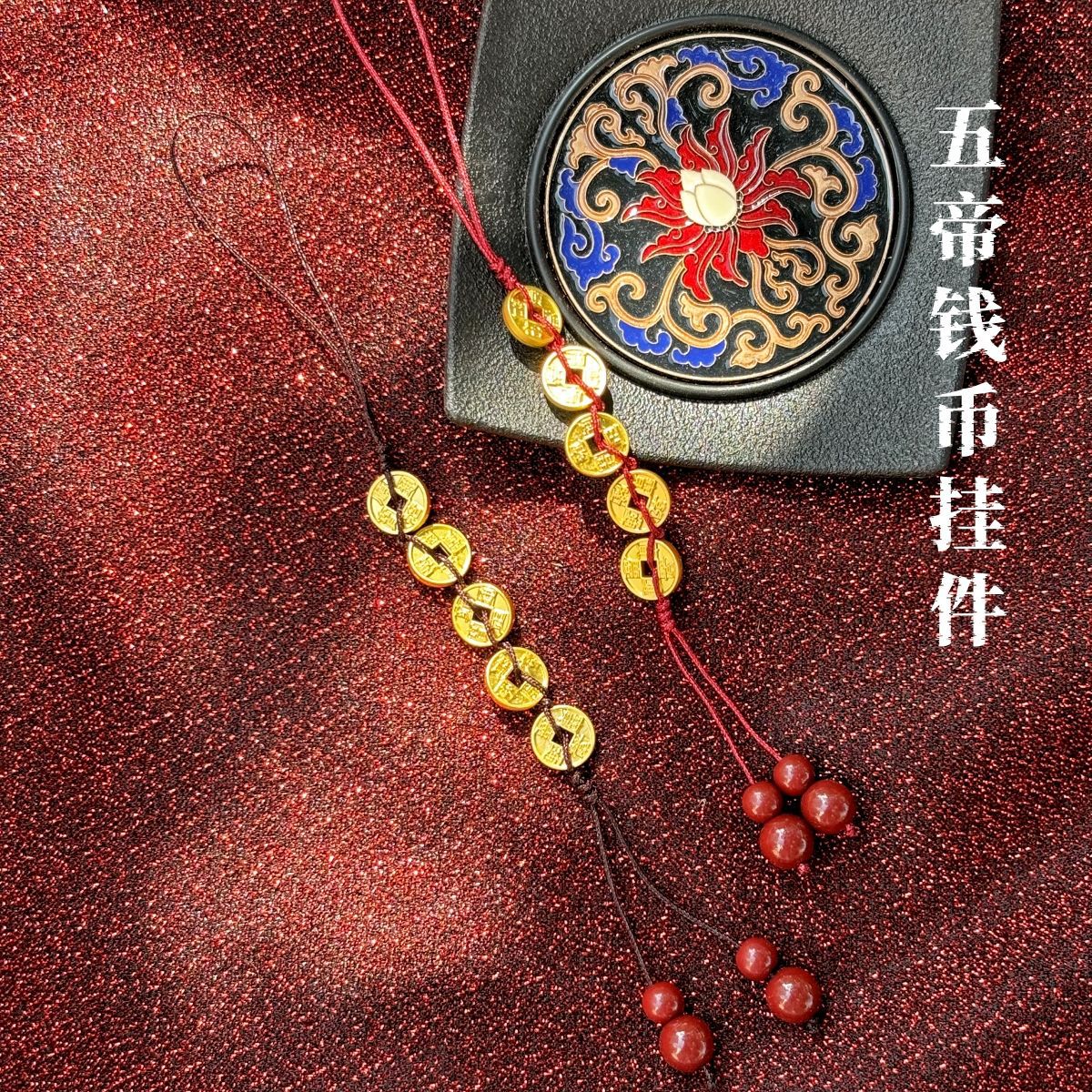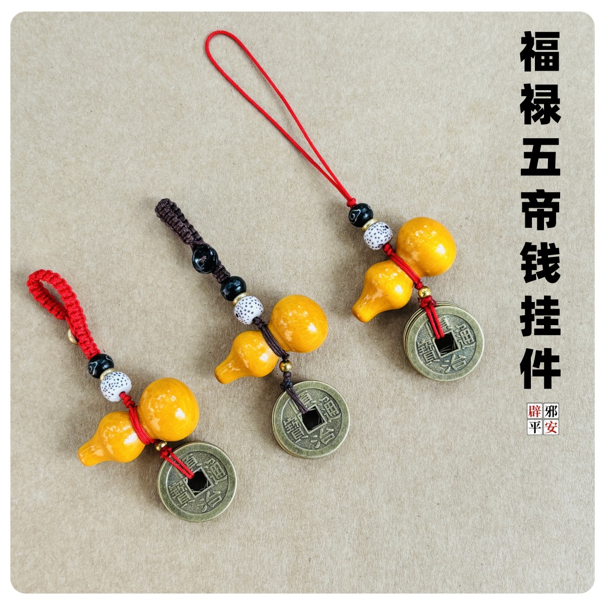 纯黄铜五帝钱门对门挂件葫芦红黄绳压门槛铜钱家居六帝钱客厅摆件
