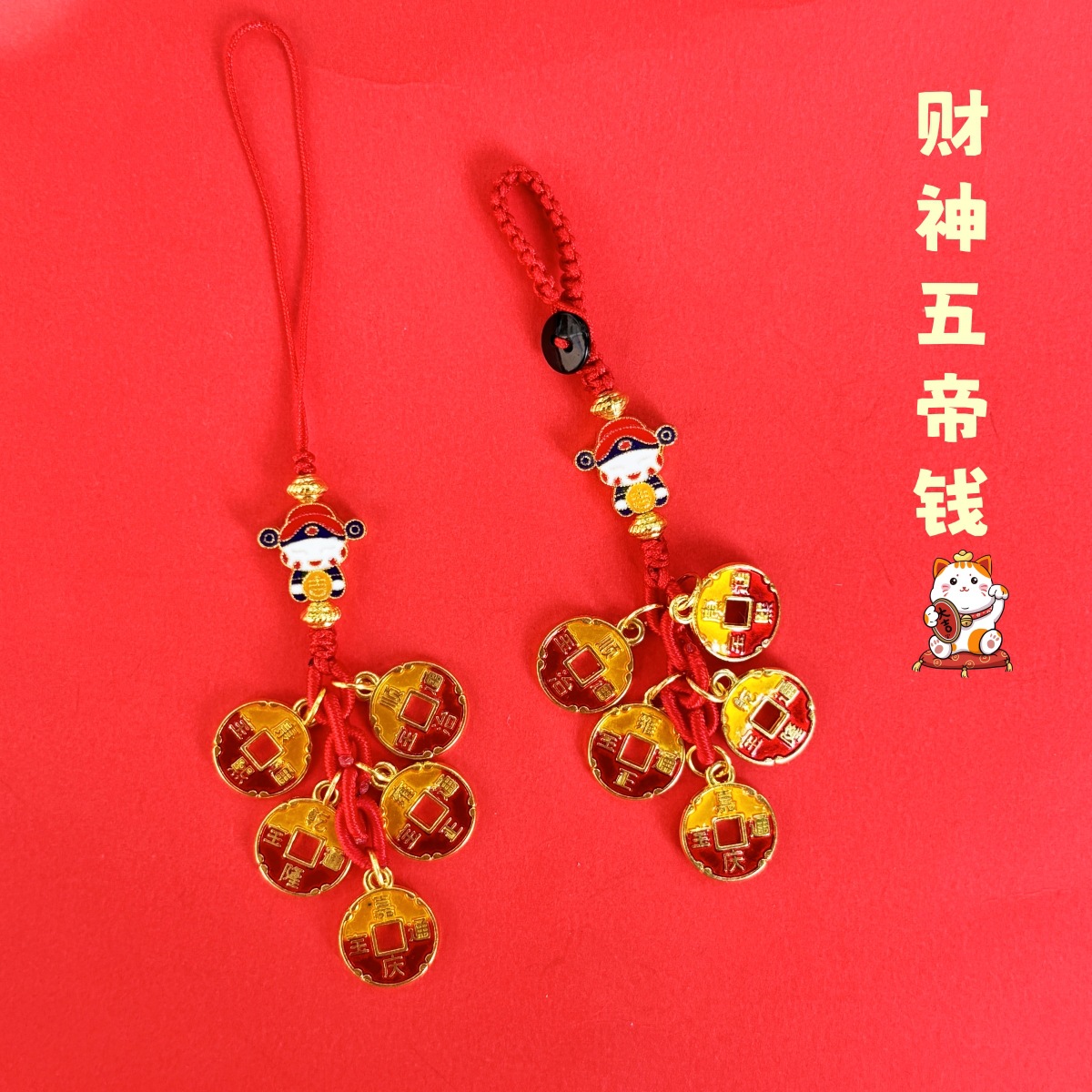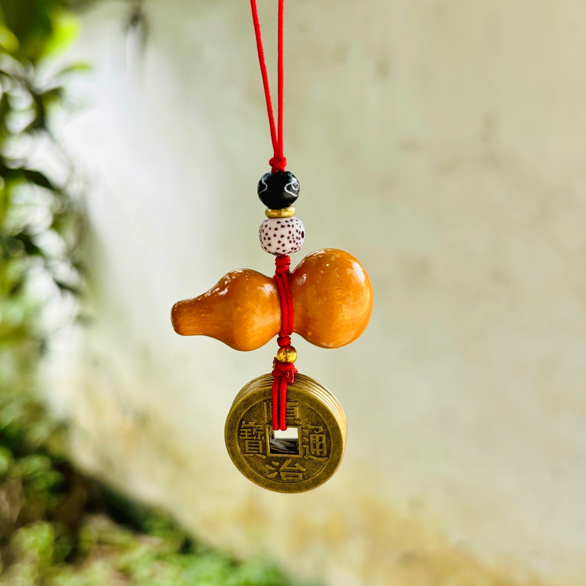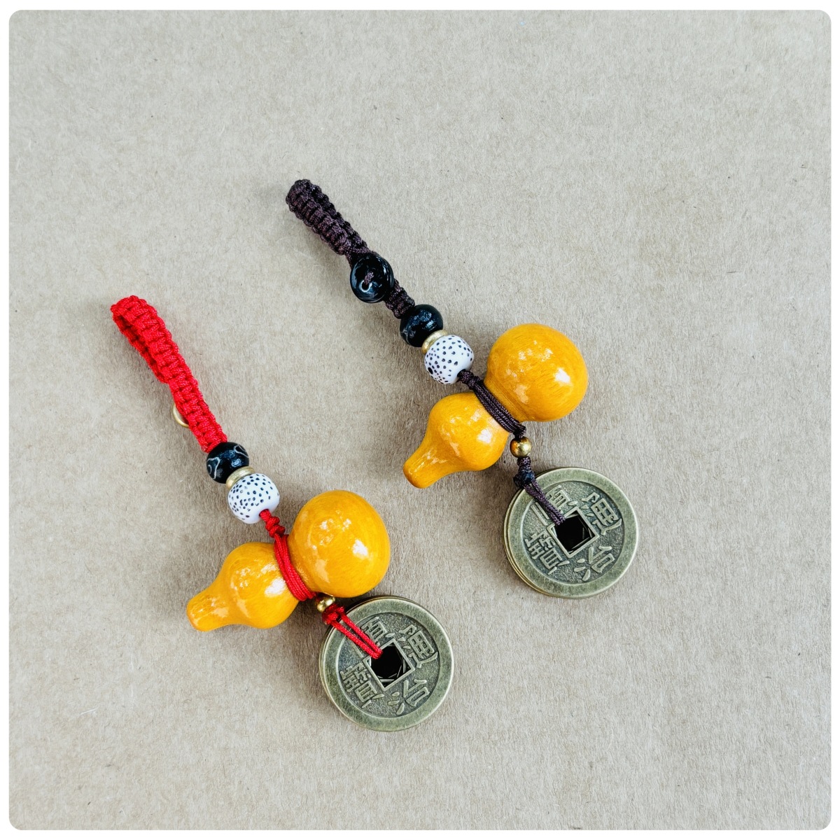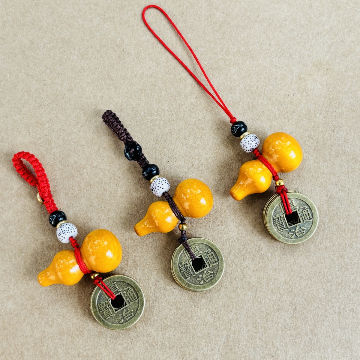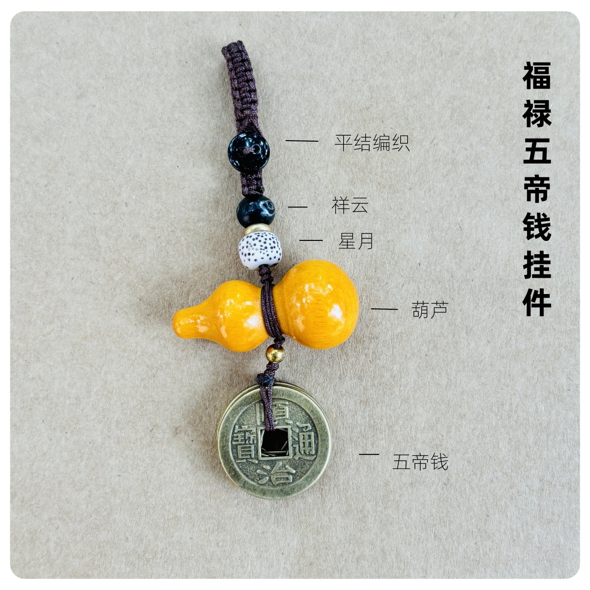 纯黄铜五帝钱门对门挂件葫芦红黄绳压门槛铜钱家居六帝钱客厅摆件