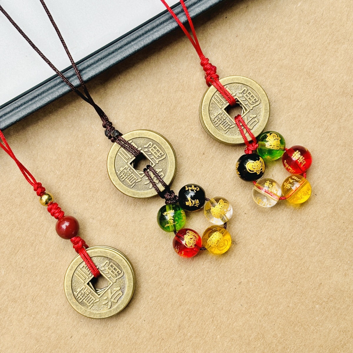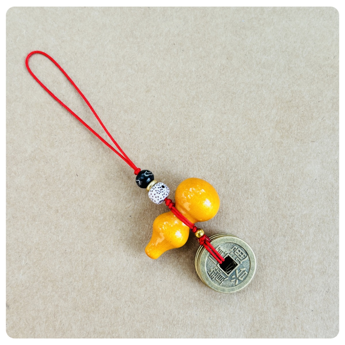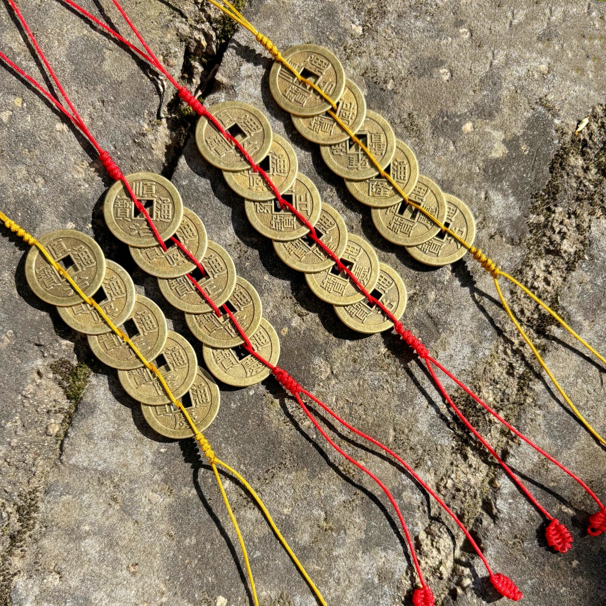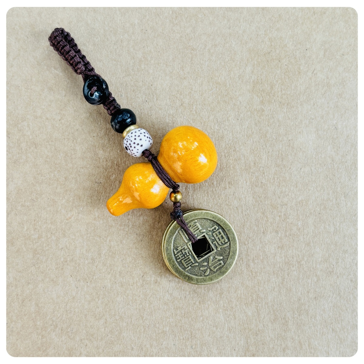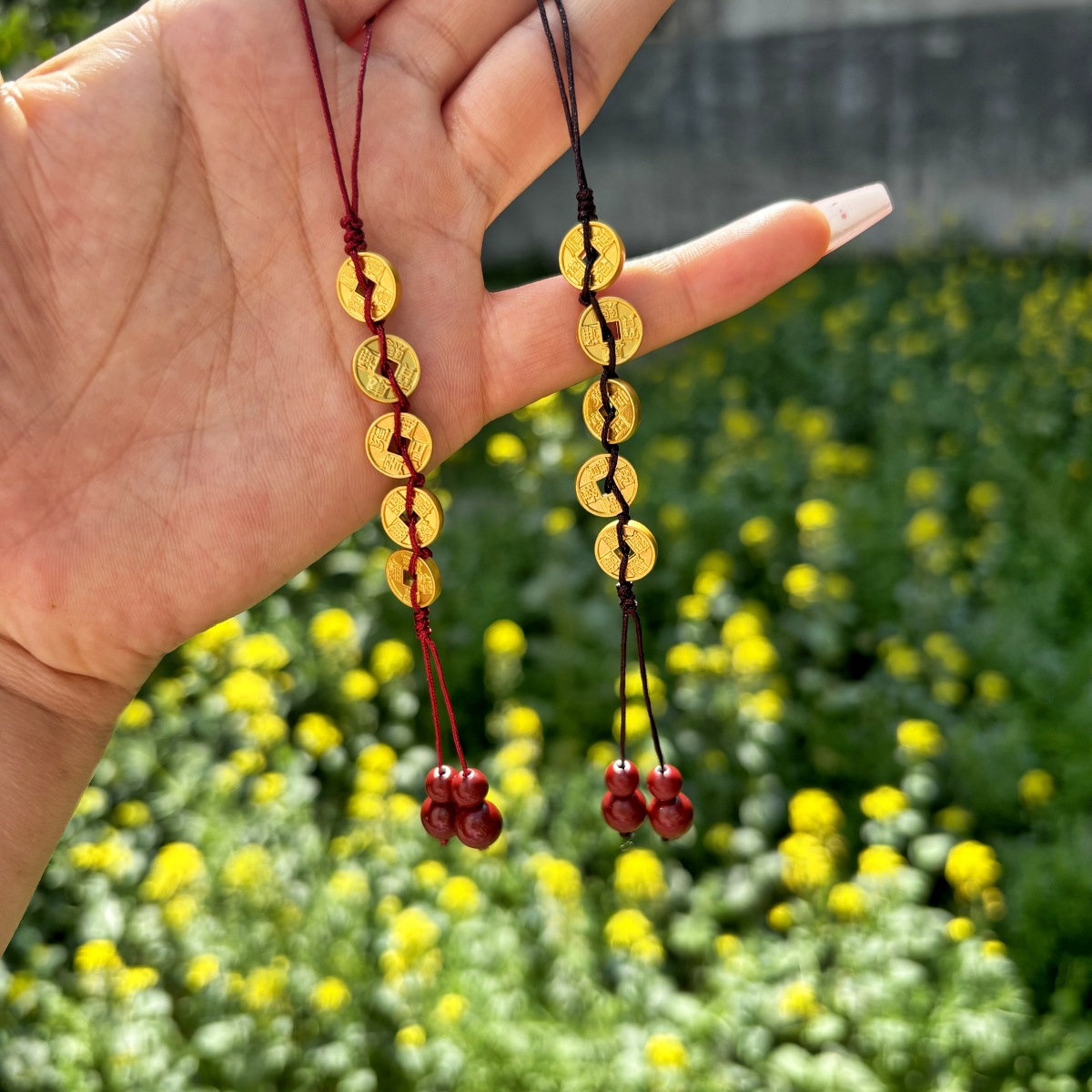 纯黄铜五帝钱门对门挂件葫芦红黄绳压门槛铜钱家居六帝钱客厅摆件