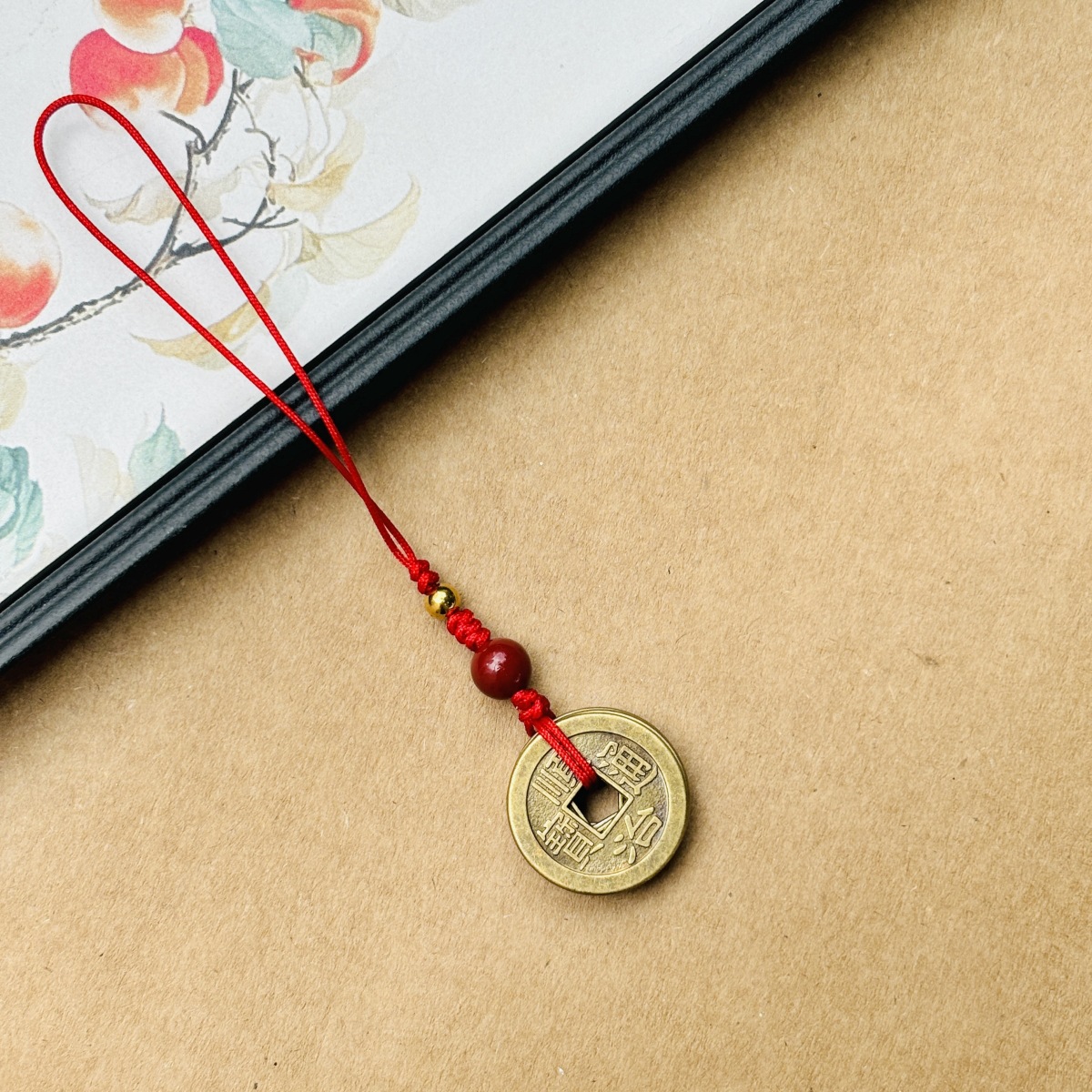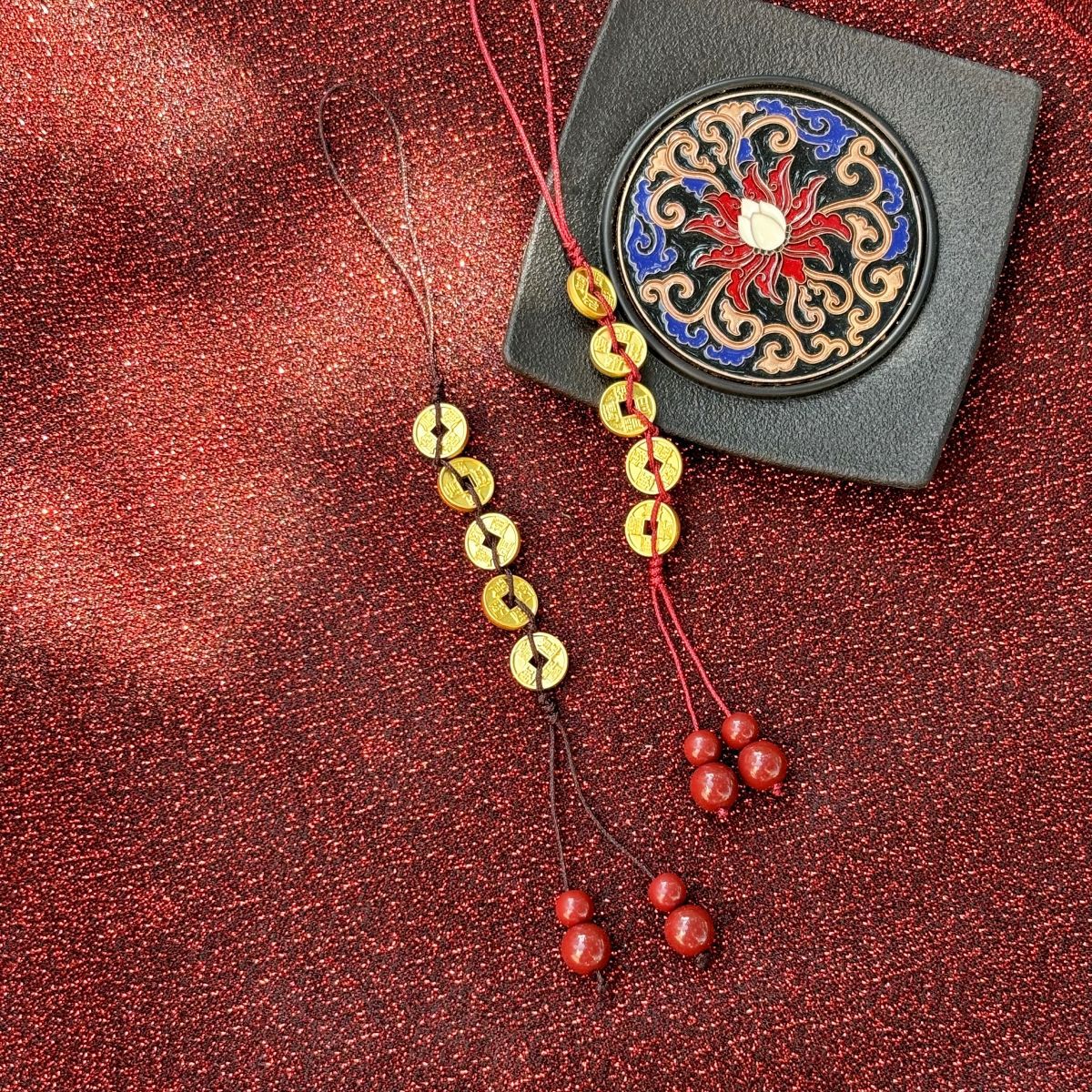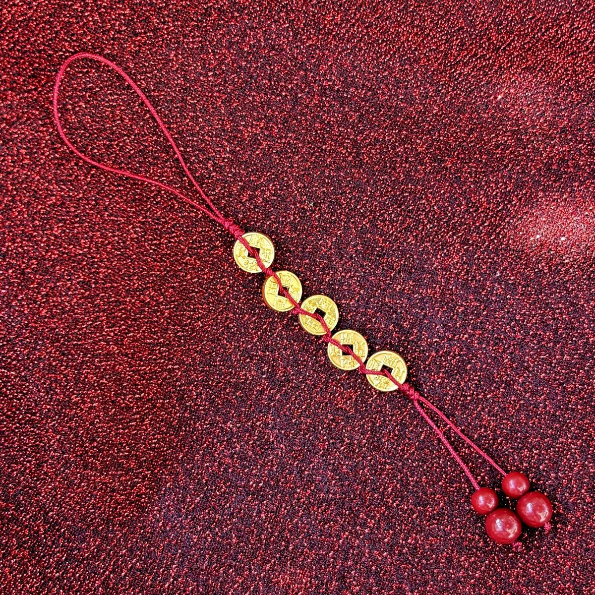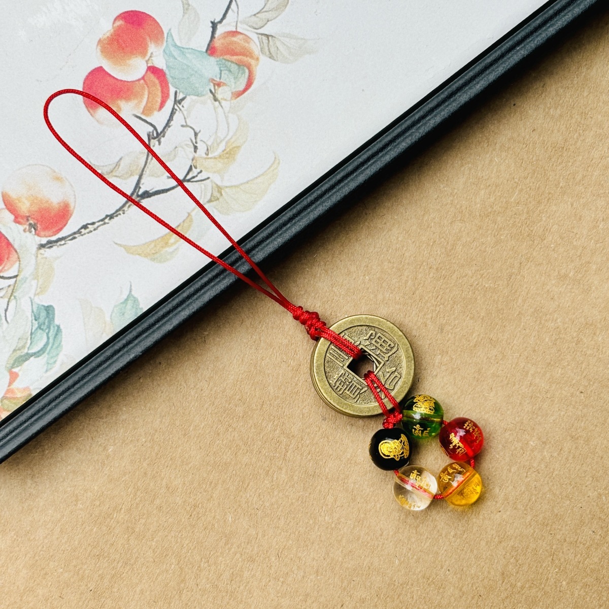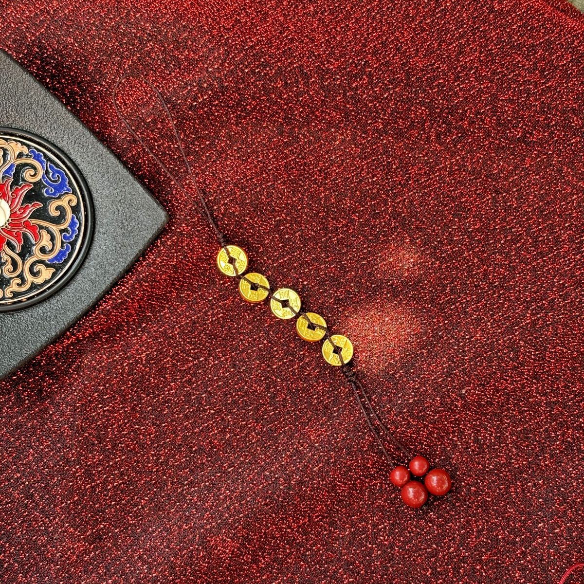 纯黄铜五帝钱门对门挂件葫芦红黄绳压门槛铜钱家居六帝钱客厅摆件