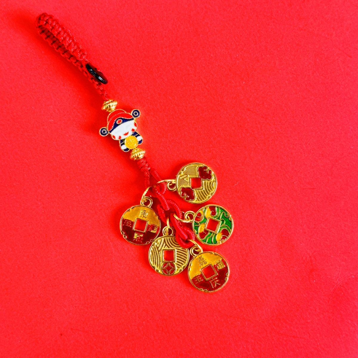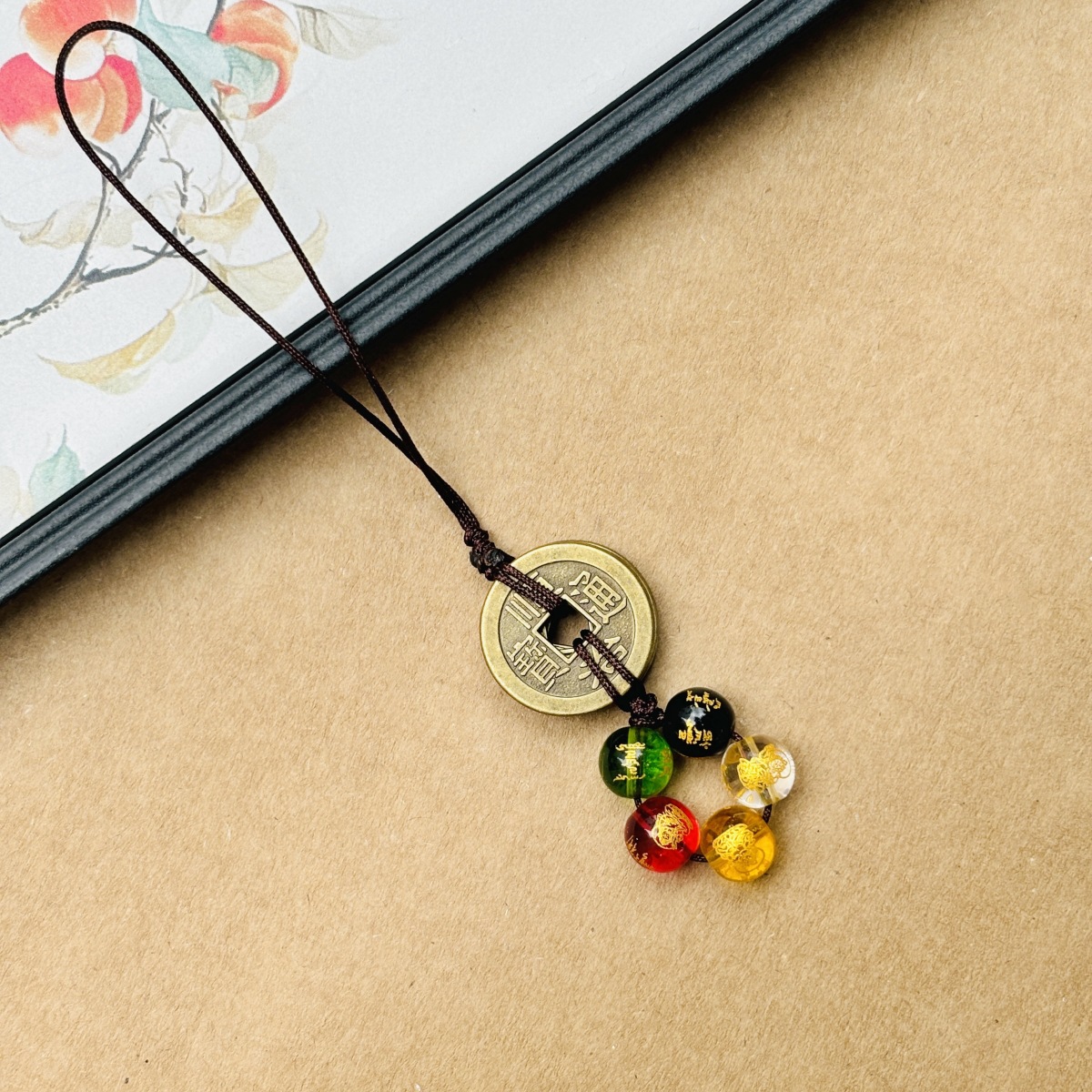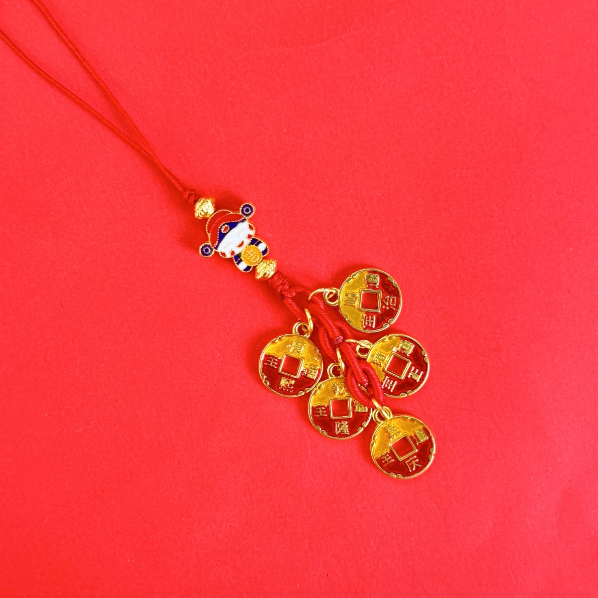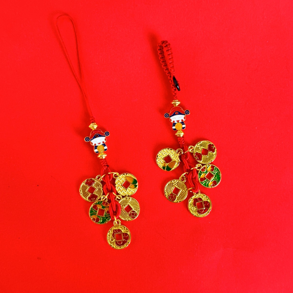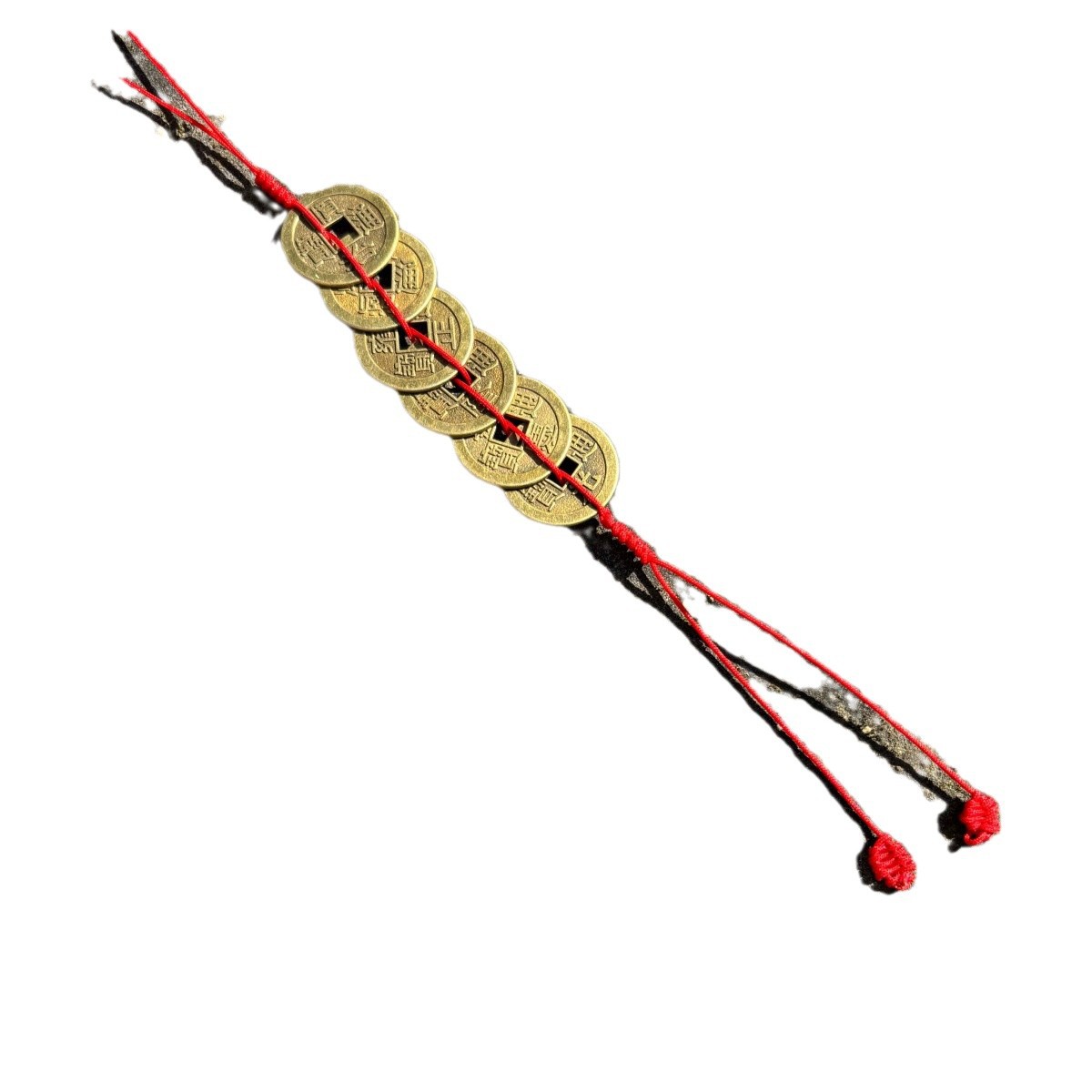 纯黄铜五帝钱门对门挂件葫芦红黄绳压门槛铜钱家居六帝钱客厅摆件