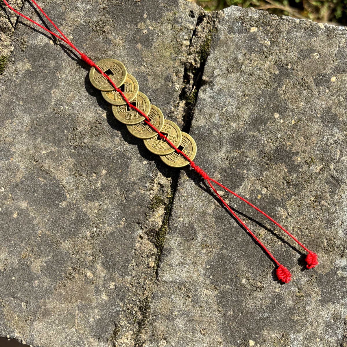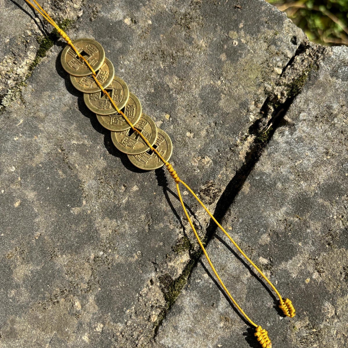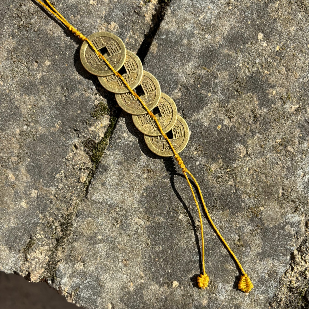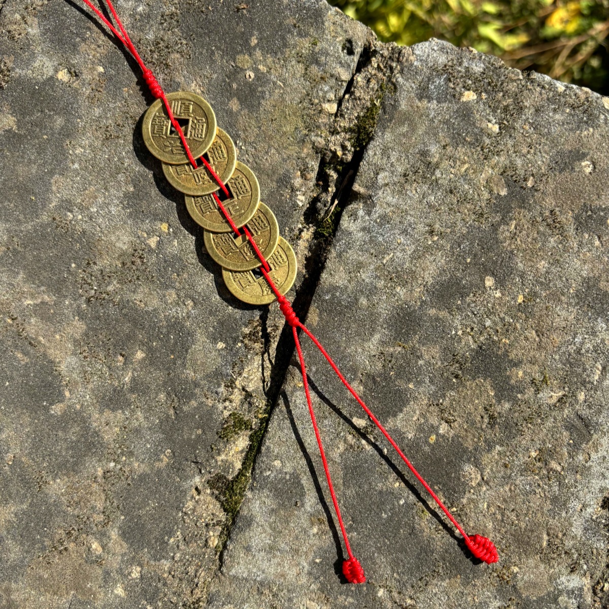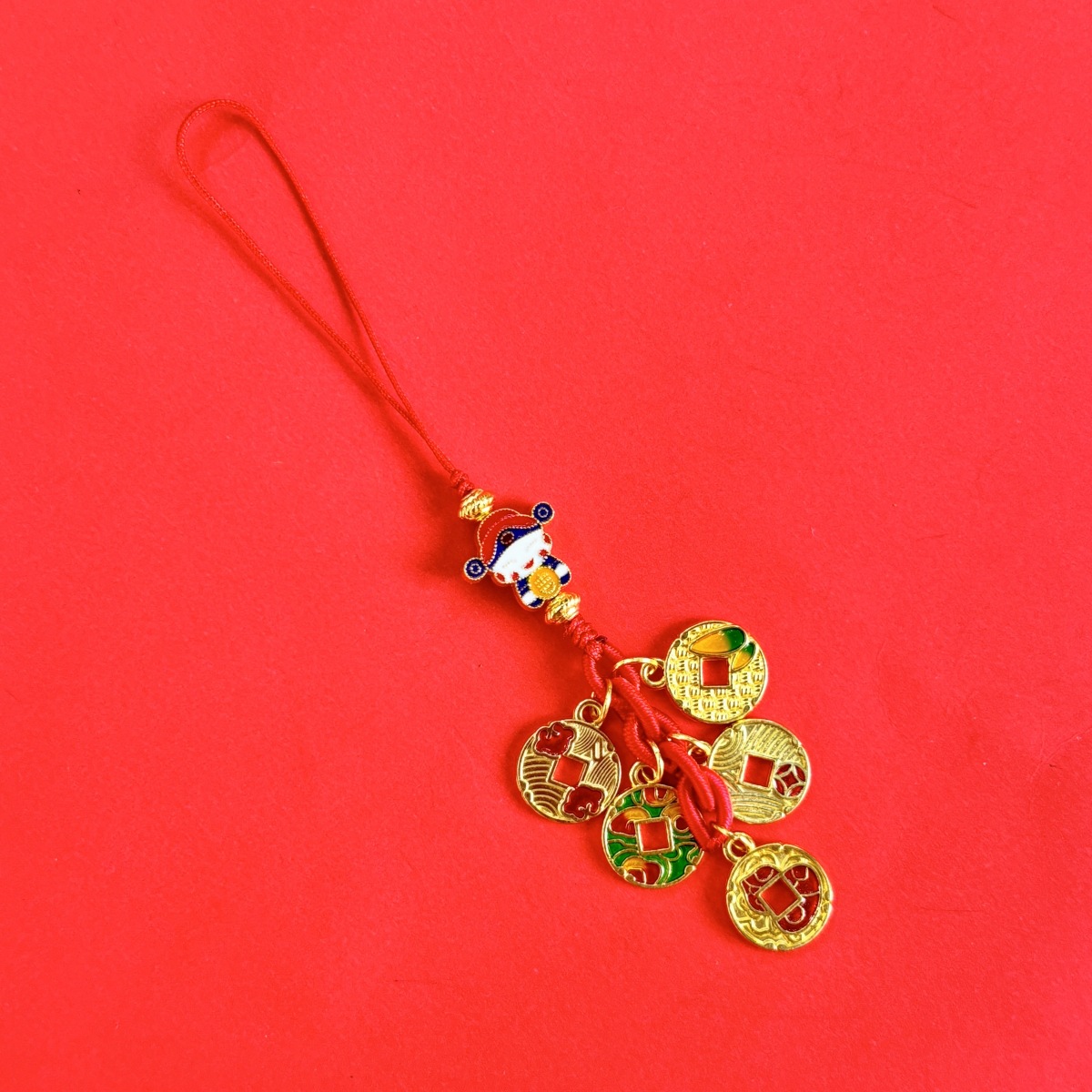 纯黄铜五帝钱门对门挂件葫芦红黄绳压门槛铜钱家居六帝钱客厅摆件