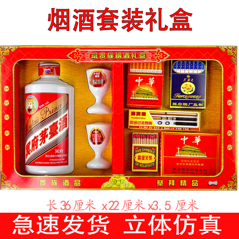冥府纸扎烟酒套装阴间冥用品三五七周年祭祀冥币黄纸上坟纸钱