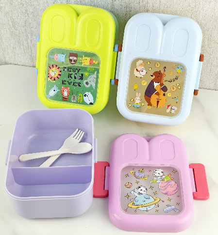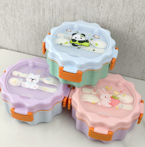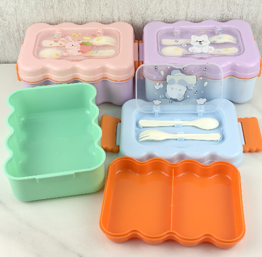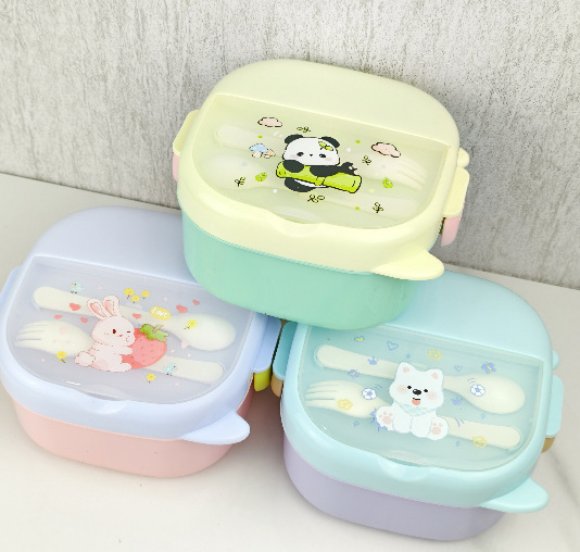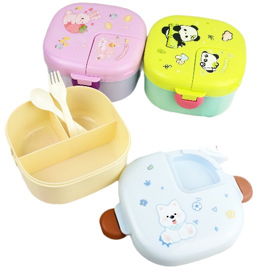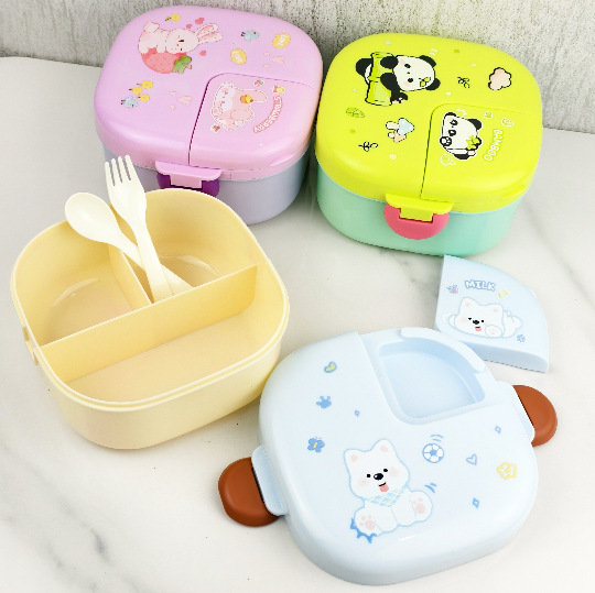 新款卡通萌趣便当盒学生上班族微波炉分格饭盒带餐具午餐盒调料盒