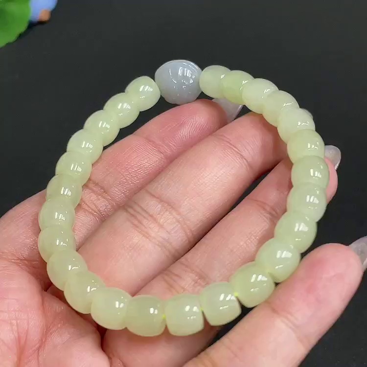 和田玉手串 卡 8 mm左右 货品总重约25.2g