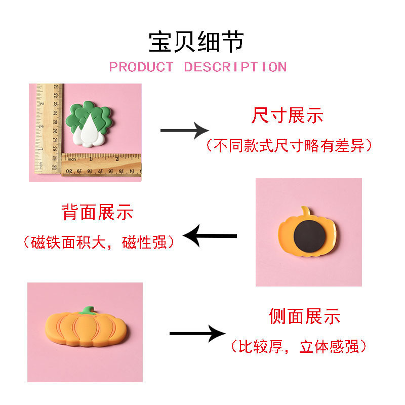 卡通蔬菜创意PVC软胶磁贴儿童diy早教贴磁力贴批发冰箱贴磁铁现货
