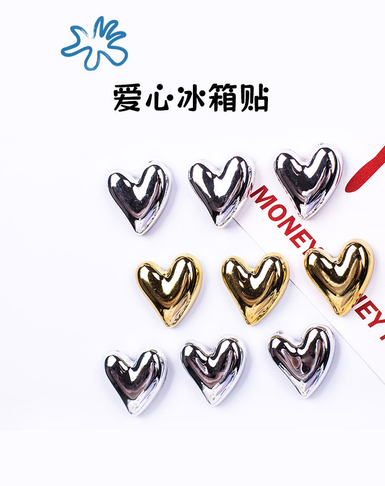 创意电镀爱心亮面复古彩色冰箱贴照片墙拍立得磁贴ins留言板装饰