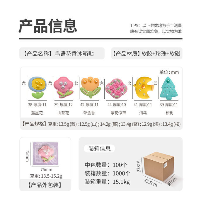 严选创意冰箱贴diy花鸟装饰磁贴软胶磁铁强吸文艺ins文创磁钉批发