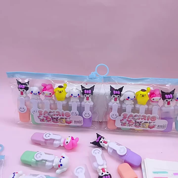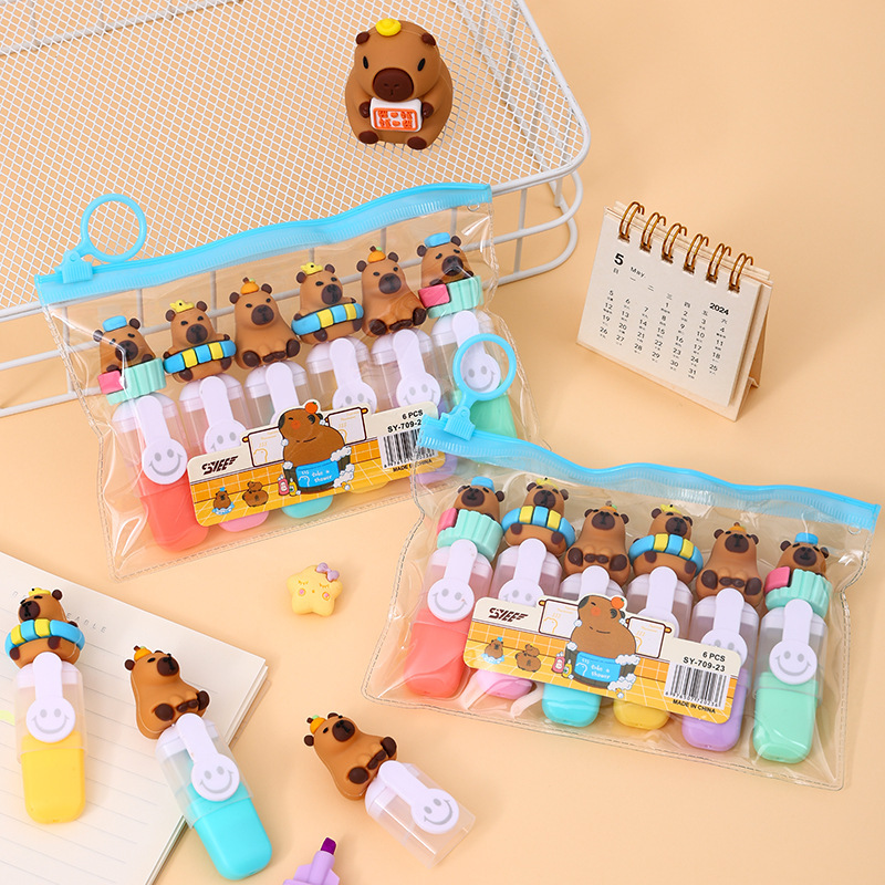 卡皮巴拉三丽鸥6支袋装迷你荧光笔卡通造型6色彩色手帐笔涂鸦彩笔