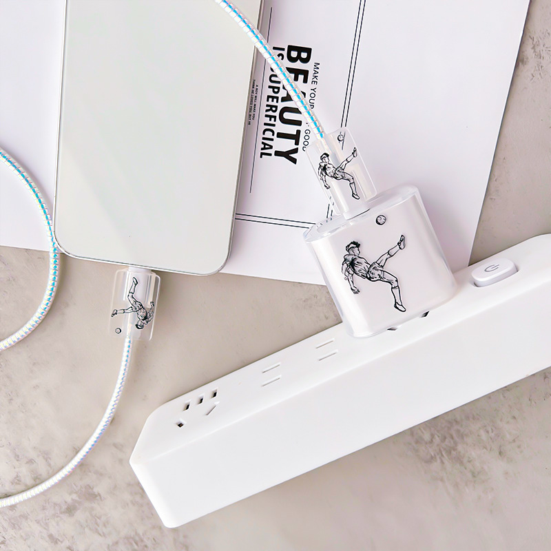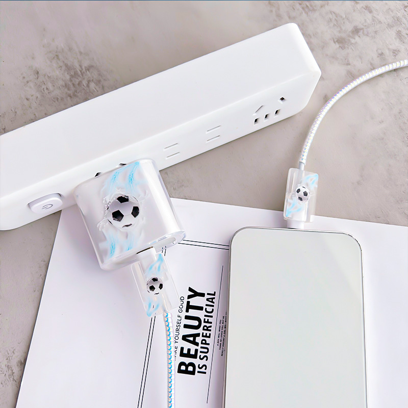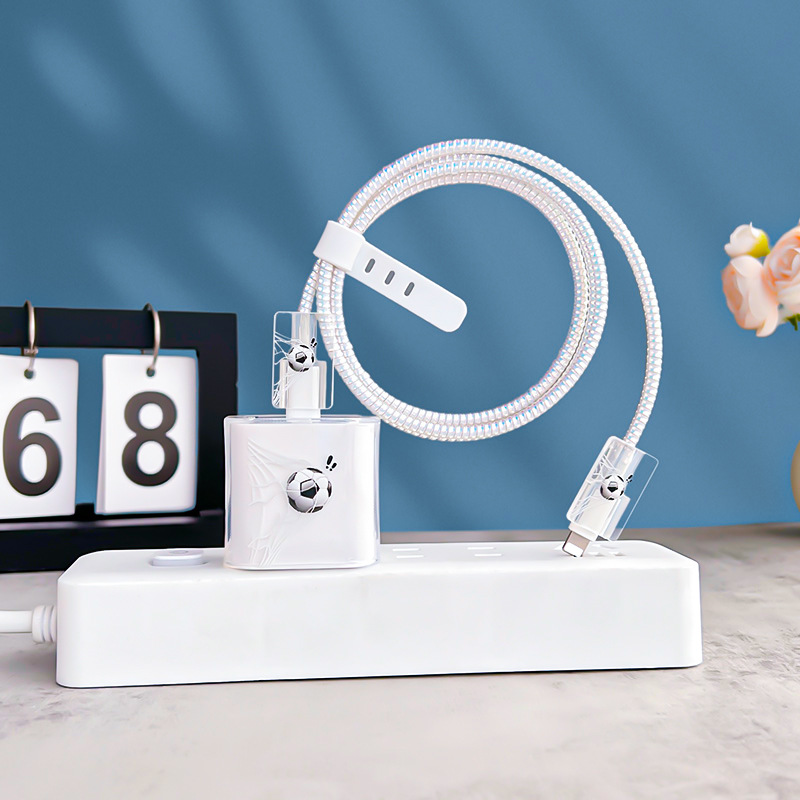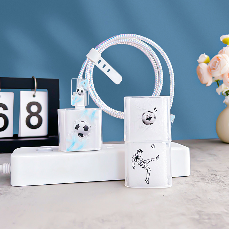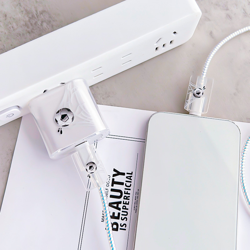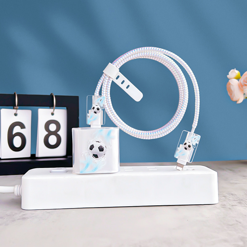 适用于苹果20w/18w充电器保护套快充数据线TPU线夹咬线器足球进网