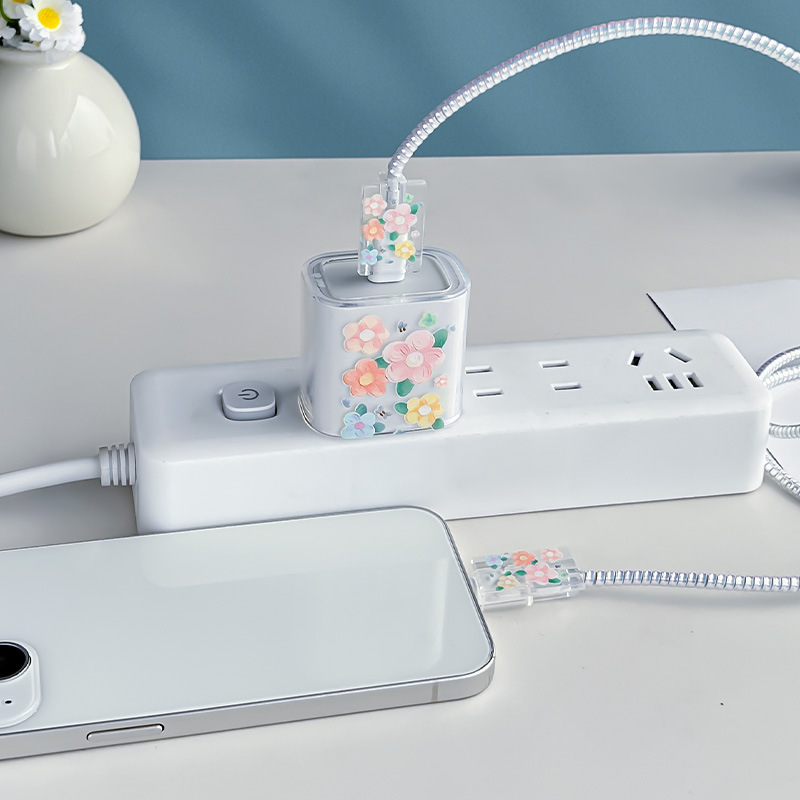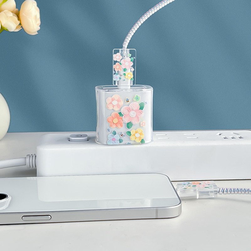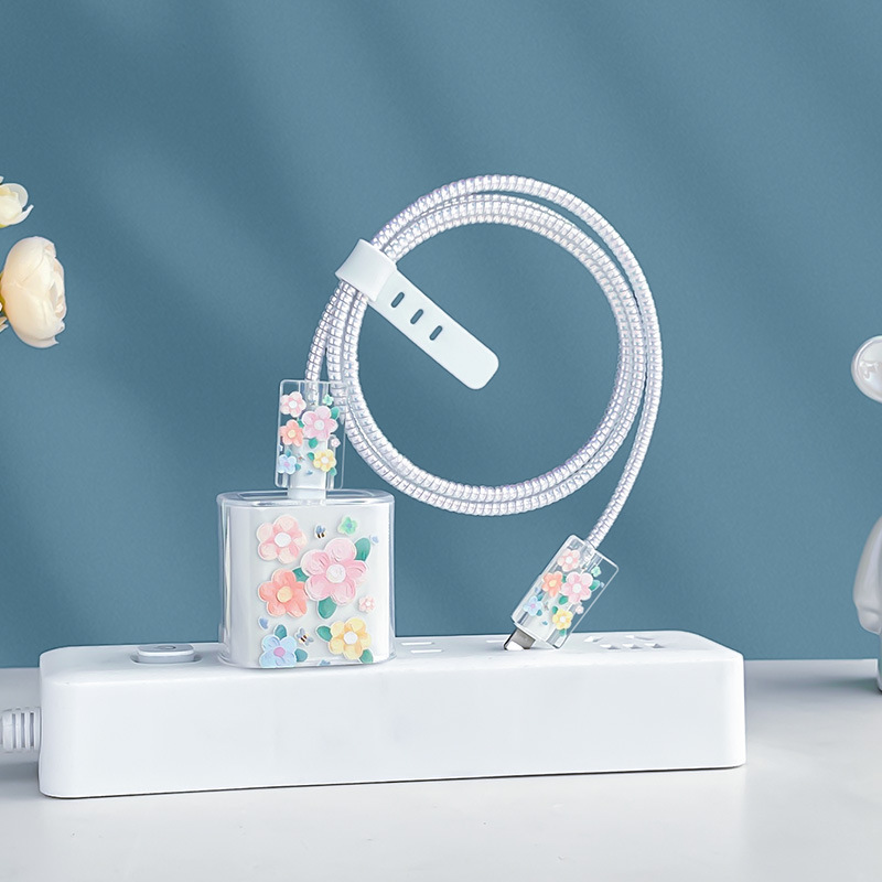 适用于苹果充电器保护套18w/20w充头套15数据线线夹咬线器蜜蜂花