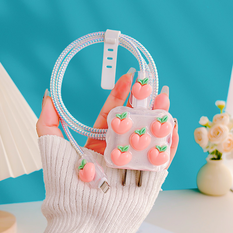 适用于苹果20w充电器保护套18w快充数据线线夹咬线器水晶5个桃子